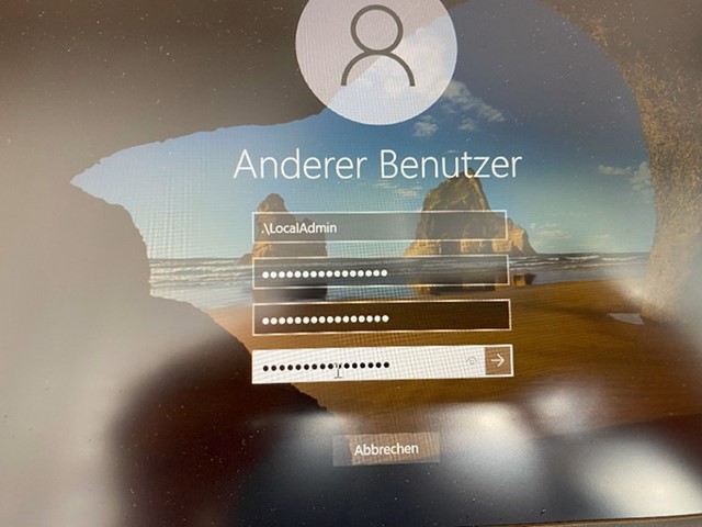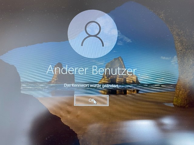 Kennwort wurde geändert. Jetzt kann man als Benutzer