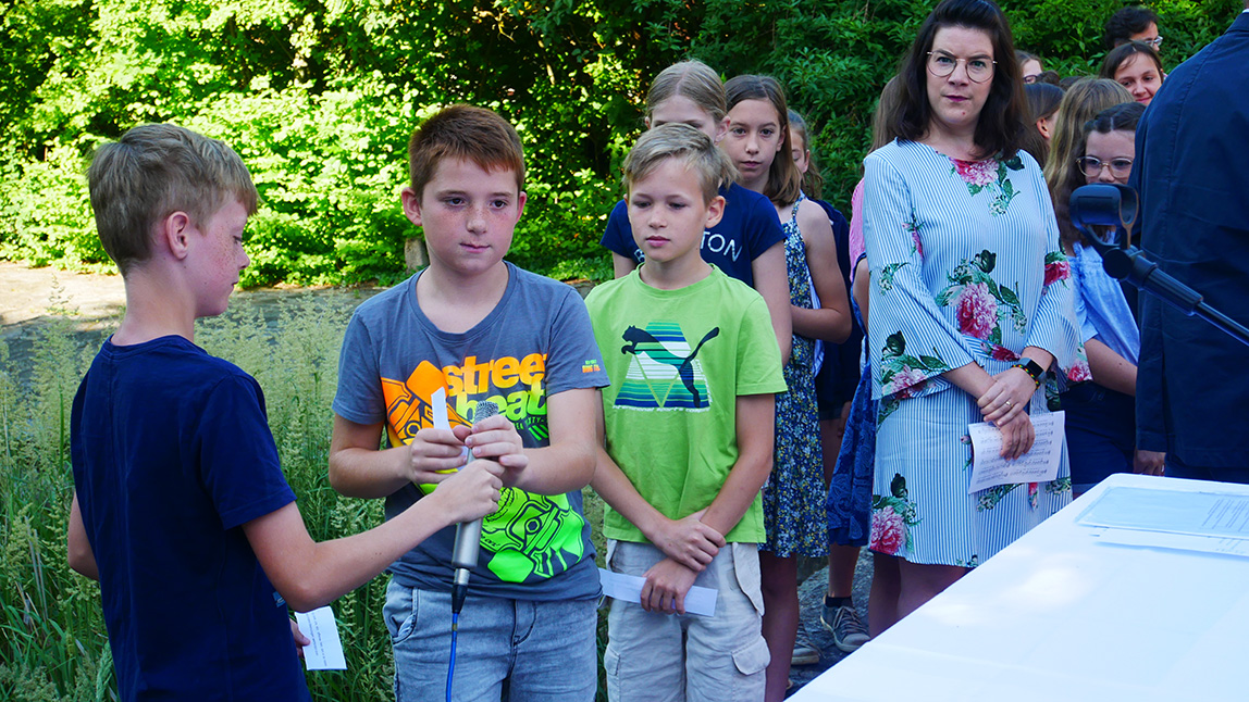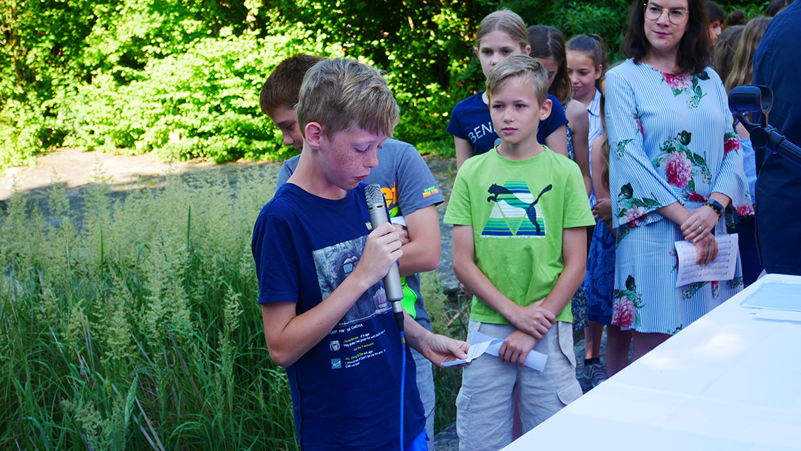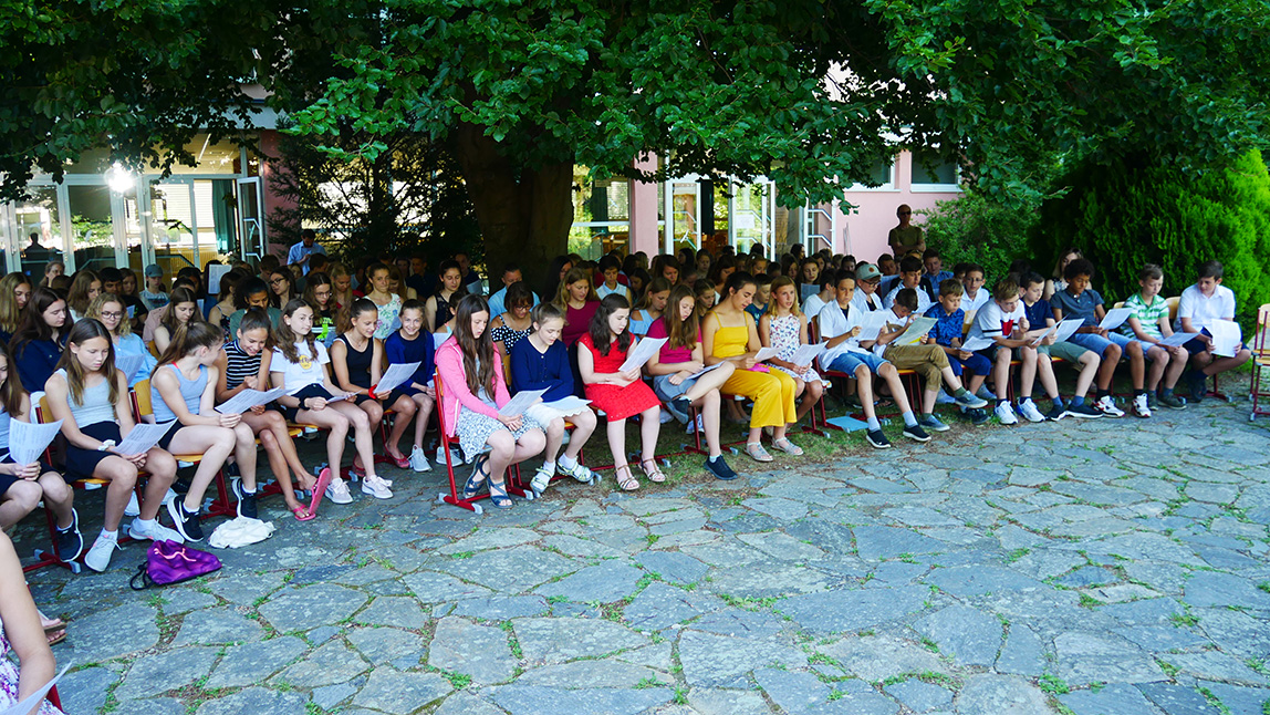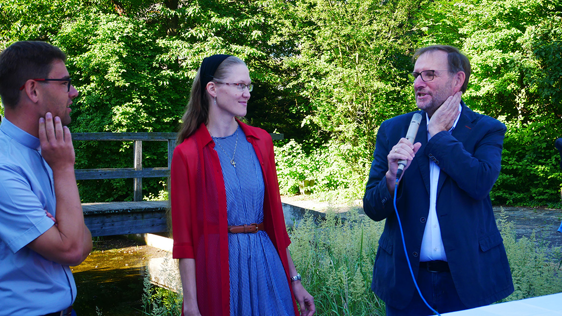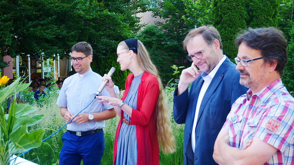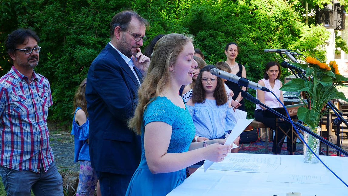 „Warum denn bauen wir nicht Brücken?“ wird in einem mit den Musiklehrerinnen gesungenen Lied der Wortgottesfeier am letzten Schultag gefragt. In den selbst verfassten Kyrierufen zeigten die Schüler und Schülerinnen Situationen auf, in denen sie sich von ihren Mitschülern abwendeten und sich Gräben zwischen ihnen bildeten. Die drei Religionslehrer und die Religionslehrerin stellten sich anschließend in ihrem „Predigtgespräch“ die Frage, was man am Tisch des Herrn wohl essen würde. Beharrte anfänglich jeder auf seiner Lieblingsspeise, so erkannten sie schließlich, dass ein gemeinsames Mahl eher nach ihrem Geschmack ist. Diesen Gedanken sollten die Schüler und Schülerinnen des BG Horn mit in die Ferien nehmen: Wenn man versucht Gemeinsamkeiten zu finden, eine Brücke zu anderen zu bauen, auch wenn diese am Anfang fremd wirken, ist es zu guter Letzt immer für alle das Beste.