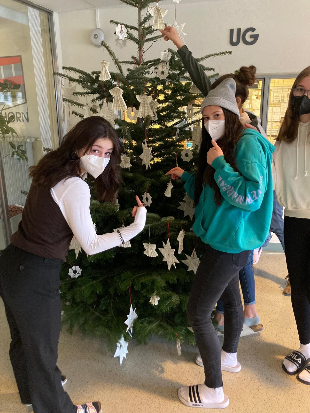 Wenn man im Religionsunterreicht fragt, was denn unbedingt zu Weihnachten gehört, kommen diese Begriffe immer vor: ein Christbaum, weihnachtlicher Schmuck, Gemeinschaft und Zusammensein mit Menschen, die man gern hat. Dies haben wir uns heuer zu Herzen genommen, um auch in dieser sehr aufwühlenden Zeit, etwas Ruhe und Weihnachtsstimmung in die Klassen zu bringen.