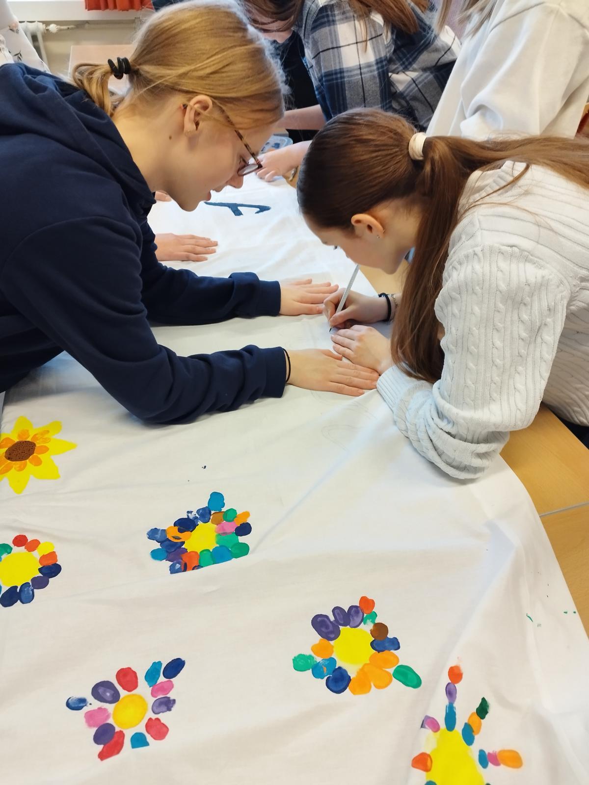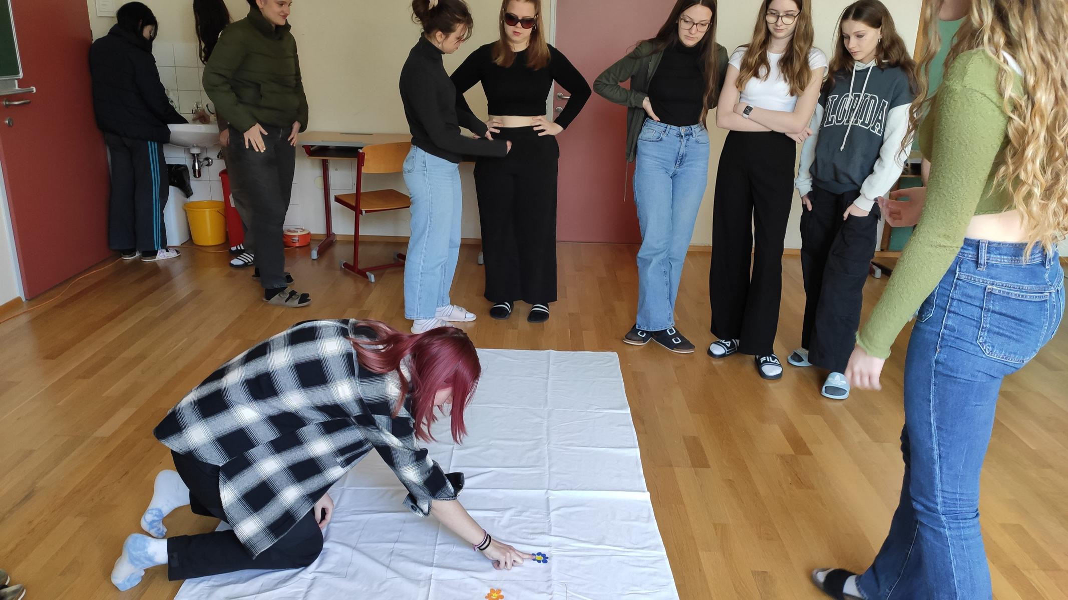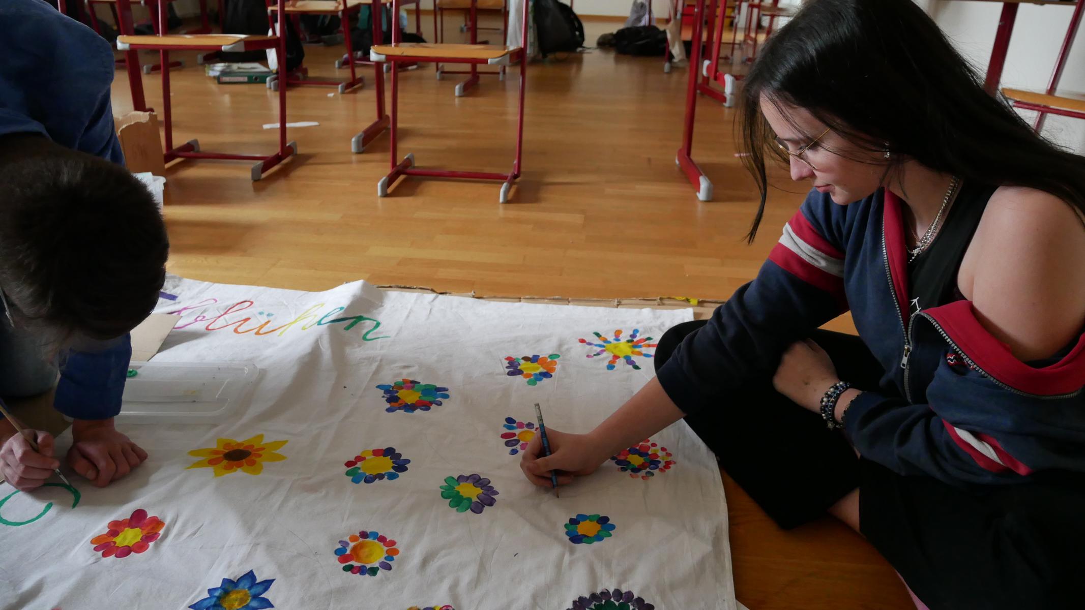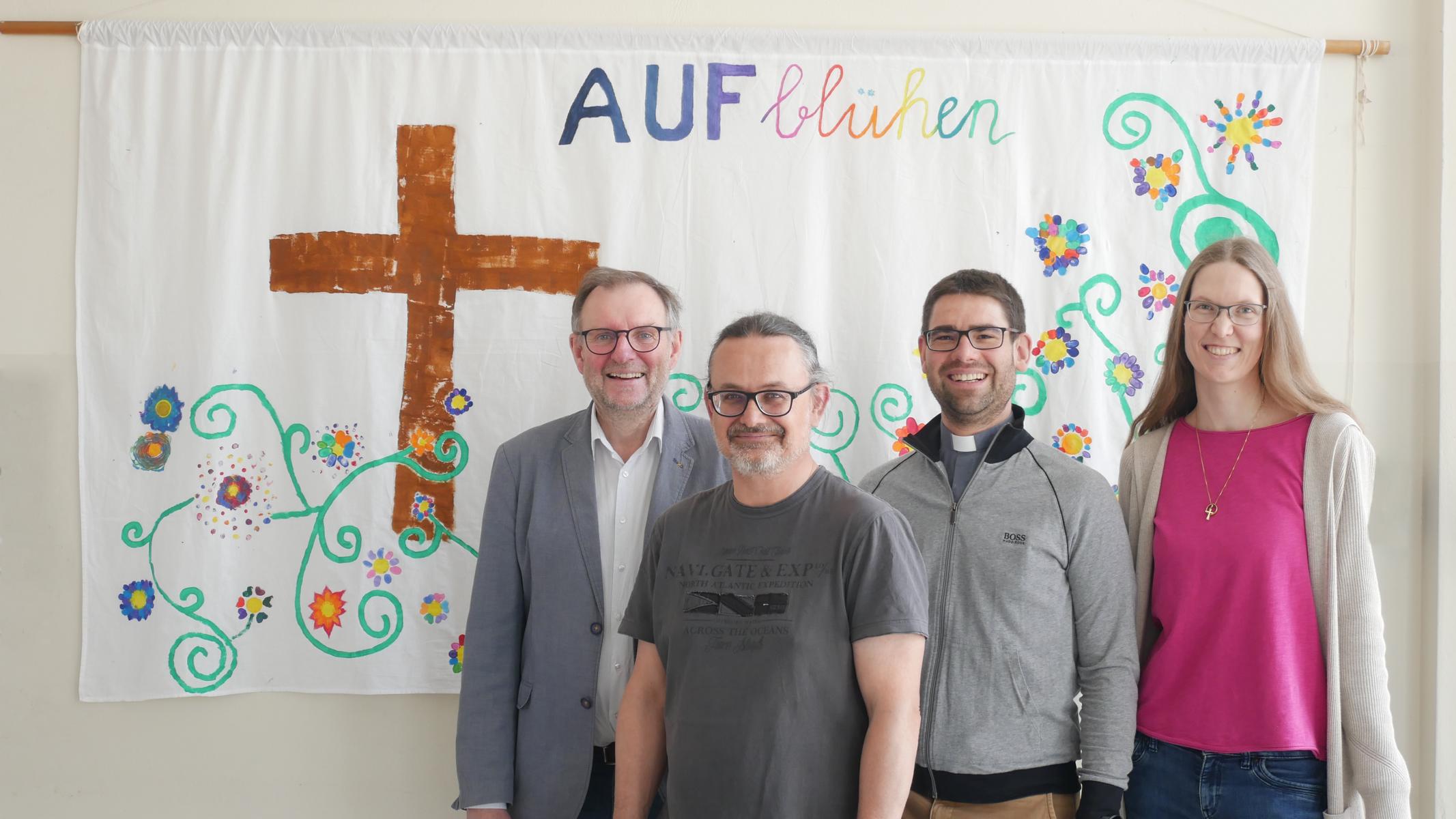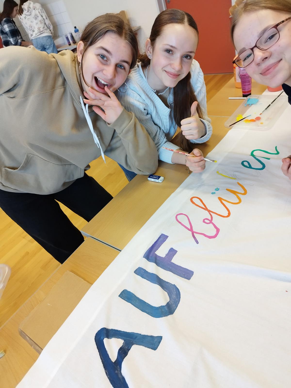 „Die aktuellen Entwicklungen in der Welt beschäftigen unsere Jugendlichen sehr und sie machen sich viele Gedanken über ihre Zukunft, die sie nicht immer rosig sehen. Wir haben daher das Thema „AUFblühen“ gewählt und mit dem Blick auf Ostern hin im Unterricht erarbeitet. Wir hoffen, so wieder etwas mehr Farbe und positive Gedanken in den Alltag und das Leben der Jugendlichen zu bringen“, erklärten die Religionslehrer ihre Motivation für das gemeinsame Fastentuch. Die Schüler*innen und Lehrer*innen des Gymnasiums waren also eingeladen, jeweils einen bunten Fingerabdruck als Blütenblatt zu hinterlassen und damit ein Teil des "AUFblühens" zu sein.