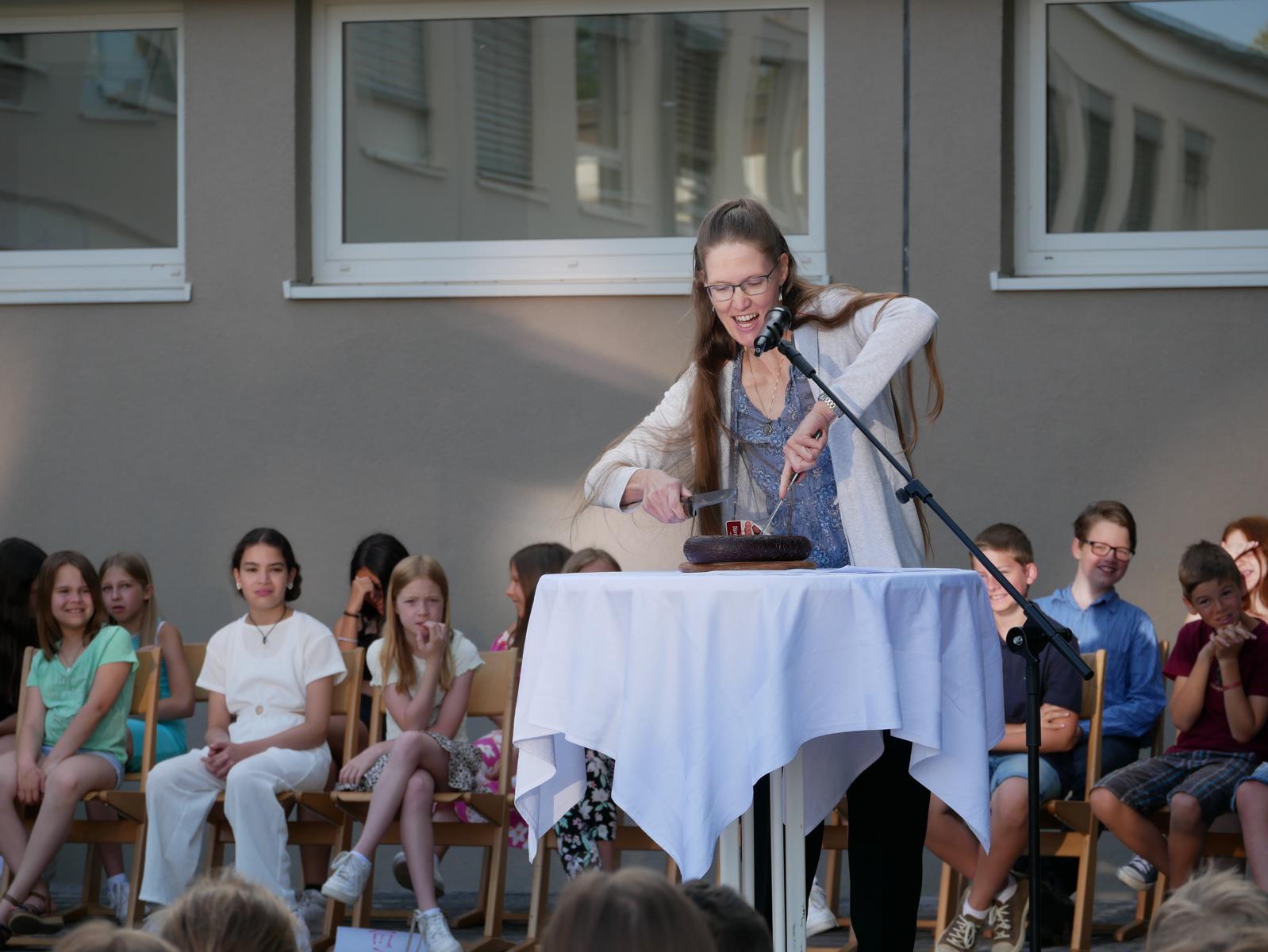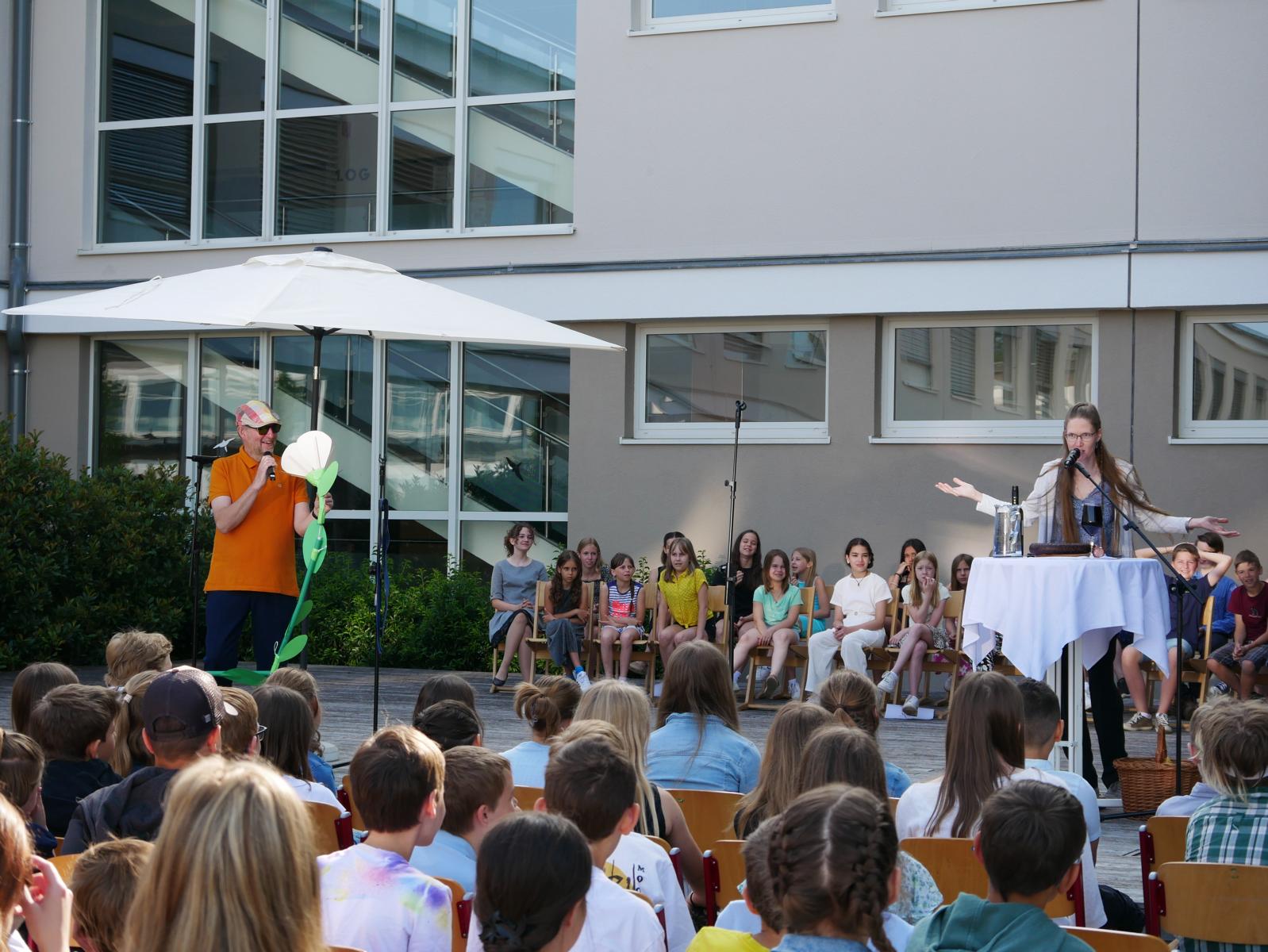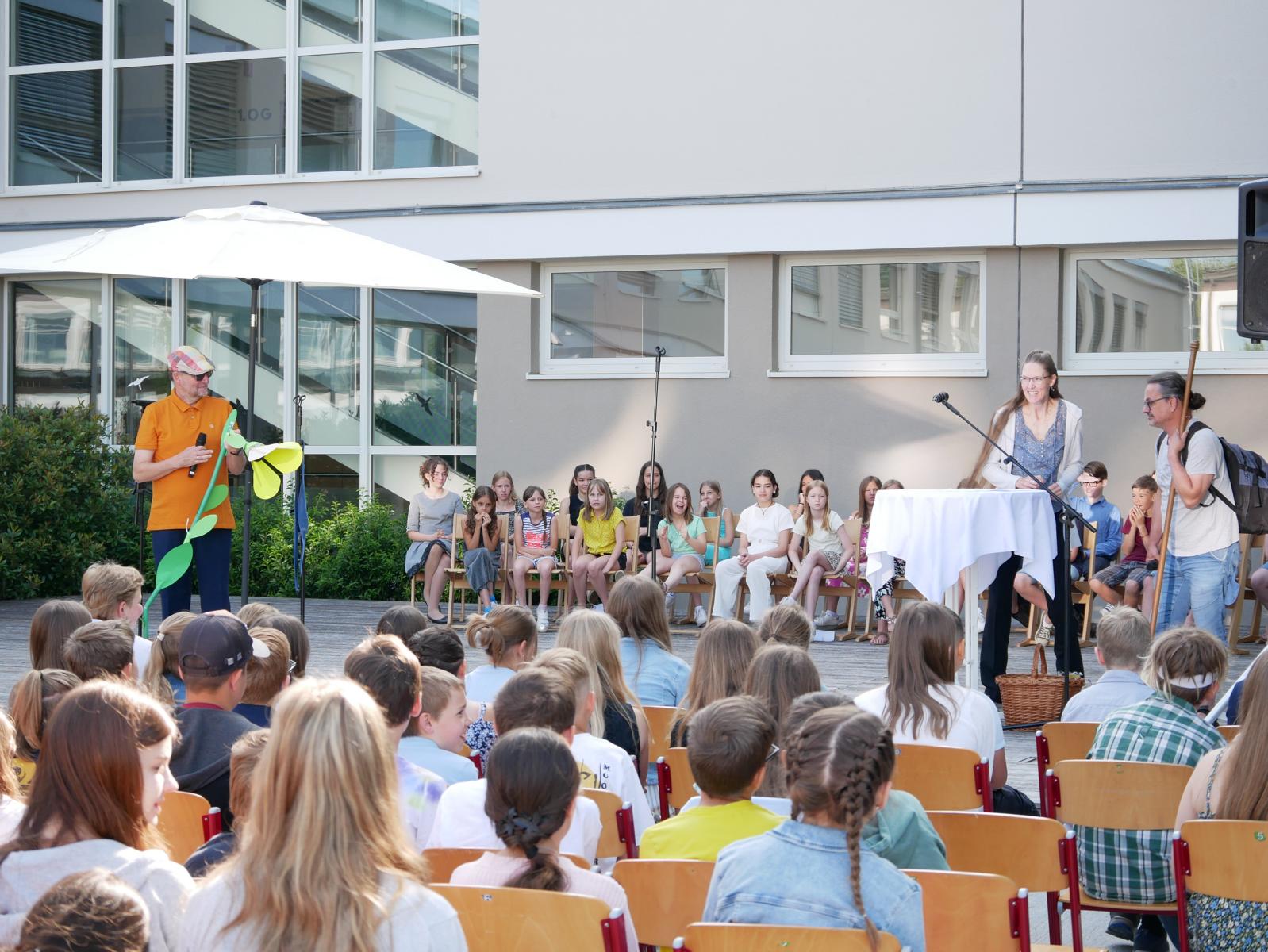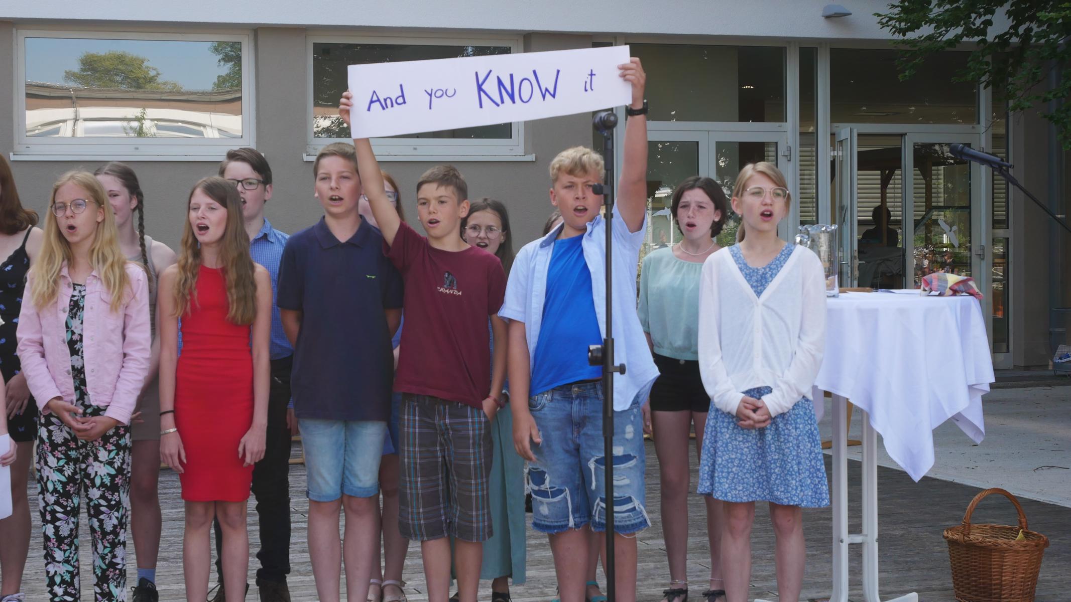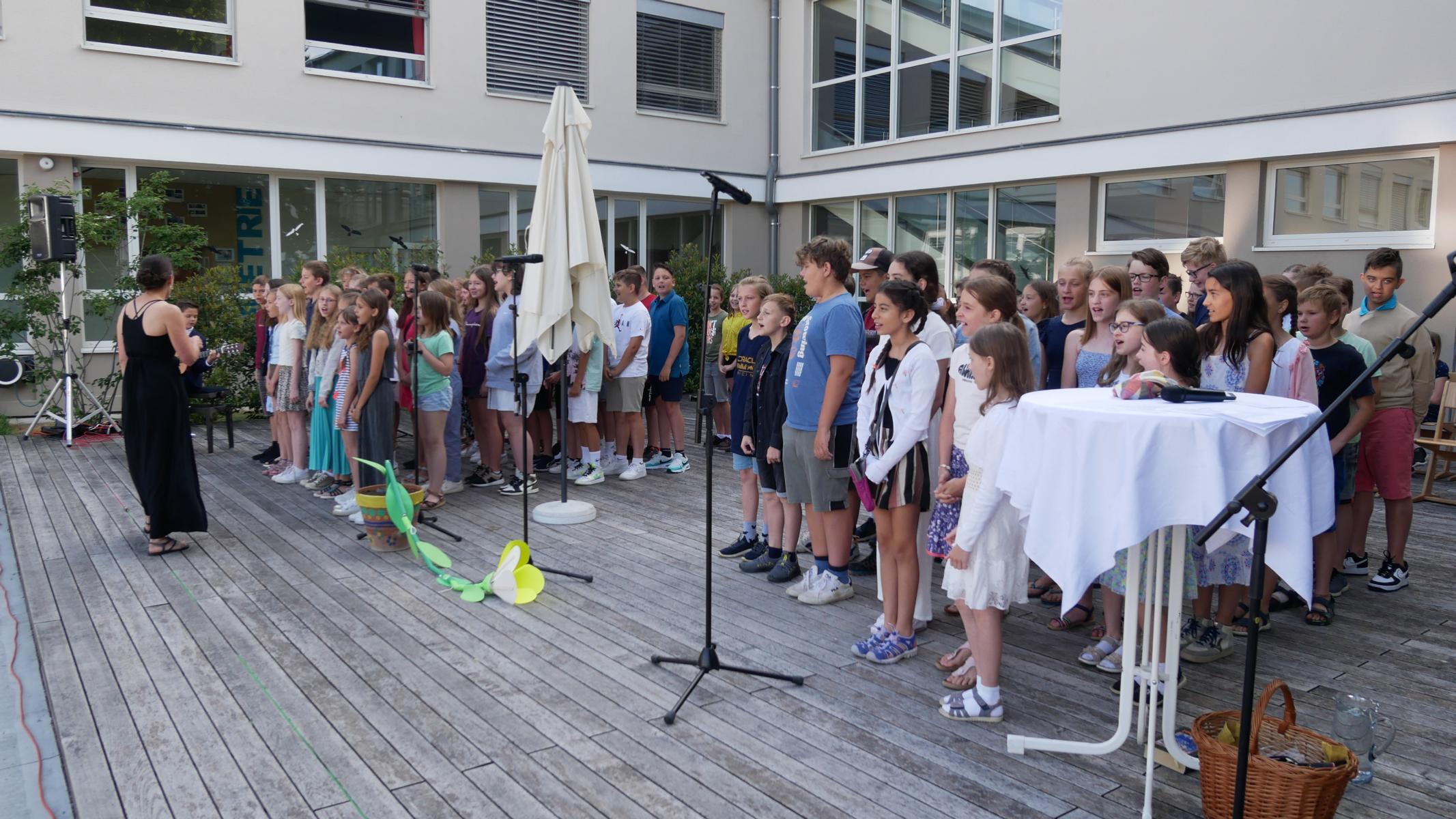 Dank des schönen Wetters konnte der Schulabschluss wieder draußen gefeiert werden. Mag. Theresa Gudenus kürte die Sieger der gestrigen Olympischen Spiele, Mag. Peter Schnaubelt und Mag. Brigitte Eschelmüller bedankten sich bei den fleißigen Schülern, die während des ganzen Schuljahres in der Bibliothek mithalfen und Direktor Ableidinger übergab die Urkunden zu den Teilprüfungen des Unternehmerführerscheins. MMag. Stephanie Sift gestaltete mit ihrem Schulchor den Gottesdienst.