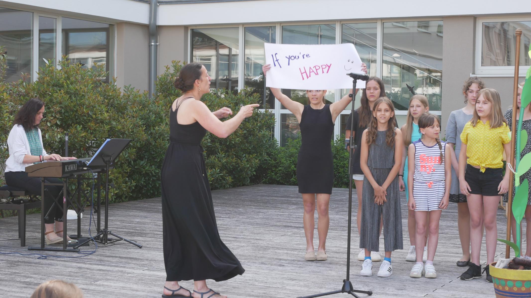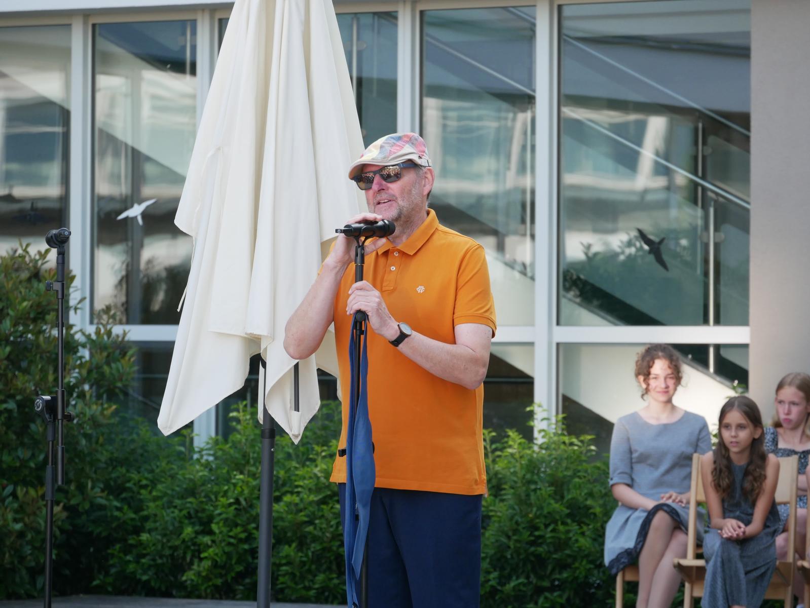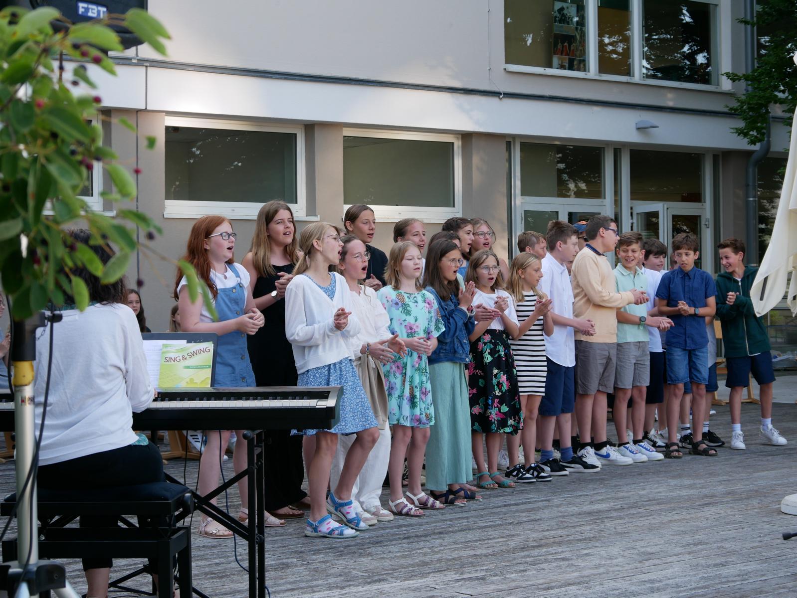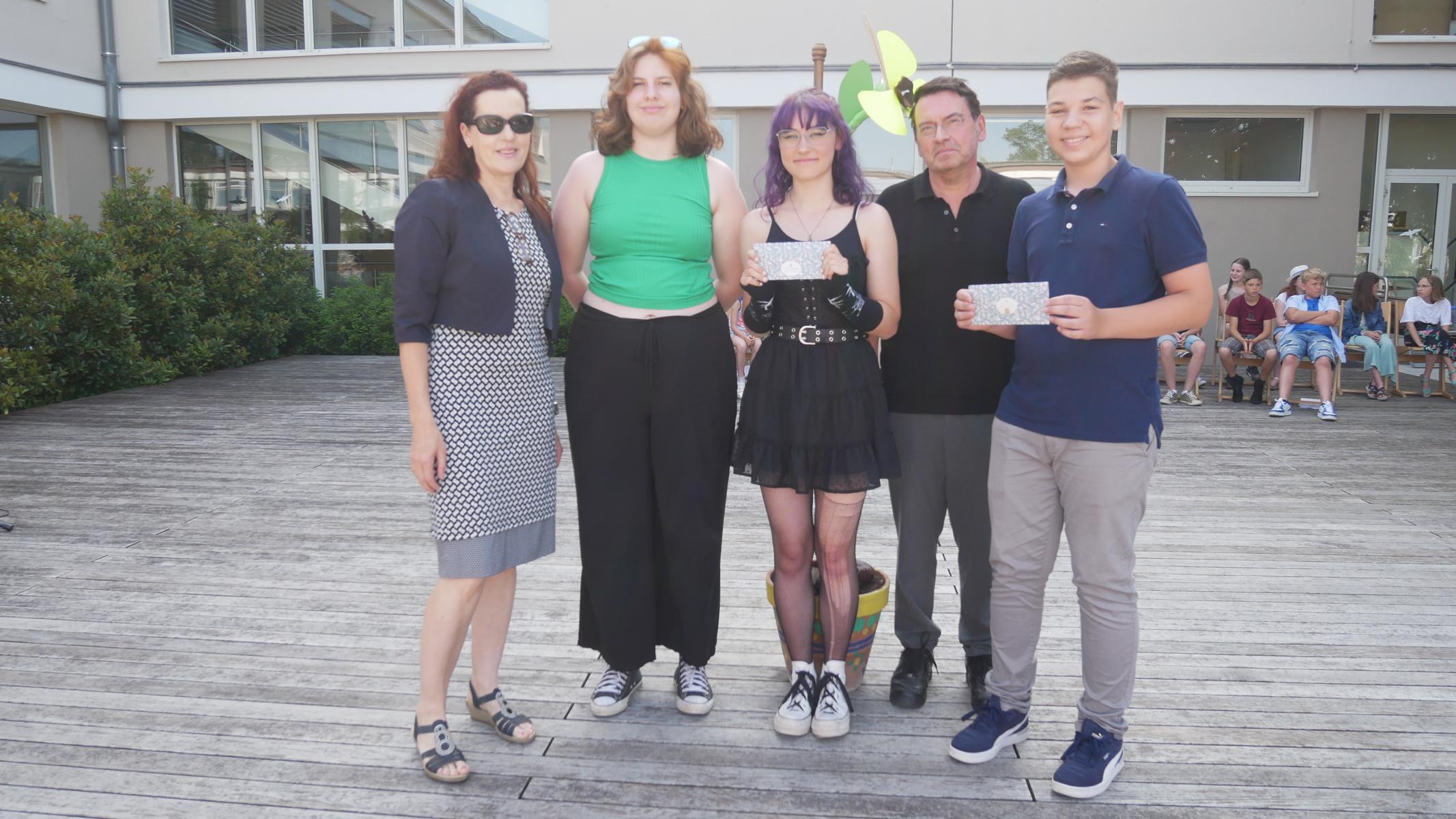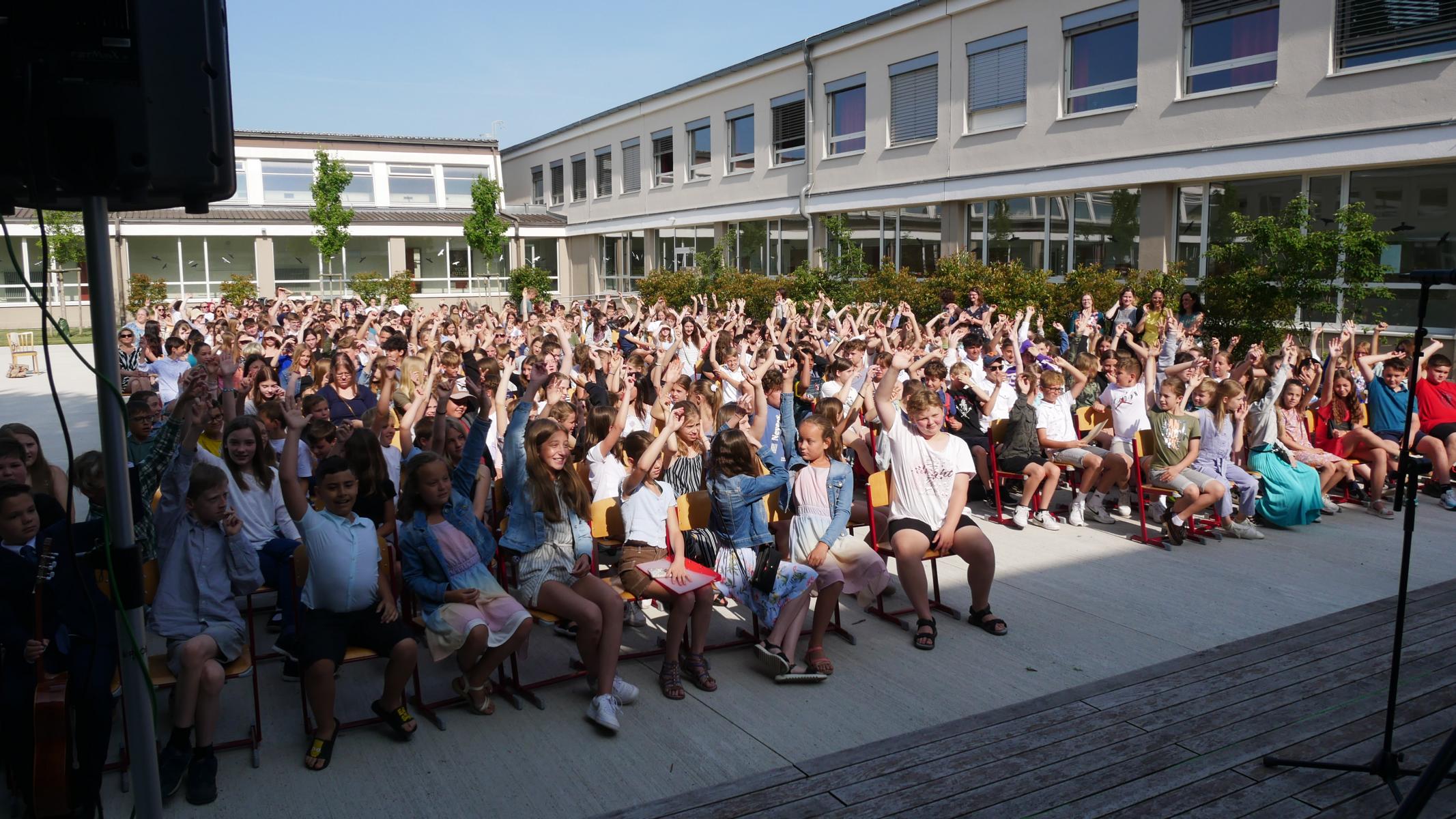 Dank des schönen Wetters konnte der Schulabschluss wieder draußen gefeiert werden. Mag. Theresa Gudenus kürte die Sieger der gestrigen Olympischen Spiele, Mag. Peter Schnaubelt und Mag. Brigitte Eschelmüller bedankten sich bei den fleißigen Schülern, die während des ganzen Schuljahres in der Bibliothek mithalfen und Direktor Ableidinger übergab die Urkunden zu den Teilprüfungen des Unternehmerführerscheins. MMag. Stephanie Sift gestaltete mit ihrem Schulchor den Gottesdienst.