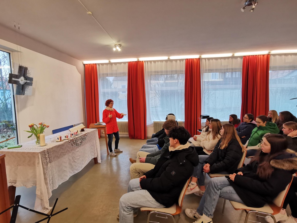 Das Ausflugsziel der 4A Klasse am 1. Februar 2024 war die Evangelische Pfarre in Horn. Pfarrerin Seniorin Mag. Birgit Schiller hat unsere Schülerinnen und Schüler und deren Begleitung Mag. Anna-Sophia Lichtenegger herzlich willkommen geheißen. Nach einer informativen Präsentation der Pfarre, konnten noch Fragen gestellt werden. So ergab sich ein äußerst interessanter Einblick in die Evangelische Pfarre Horn.