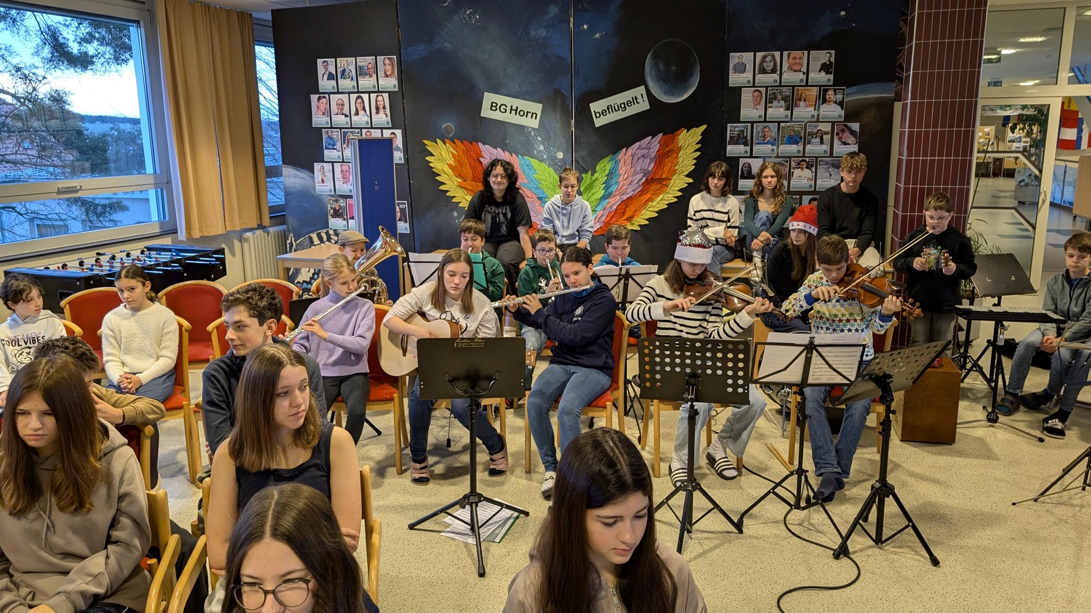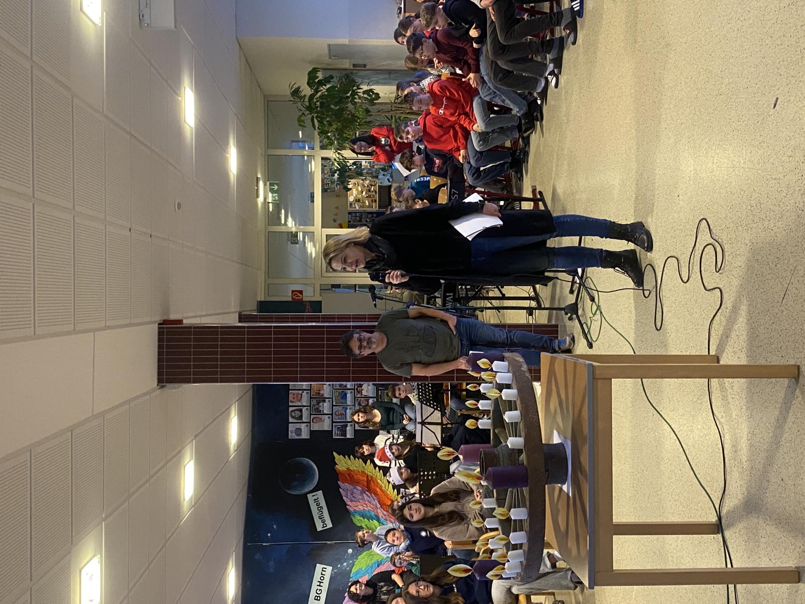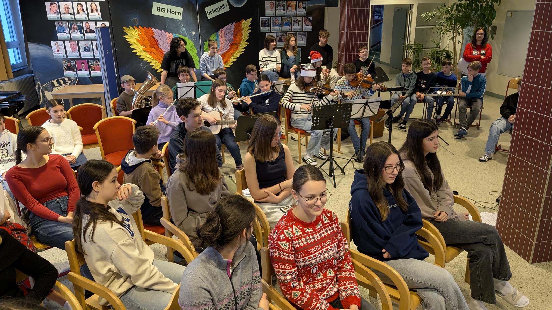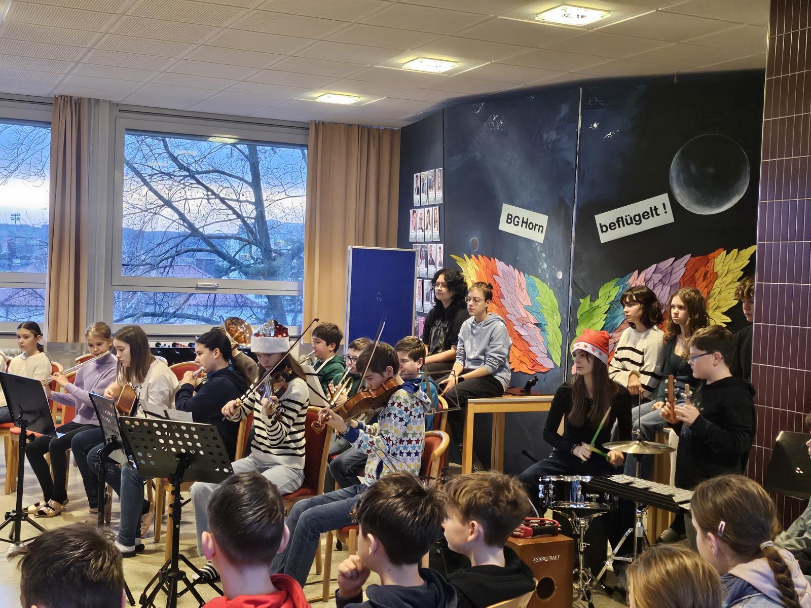 Christiane Resch-Raab eröffnete das Programm mit ihrem Orchester. Ursula Feest-Bazazan, Susanne Rösslhuber und ich bereiteten mit dem Schulchor bzw. einigen Klassen (2c, 3a und 7b) ein paar Lieder vor. Beate Schober organisierte mit anderen Deutschlehrern einen literarischen Adventkalender, der auch auf der Webseite des BG Horn abrufbar war. Als Dankeschön erhielten alle, deren Text ausgewählt wurde, während der Weihnachtsstunden ein Buch. Einige Jugendliche lasen ihre selbst geschriebenen Gedichte vor und auch beim Verlesen der biblische Weihnachtsgeschichte wurden die Zuhörer eingeladen, darüber nachzudenken, was Weihnachten für sie bedeutet.