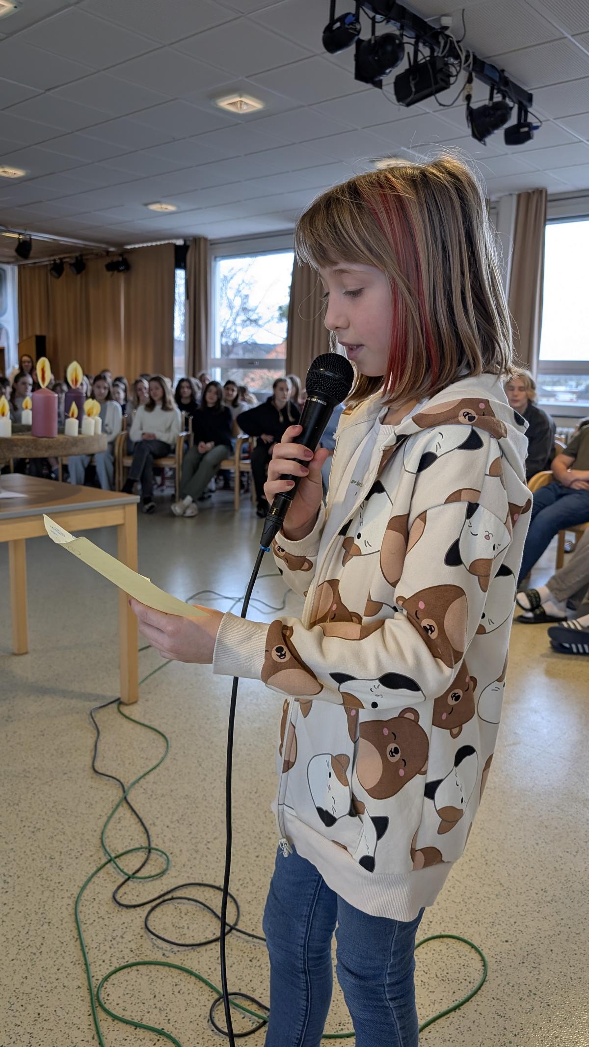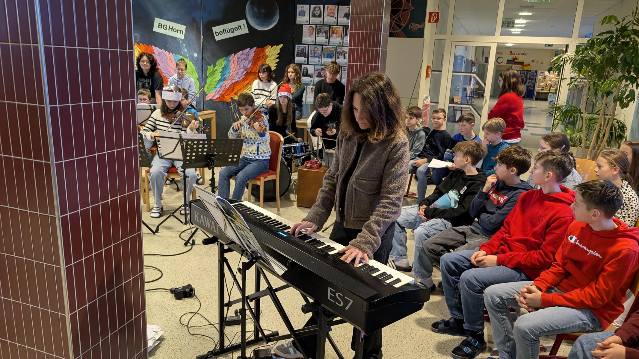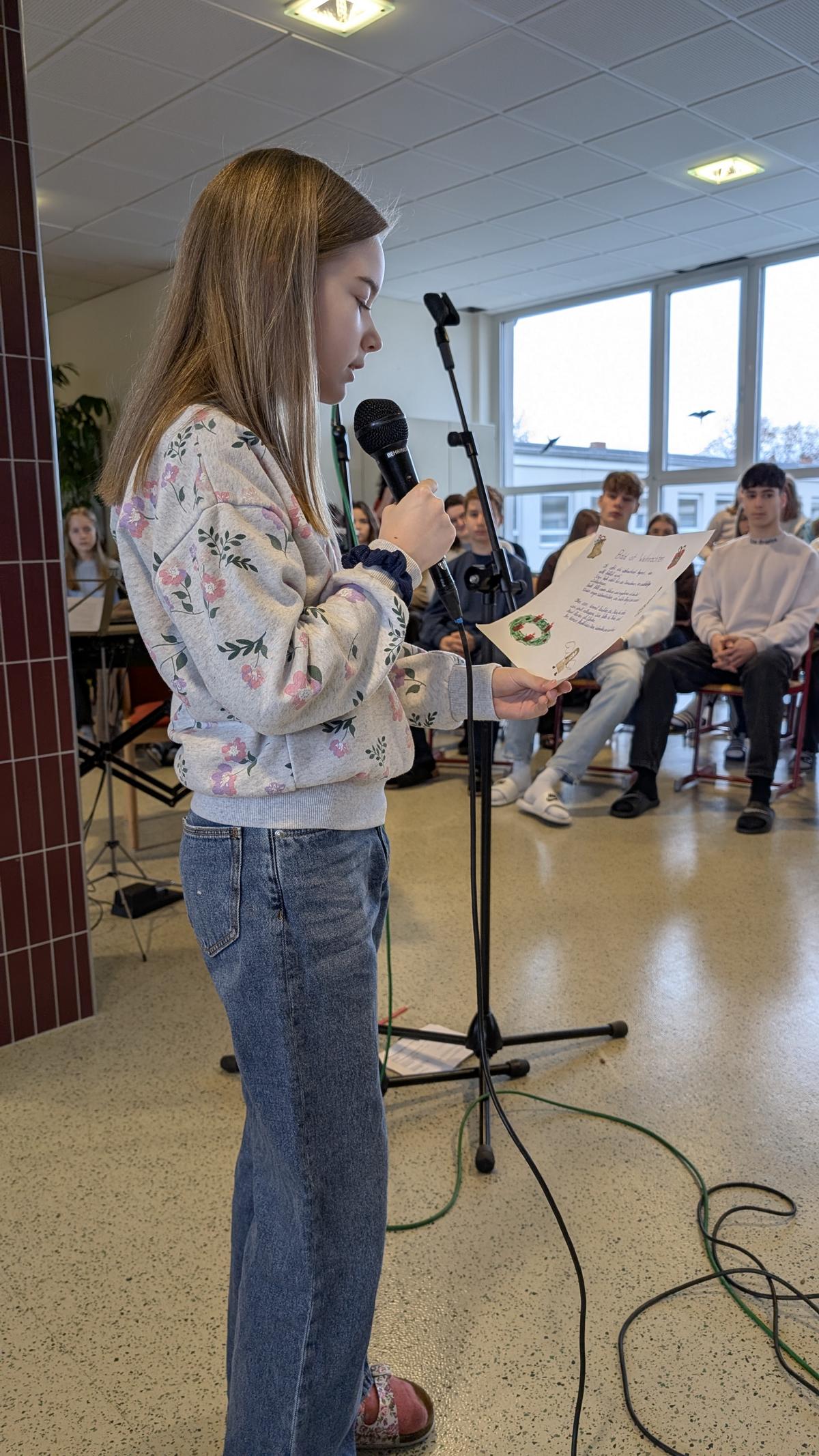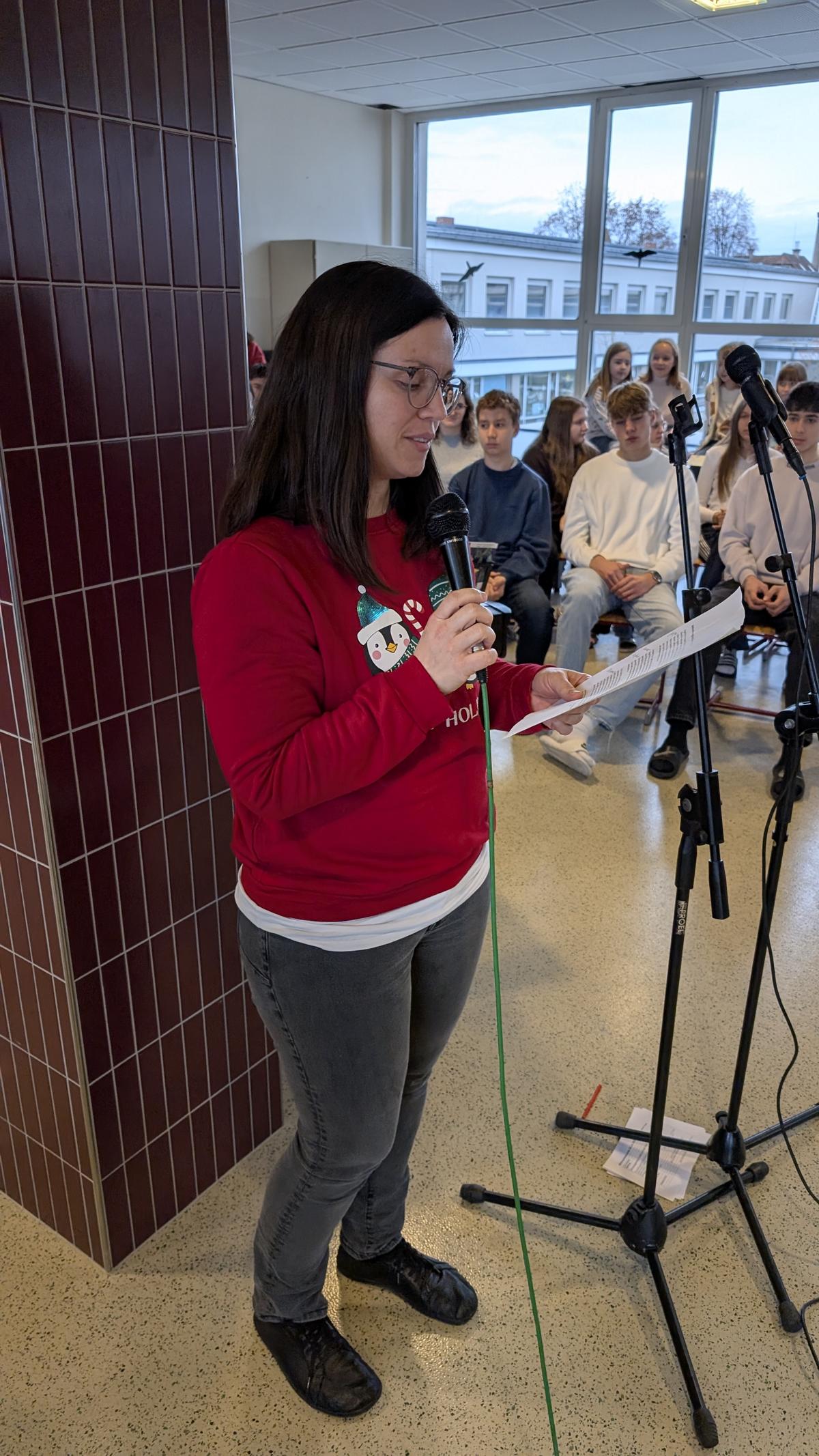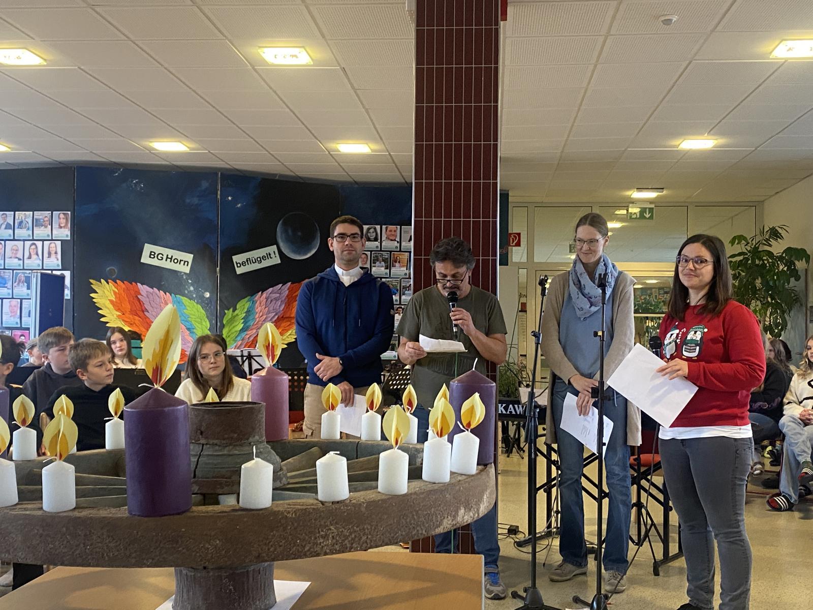 Christiane Resch-Raab eröffnete das Programm mit ihrem Orchester. Ursula Feest-Bazazan, Susanne Rösslhuber und ich bereiteten mit dem Schulchor bzw. einigen Klassen (2c, 3a und 7b) ein paar Lieder vor. Beate Schober organisierte mit anderen Deutschlehrern einen literarischen Adventkalender, der auch auf der Webseite des BG Horn abrufbar war. Als Dankeschön erhielten alle, deren Text ausgewählt wurde, während der Weihnachtsstunden ein Buch. Einige Jugendliche lasen ihre selbst geschriebenen Gedichte vor und auch beim Verlesen der biblische Weihnachtsgeschichte wurden die Zuhörer eingeladen, darüber nachzudenken, was Weihnachten für sie bedeutet.