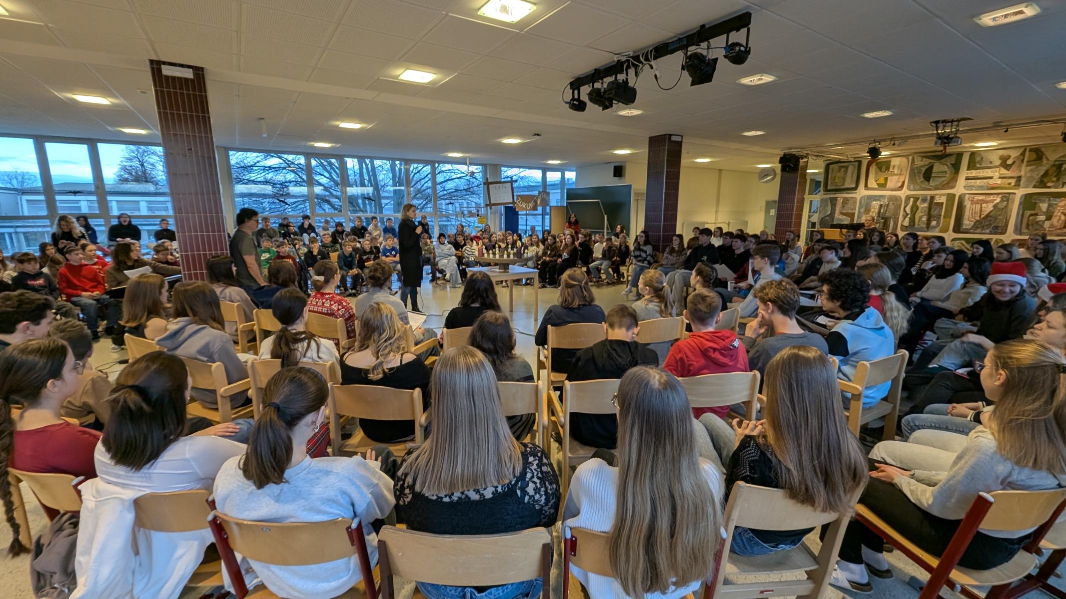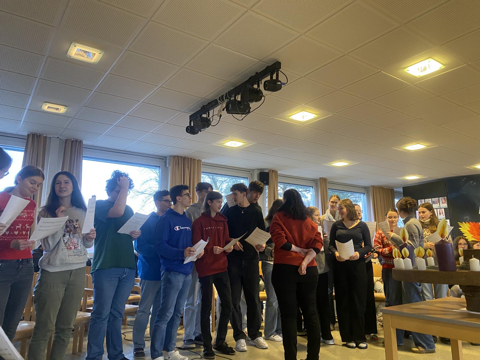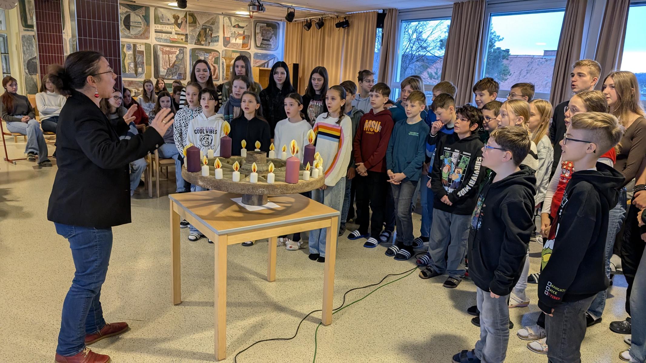„Welche Traditionen gehören für euch zum Weihnachtsfest?“, fragen wir Religionslehrer die Schüler immer mal wieder. Als Antwort bekommen wir dann oft: sich um den Adventkranz versammeln, Weihnachtslieder singen, Gedichte aufsagen, anderen mit Geschenken eine Freude machen, sich auf das Wesentliche konzentrieren – nämlich, dass es um die Geburt Jesu geht an Weihnachten – und mit Menschen zusammen sein, die man gernhat. All das bot auch unsere gemeinsame Weihnachtsfeier am letzten Schultag vor den Weihnachtsferien.