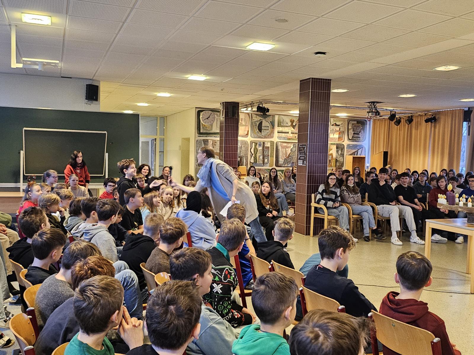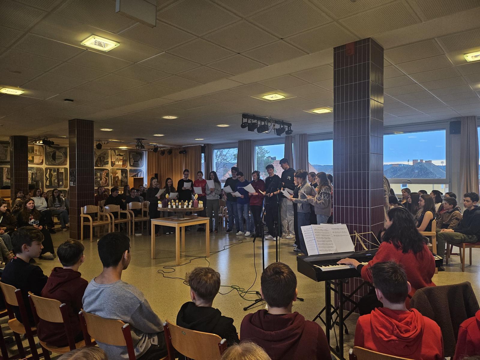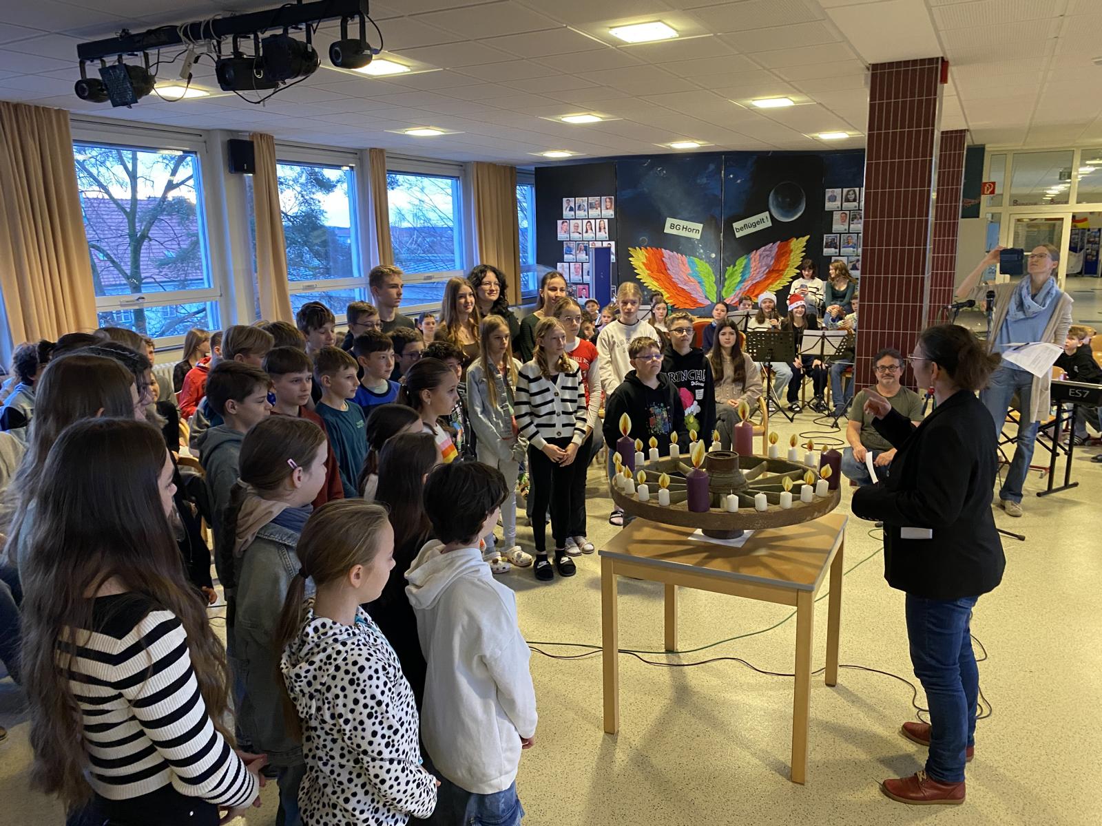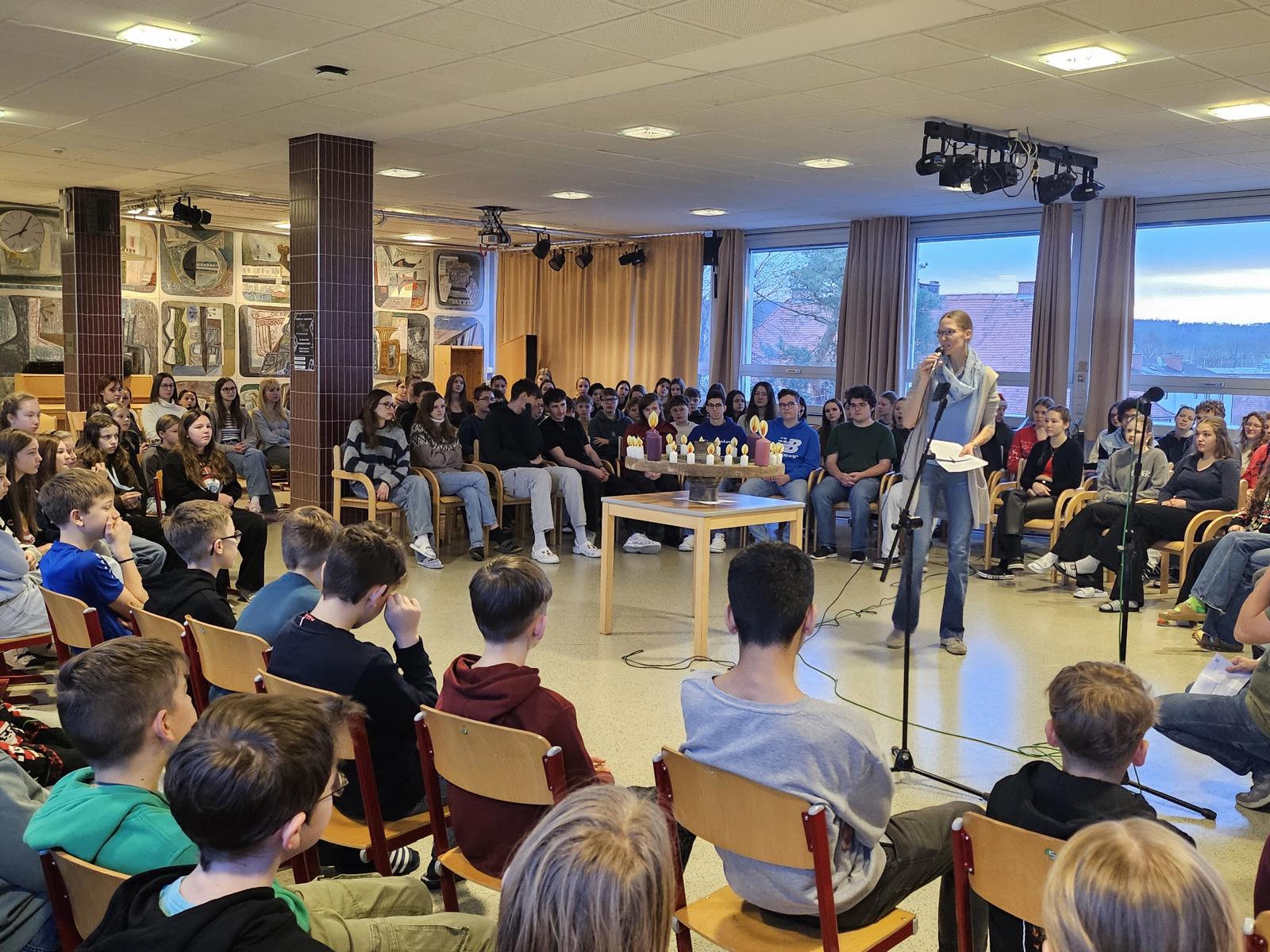 „Welche Traditionen gehören für euch zum Weihnachtsfest?“, fragen wir Religionslehrer die Schüler immer mal wieder. Als Antwort bekommen wir dann oft: sich um den Adventkranz versammeln, Weihnachtslieder singen, Gedichte aufsagen, anderen mit Geschenken eine Freude machen, sich auf das Wesentliche konzentrieren – nämlich, dass es um die Geburt Jesu geht an Weihnachten – und mit Menschen zusammen sein, die man gernhat. All das bot auch unsere gemeinsame Weihnachtsfeier am letzten Schultag vor den Weihnachtsferien.