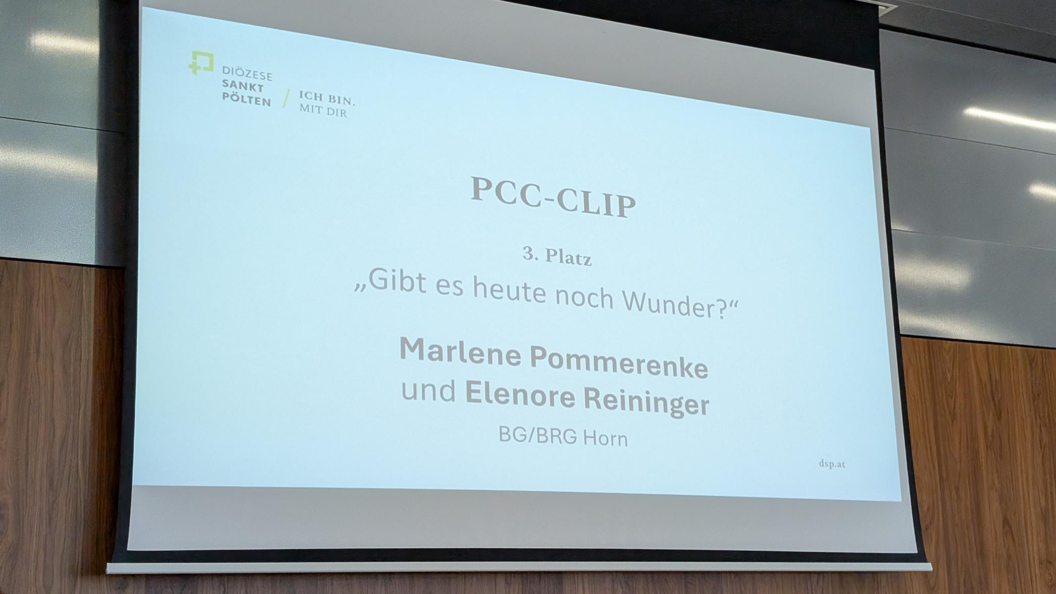Beim Wettbewerb Postcardchallenge überzeugten Elenore Reininger und Marlene Pommerenke (5b) in der Kategorie „Clip“ mit ihrem Beitrag im Minecraft-Stil zur Frage „Gibt es heute noch Wunder?“ und holten sich damit den dritten Platz. Unterstützt wurden sie dabei von ihrer Religionslehrerin Anna-Sophia Lichtenegger.