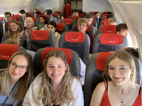 Gut Antigen getestet fahren wir alle gemeinsam pünktlich um 9:00 vom Gymnasium in Horn mit dem Bus los. Mit einem guten Zeitpolster erreichen wir den Flughafen wo wir uns sogleich an die Check-in Computer machen und es gelingt uns mit vereinten Kräften unsere Boarding Karten zu bekommen und unsere Koffer aufzugeben.