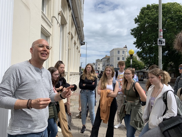 Am Flughafen erwartet uns Simon, bringt uns zum Bus und erläutert uns, wie man das Busticket für Brighton einlöst. Nach etwa 2 Stunden erreichen wir Brighton und werden in einer kleinen Strasse abgesetzt. Jetzt kommt der noch spannendere Teil … wie werden die Gastfamilien sein? Einige werden direkt von den Gasteltern abgeholt, andere mit dem Taxi zu den Gastfamilien gebracht, die Stimmung ist gut, die ersten Eindrücke positiv.