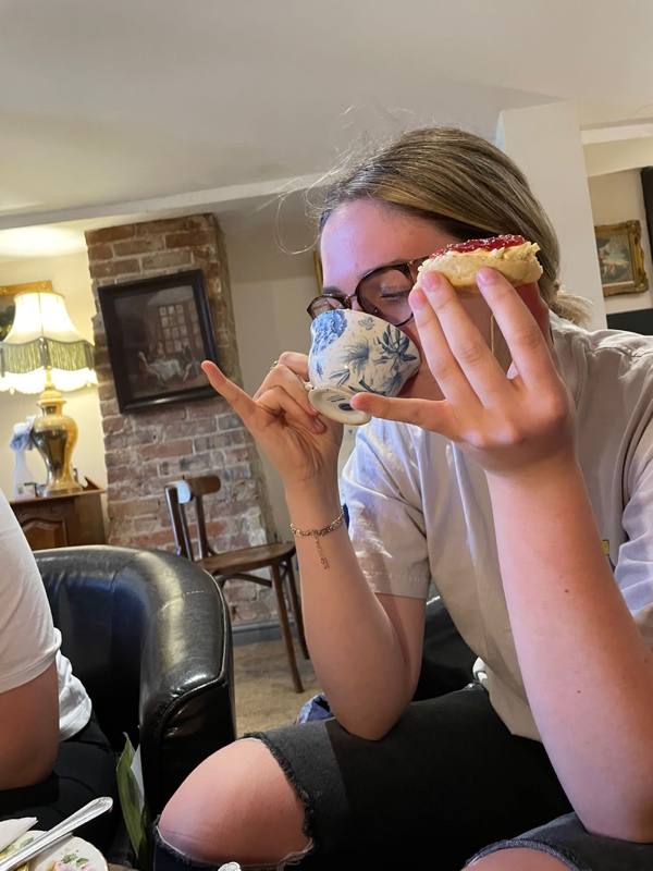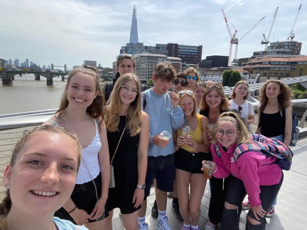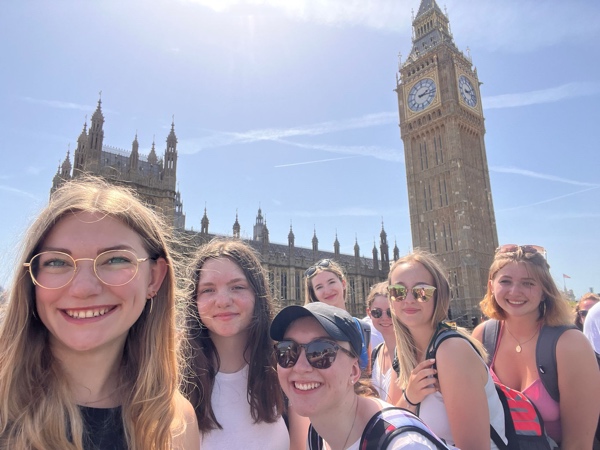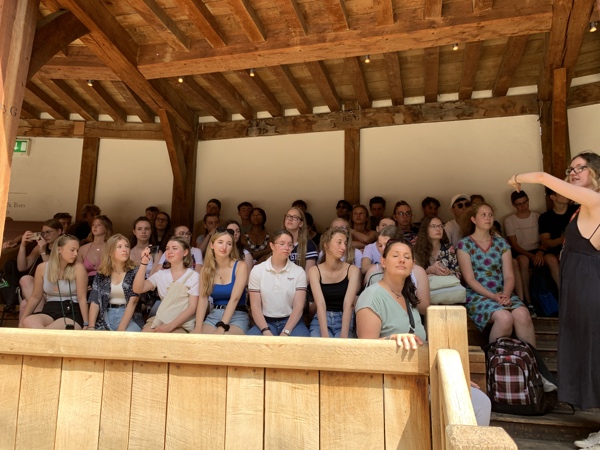 Tag 5: Heute ist der heißersehnte (und heißeste) Tag in London. Wir treffen uns alle pünktlich am Brighton Bahnhof. Die Fahrt dauert nicht lang bis wir in London Blackfriars eintreffen. Gleich zu Beginn haben wir eine sehr interessante Führung im Globe, dem nachgebauten Theater Skakespeares, gespickt mit Zitaten aus seinen Werken.
