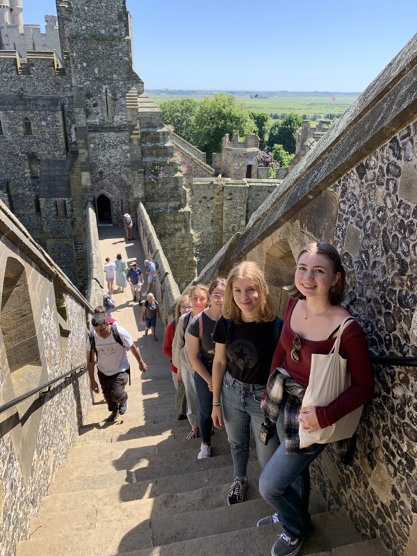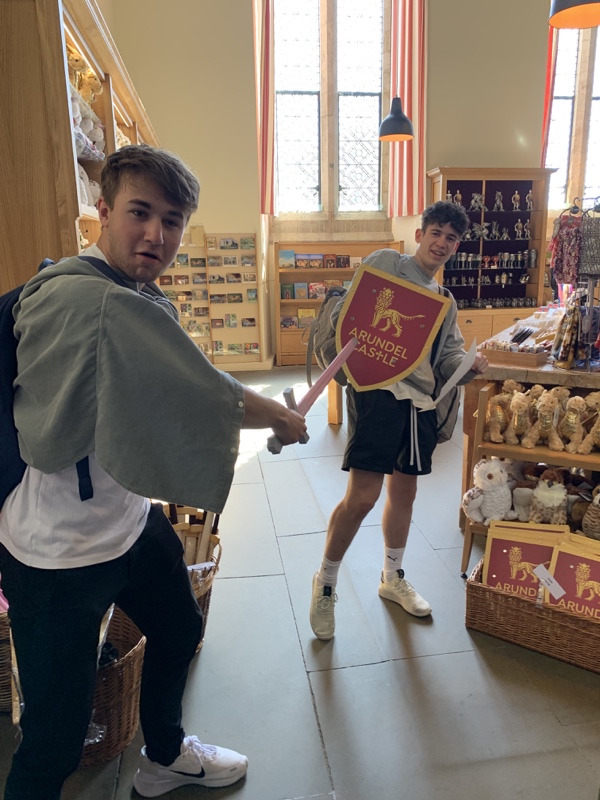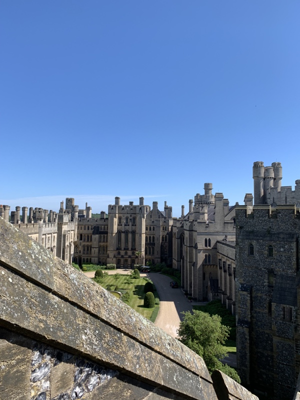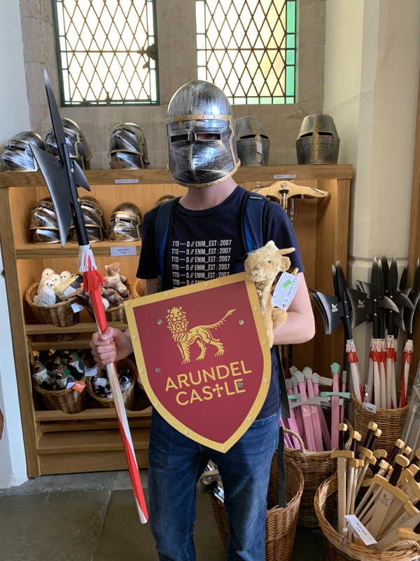 Danach werden wir in sechs Minibussen nach Arundel Castle gebracht. Diese beindruckende Burg aus dem frühen Mittelalter beeindruckt uns mit seinem „Keep“ dem Wehrturm, seiner imposanten Bibliothek und den prunkvollen Repräsentationsräumen. Die tolle Waffenkammer animiert manche sich selbst als Ritter zu versuchen (siehe Fotos)