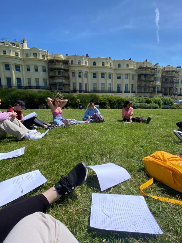 Tag 3: Wie jeden Tag treffen wir uns wieder gegen 8:45 vor der Schule am Brunswick Place. Aufgrund des traumhaften Wetters wird der Unterricht teilweise in den Park verlegt.