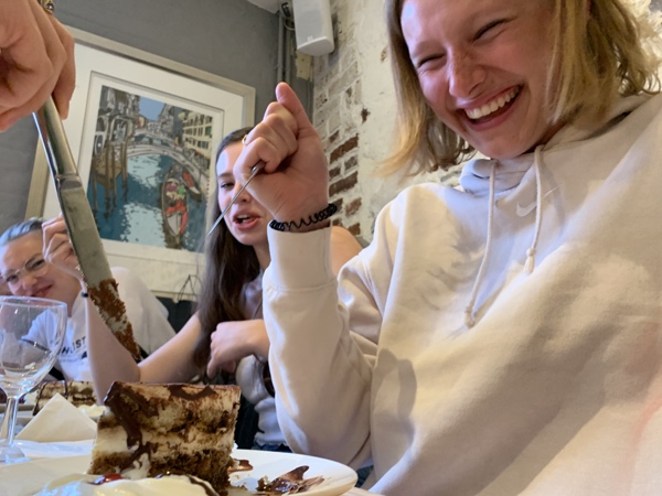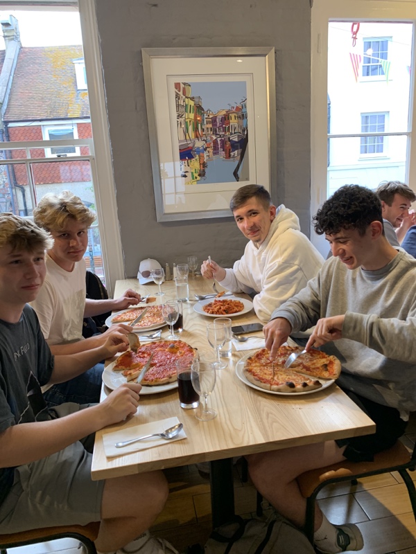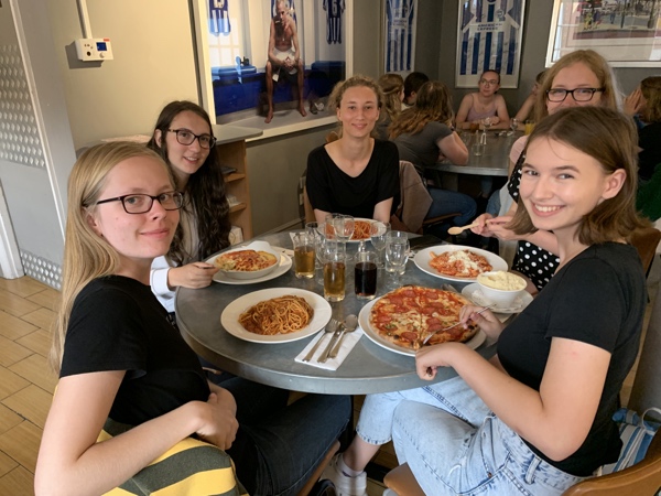 Nach einer etwas komplizierteren Heimfahrt mit dem Zug, gehen wir gemeinsam in die „Lanes“ italienisch essen.