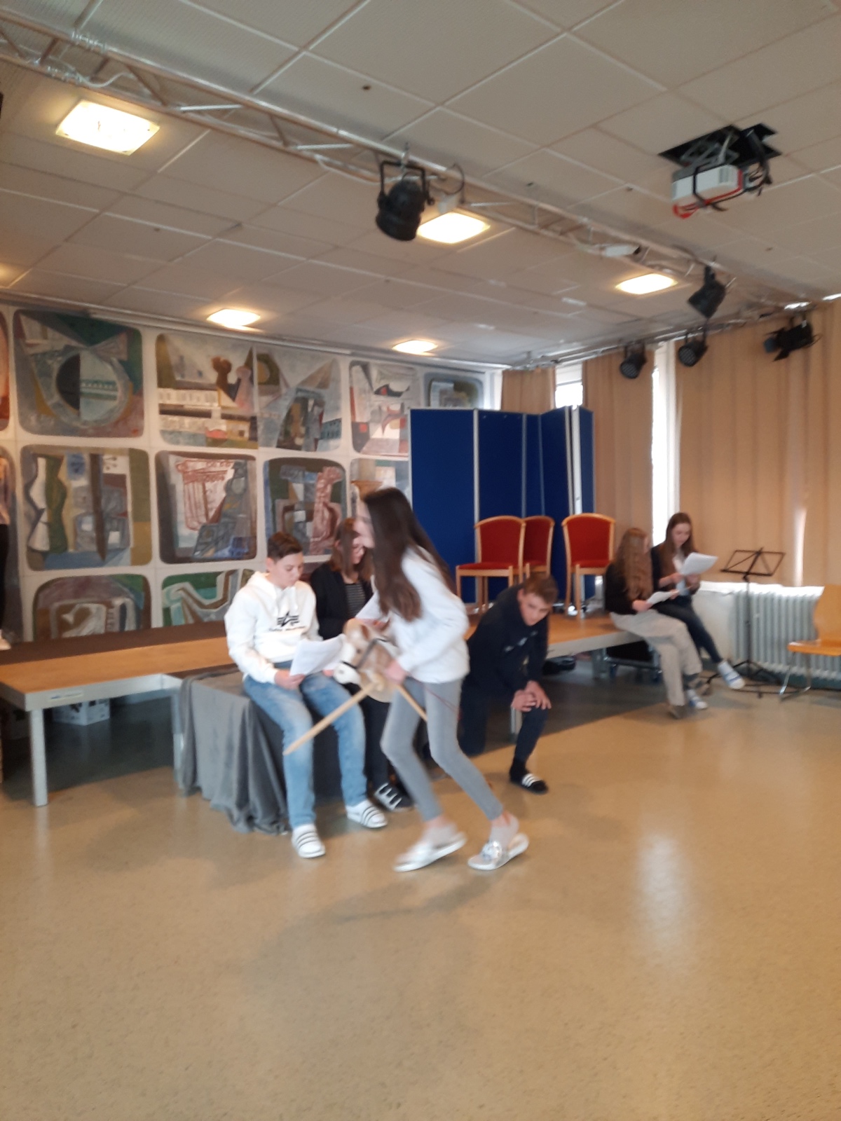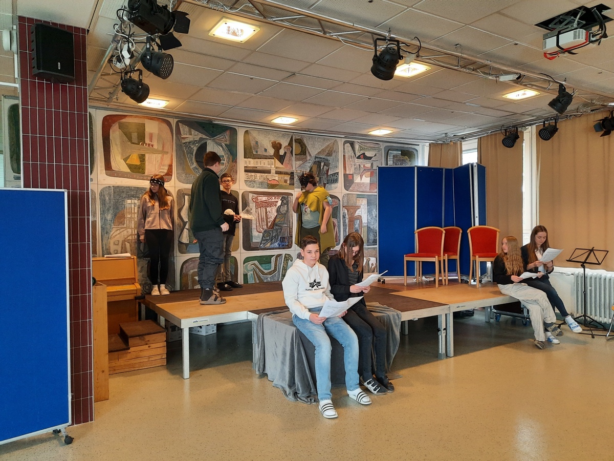 Auch dieses Jahr fand am BG Horn wieder die English in Action Woche für die 4. Klassen nach den Semesterferien statt. Eine ganze Woche lang folgten die Schüler:innen gespannt dem professionellen Unterricht der erfahrenen vier Native Speakers Julia, Johanna, Richard and Douglas und erarbeiteten mit ihnen gemeinsam interessante Präsentationen und Theateraufführungen zu vielfältigen Themen. Diese wurden am letzten Kurstag dem Publikum bestehend aus Eltern, Lehrer:innen und den Kursteilnehmer:innen auf der Bühne in der oberen Aula aufgeführt – natürlich in englischer Sprache.