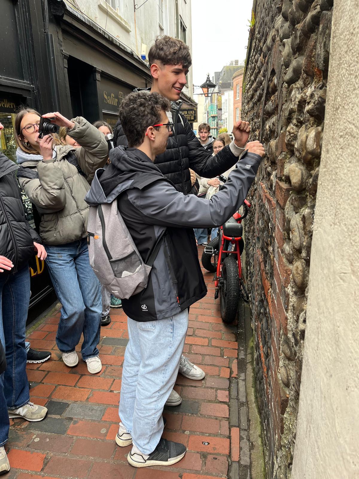 Am ersten Tag besuchten wir vormittags die Sprachschule und verbesserten unser Englisch durch Gespräche und Übungen. Am Nachmittag erkundeten wir Brighton – inklusive Fish & Chips, einem Banksy-Kunstwerk und spannenden Geschichten über die Stadt.