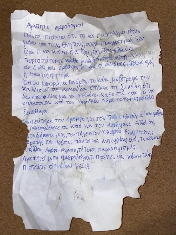 - „Original“ Tagebucheintrag der Hera auf Neugriechisch (Liebschaften des Zeus)
