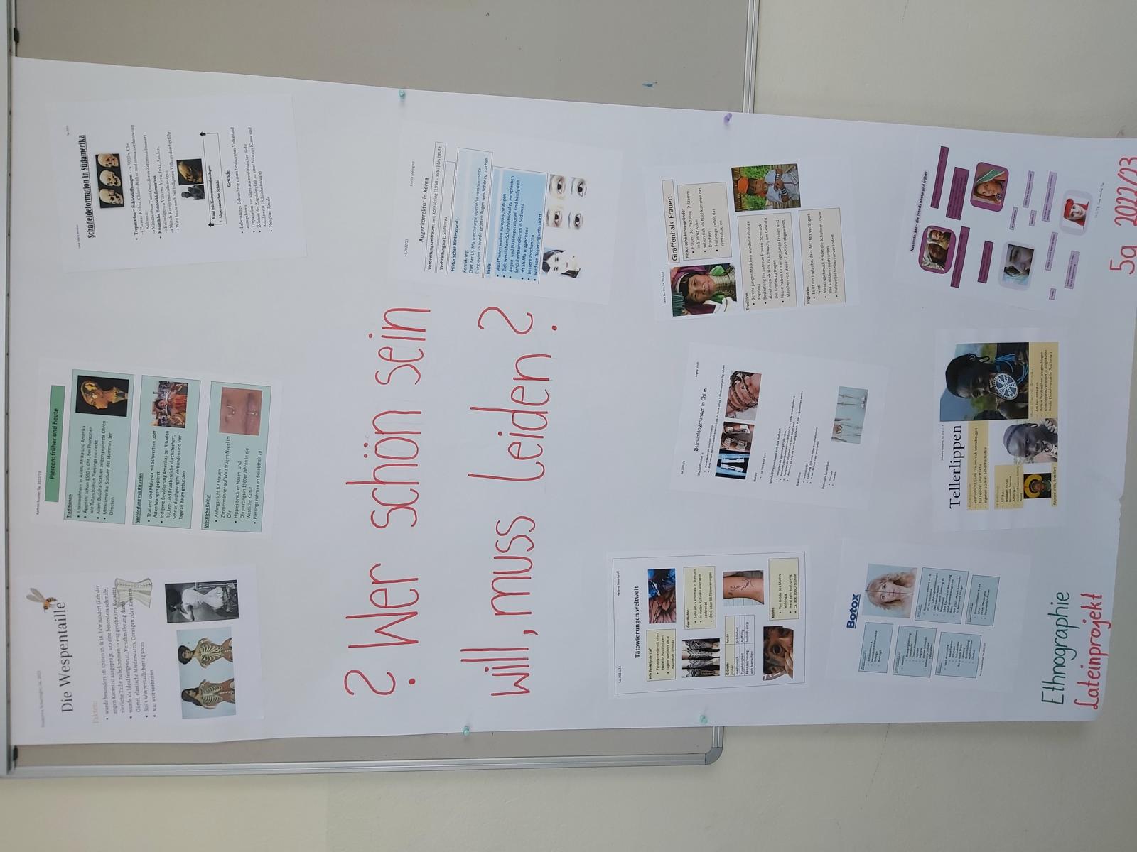 Die Schülerinnen bekamen die Aufgabe, sich mit verschiedenen vergangenen und aktuellen Schönheitsidealen zu beschäftigen. Als Ergebnis wurde ein Plakat erstellt, das bewusst auf manche angeblich unverzichtbaren Prinzipien eines „schönen Plakats“ verzichtet und das Unvollkommene als Gestaltungsmittel einsetzt - siehe Fotos.
