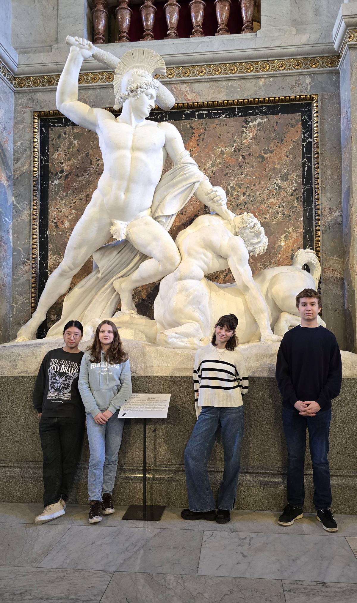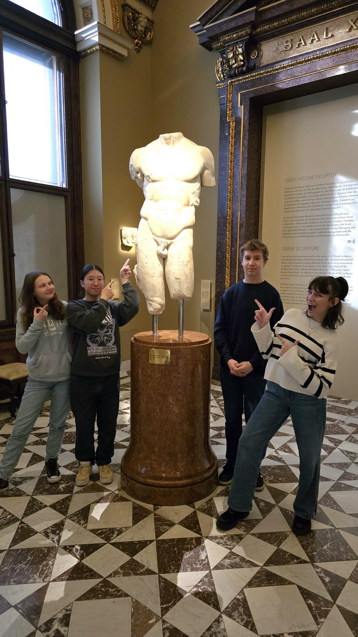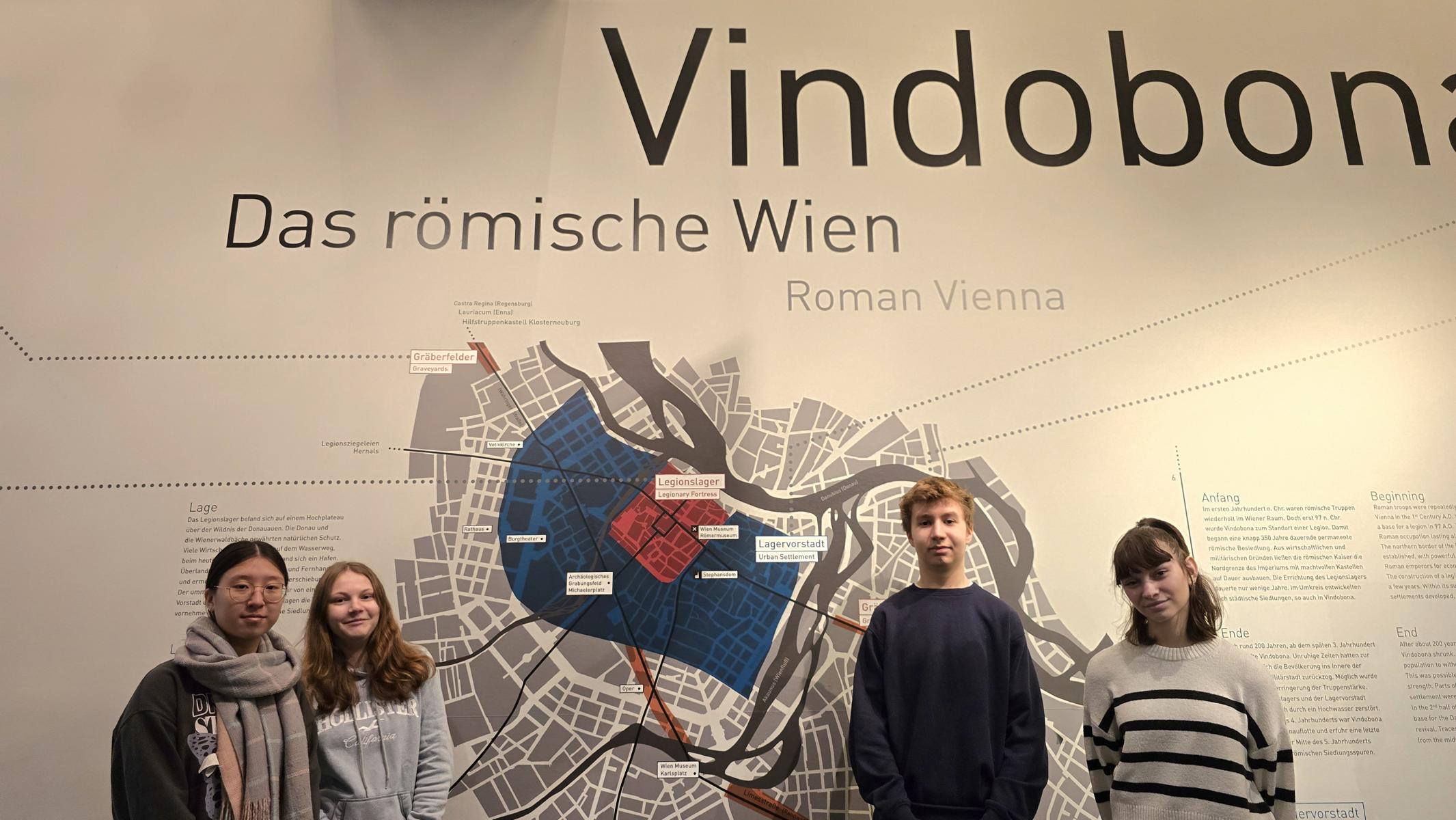 Im Rahmen der Intensivsprachwoche war die die Lateingruppe der 6b mit ihrem Lehrer Prof. Gerald Schober auf den Spuren des römischen Legionslagers Vindobona im Römermuseum am Hohen Markt in Wien. Danach entzifferten wir im 1. Bezirk lateinische Inschriften aus der Habsburgerzeit – zum Beispiel auf der Pestsäule am Graben oder in der Hofburg. Am Nachmittag besuchten wir im Kunsthistorischen Museum die Antikensammlung mit beeindruckenden Statuen und Mosaiken sowie die Gemäldegalerie mit Bildern von mythologischen Szenen, die wir bereits im Unterricht behandelt haben. Es ist faszinierend, wie beliebt diese Geschichten von Göttern und Helden seit vielen Jahrhunderten in der europäischen Kunst sind!