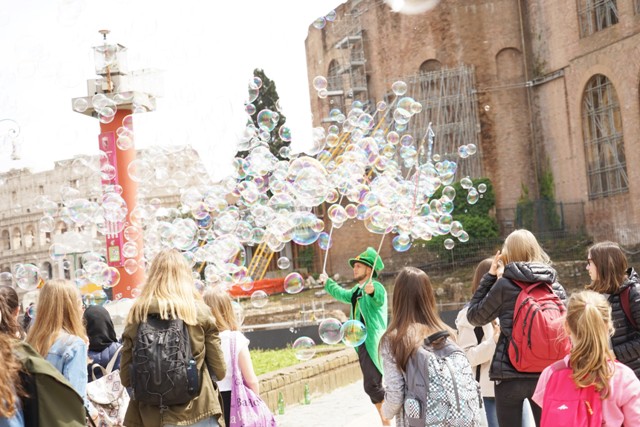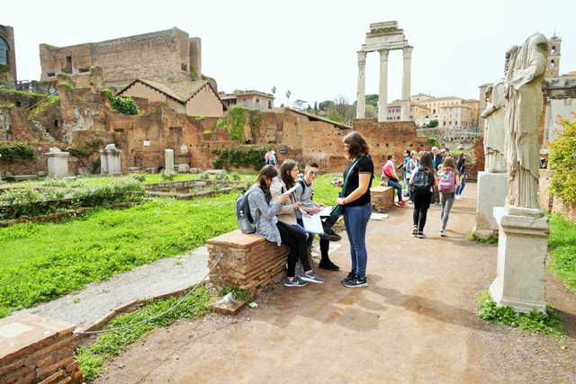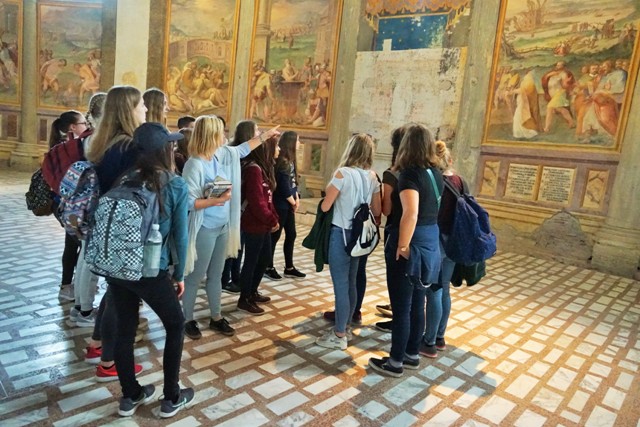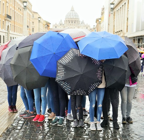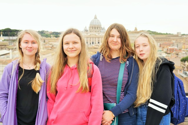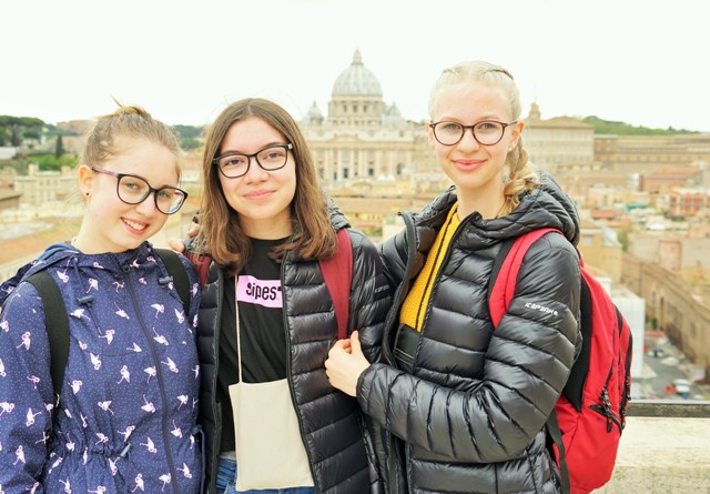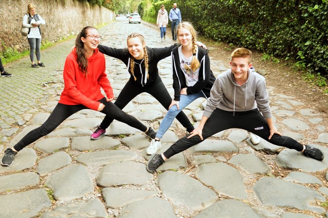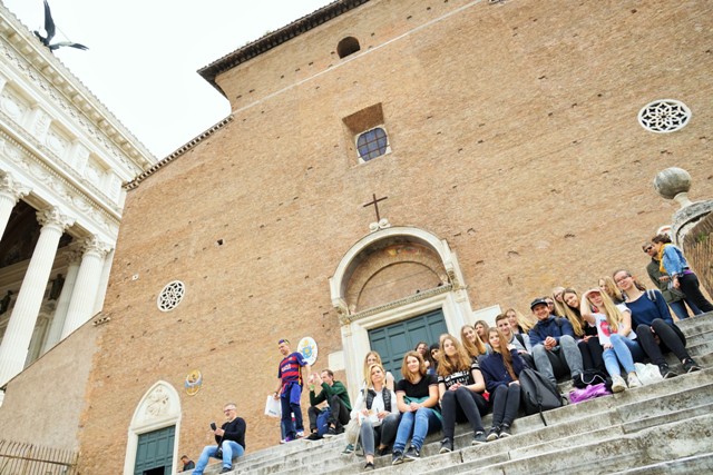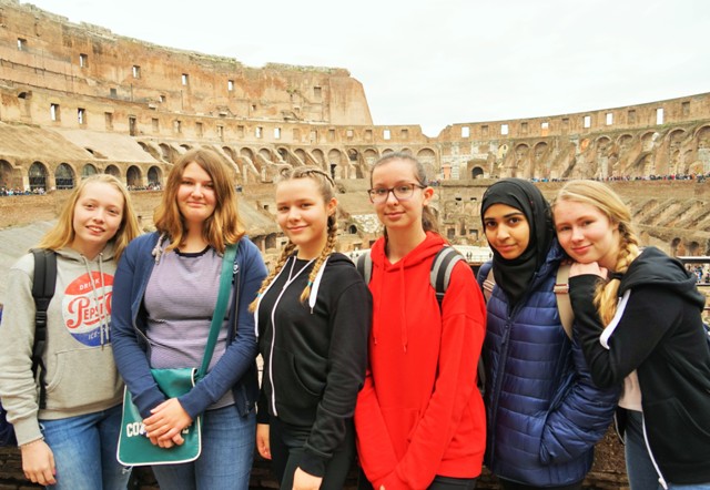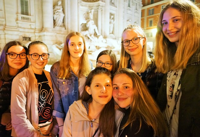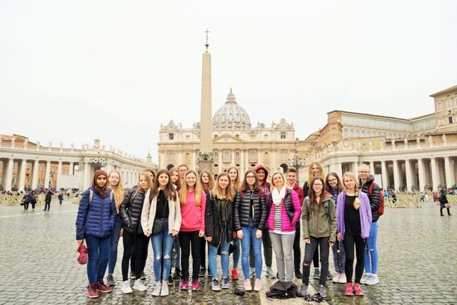 Wer sich schon einmal gefragt hat, ob eine Kulturwoche in Rom denn überhaupt anstrengend ist – hier ist die Antwort. Nicht weniger als 130.000 Schritte haben Mag. Brigitta Schnaubelt als Organisatorin und Mag. Peter Schnaubelt als Klassenvorstand zusammen mit der 5a von 9. April abends bis 16. April vormittags auf ihrer Reise in die „ewige Stadt“ zurückgelegt – das bedeutet nicht weniger als 110 Kilometer! Die dabei verbrauchten Kalorien führten sich fast alle in einem Geschäft mit 150 verschiedenen Eissorten ohne Probleme wieder zu, schließlich müssen so viele Geschmacksrichtungen auch einmal durchprobiert werden. Die besuchten Sehenswürdigkeiten reichten vom Kolosseum und dem Forum Romanum, dem Pantheon und der Engelsburg, den Kapitolinischen und den Vatikanischen Museen bis zum Petersdom, dessen Kuppel auch bestiegen wurde, einer Reihe weiterer Kirchen mit ihren ganz speziellen Highlights bis zu den beeindruckenden Ausgrabungen in Ostia Antica und einem kurzen Bad in kühlen Meereswellen. Durch die sehr zentrale Lage des klösterlichen Quartiers hatten die Schülerinnen und Schüler Gelegenheit, abends auch in kleinen Gruppen unterwegs zu sein und die italienische Küche ganz nach ihrem persönlichen Gusto zu genießen. Über ihre Eindrücke werden sie im heurigen Jahresbericht ausführlicher berichten, hier gibt es schon mal eine Galerie von Fotos zu sehen.