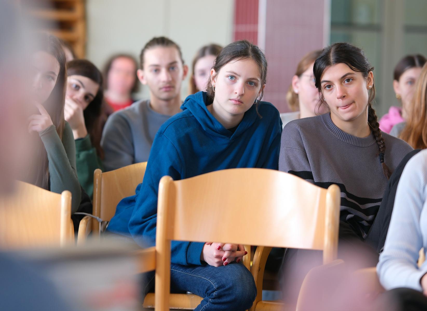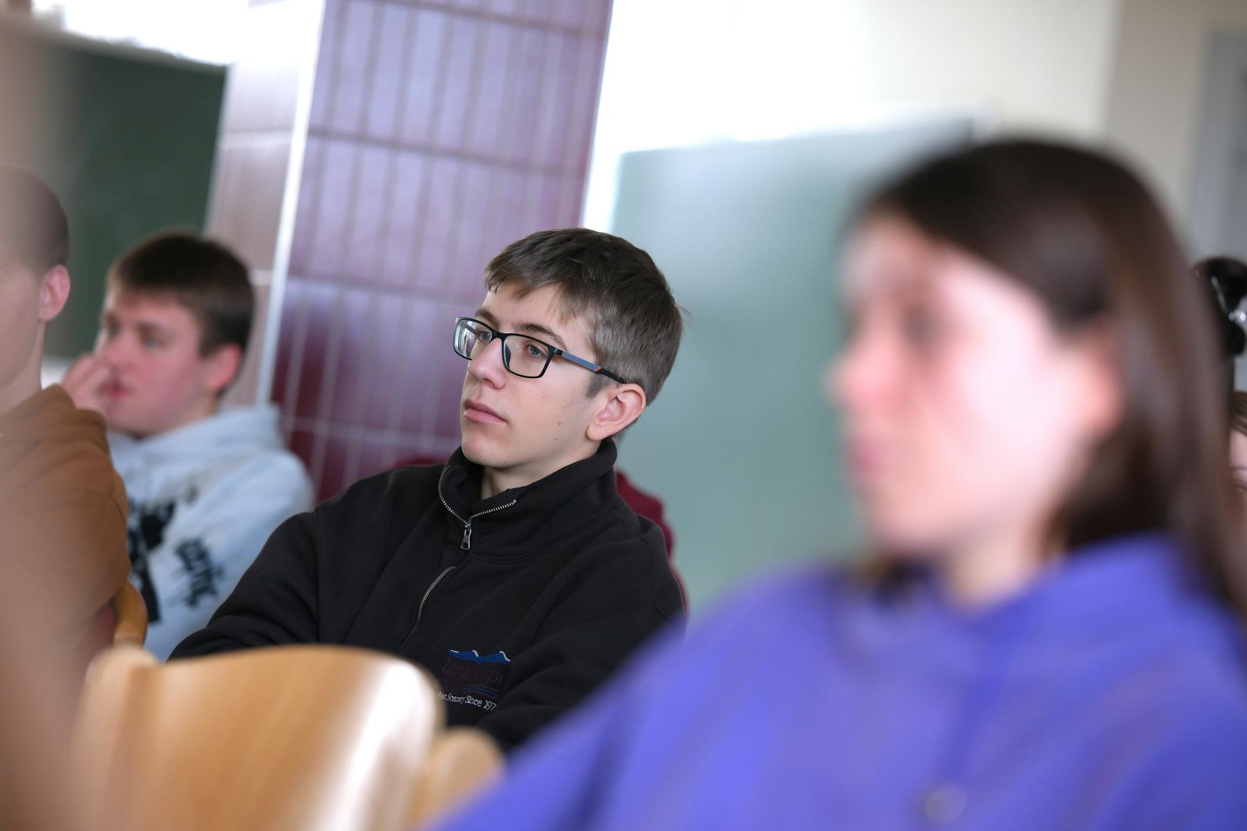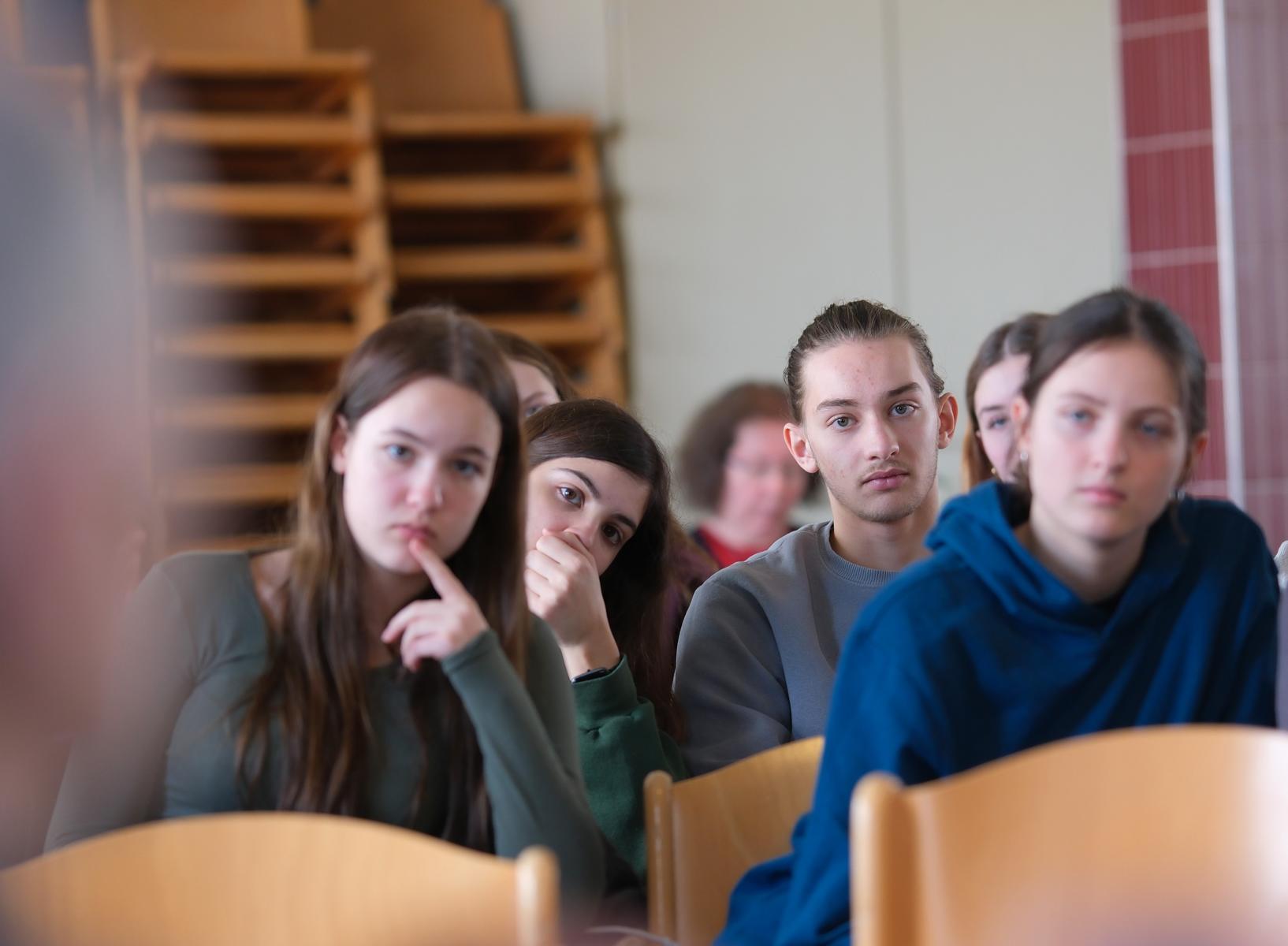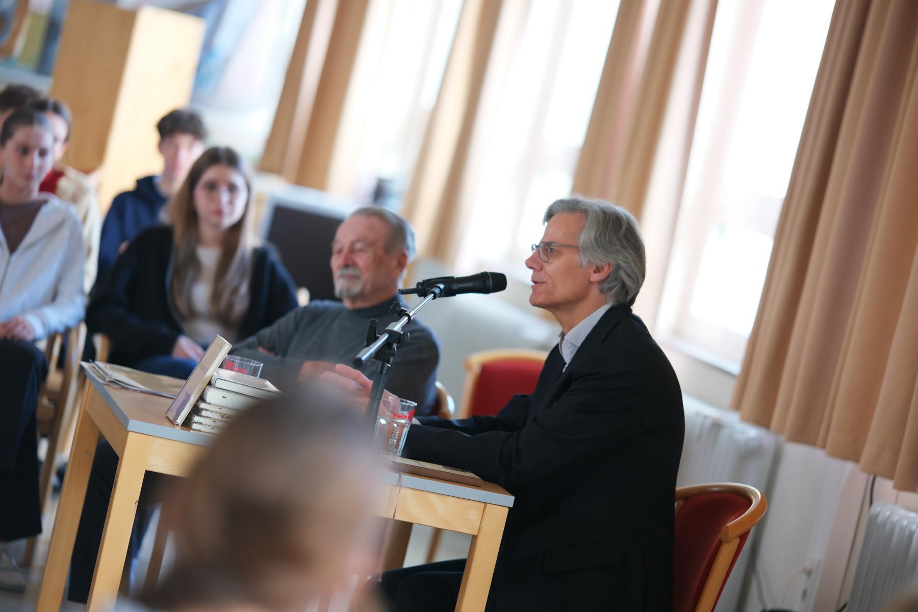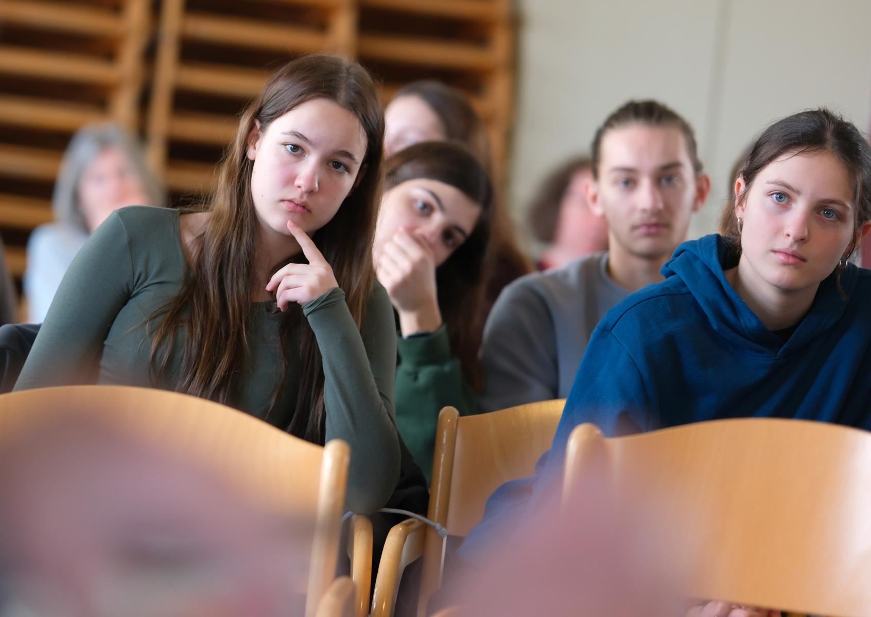 Dr. Andreas Schindl ist als Dermatologe in Wien und Retz tätig und zudem Autor des exzellent geschriebenen und sehr filmisch strukturierten Buches Die Verspätung, einer Mischung aus den realen Erlebnissen seines Vaters Franz und einer semi-fiktionalen Beschäftigungen mit dessen Vater, der noch in den letzten Tagen des Zweiten Weltkriegs zur Wehrmacht eingezogen wurde und nicht mehr nach Hause kommen sollte. Dr. Franz Schindl, seines Zeichens studierter Jurist und mittlerweile im 93. Lebensjahr, schilderte äußerst lebendig über die großteils unbeschwerte Zeit seiner Kindheit und Jugend, in der er seinen Traum fasste, einmal Pilot zu werden, und sprach auch über jene Tage, in denen er aufgrund seiner Begeisterung für die nationalsozialistische Elitenschule Napola in einen direkten Konflikt mit seinem Vater geriet – der seinerseits zu jener Verspätung von einer Dreiviertelstunde führte, aufgrund derer der Vater zum Kriegsdienst eingezogen wurde. Berührend die Szene des Abschieds, der kein richtiger war, am Bahnhof Gmünd und die Erzählungen von Vater und Sohn Schindl über die Nachforschungen zu ihrer eigenen Familiengeschichte, die schließlich in dem Buch aufgearbeitet wurde. Unsere Schüler:innen beteiligten sich an der Diskussion mit zahlreichen Fragen, etwa über Parallelen in der Politik zwischen damals und heute, und gewannen Einsicht in die damalige Zeit abseits der harten Fakten in den Schulbüchern.