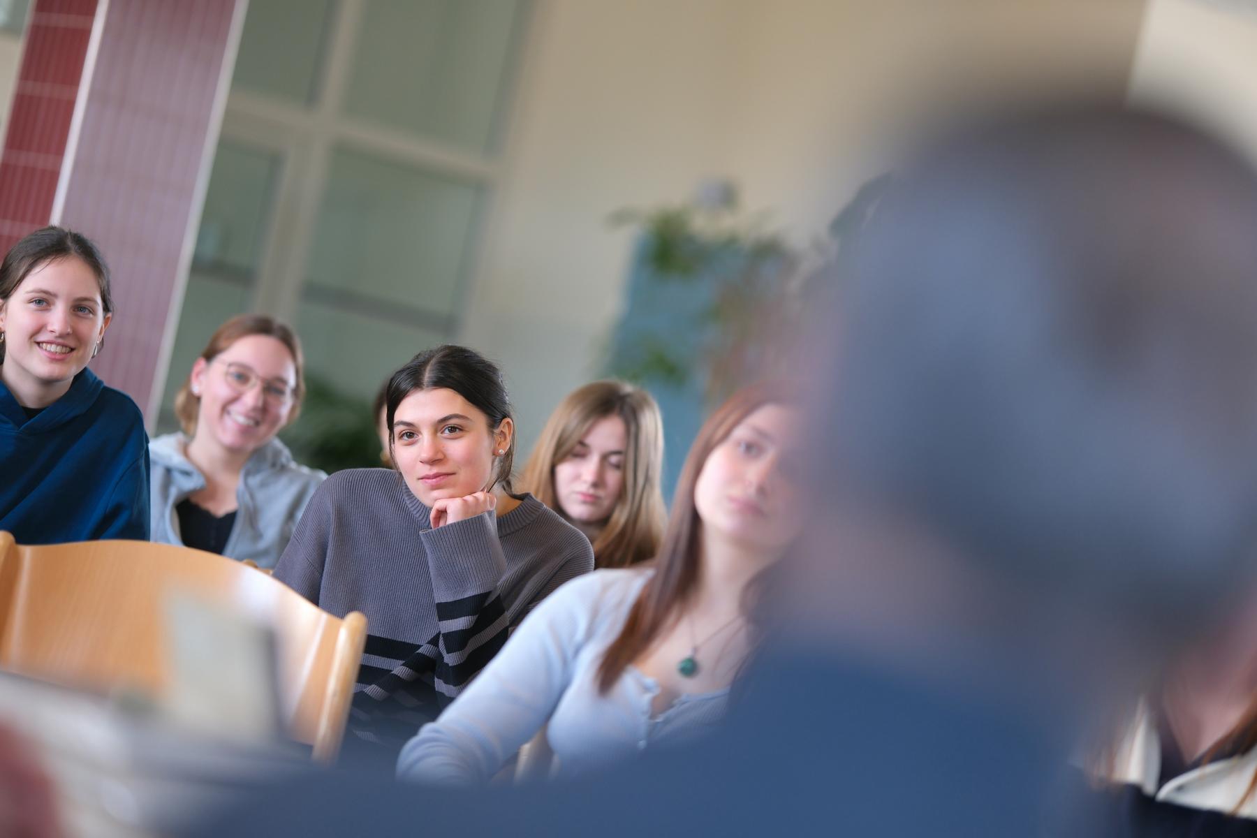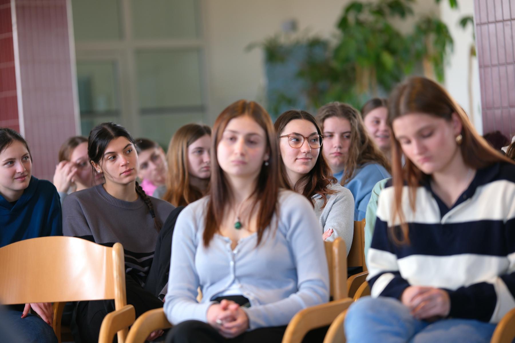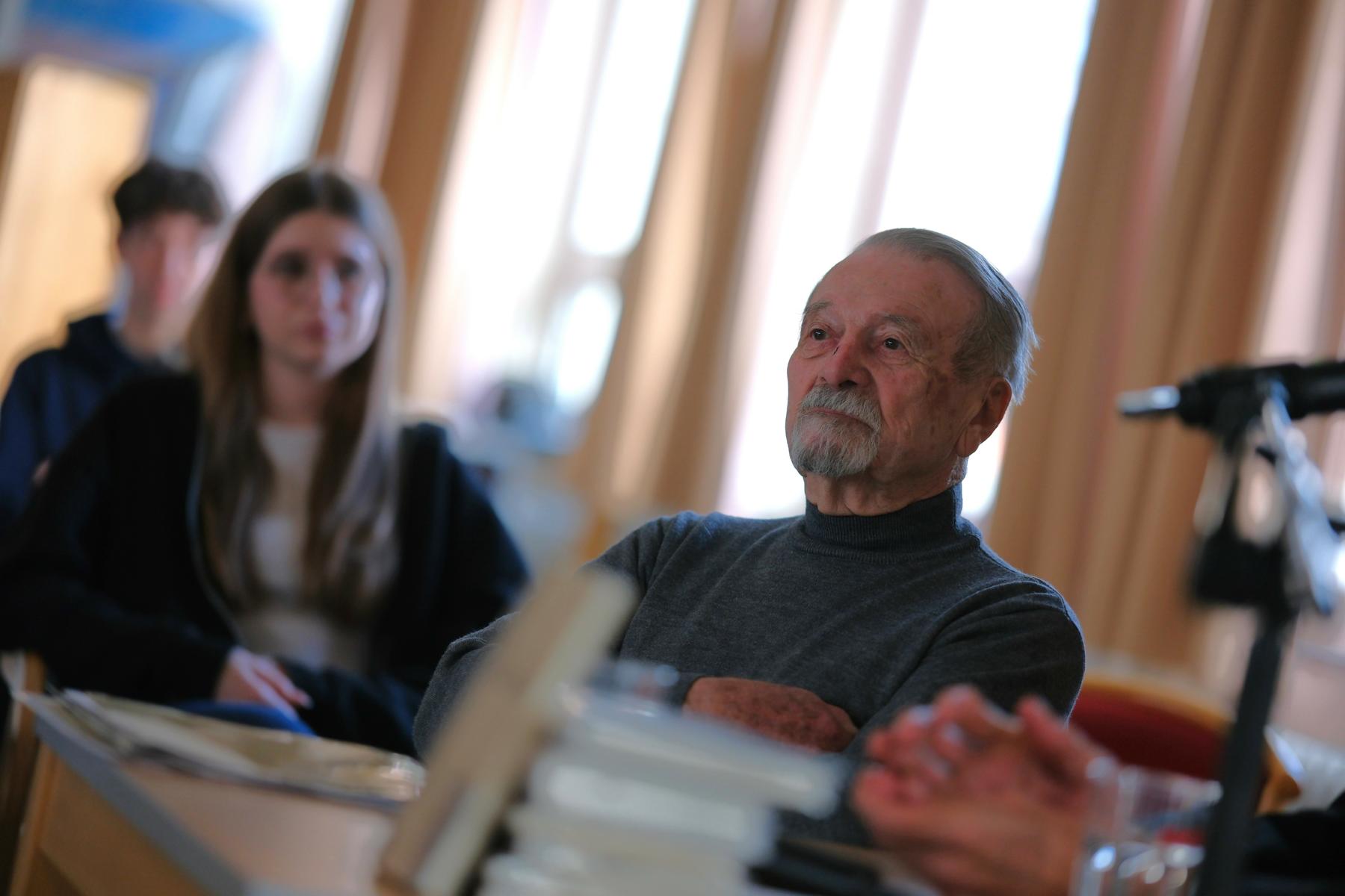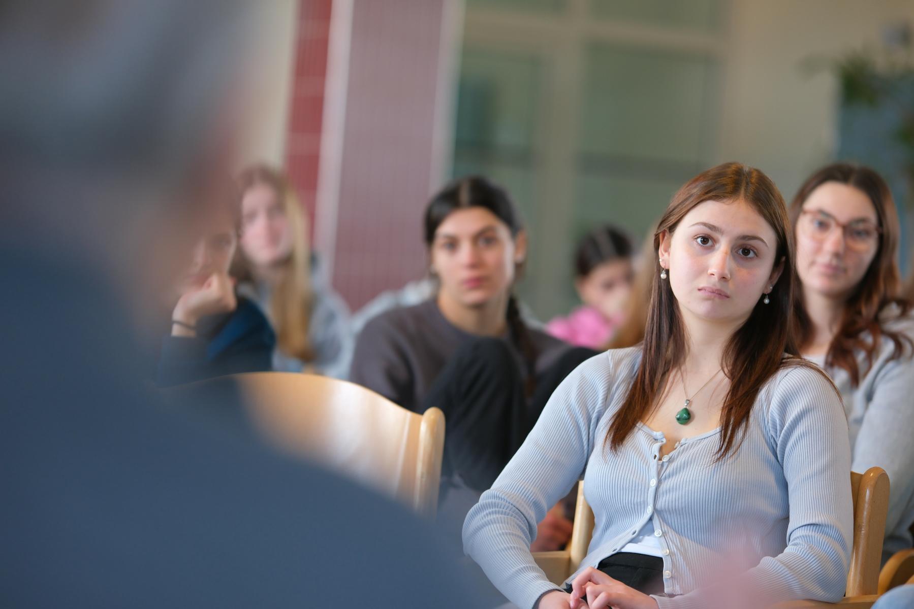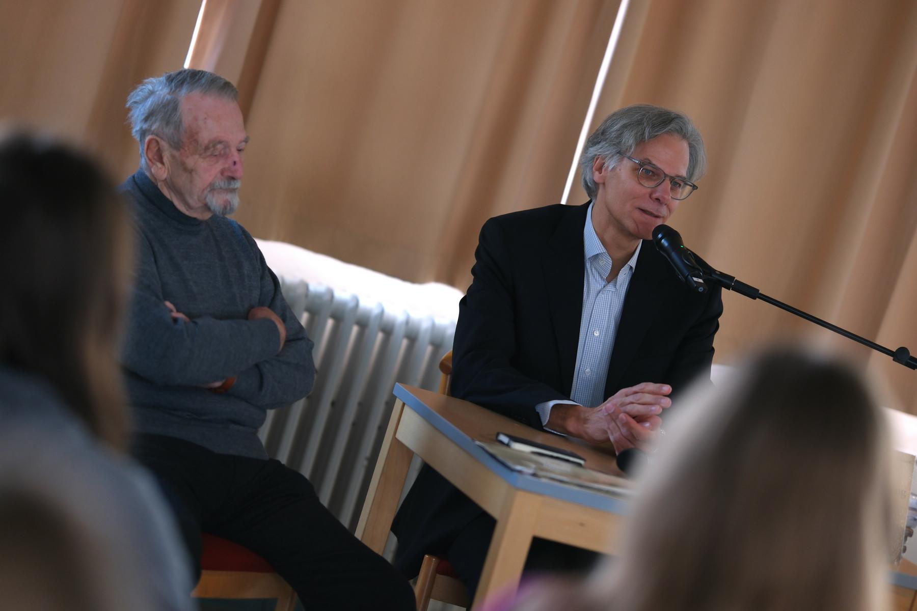Dr. Andreas Schindl ist als Dermatologe in Wien und Retz tätig und zudem Autor des exzellent geschriebenen und sehr filmisch strukturierten Buches Die Verspätung, einer Mischung aus den realen Erlebnissen seines Vaters Franz und einer semi-fiktionalen Beschäftigungen mit dessen Vater, der noch in den letzten Tagen des Zweiten Weltkriegs zur Wehrmacht eingezogen wurde und nicht mehr nach Hause kommen sollte. Dr. Franz Schindl, seines Zeichens studierter Jurist und mittlerweile im 93. Lebensjahr, schilderte äußerst lebendig über die großteils unbeschwerte Zeit seiner Kindheit und Jugend, in der er seinen Traum fasste, einmal Pilot zu werden, und sprach auch über jene Tage, in denen er aufgrund seiner Begeisterung für die nationalsozialistische Elitenschule Napola in einen direkten Konflikt mit seinem Vater geriet – der seinerseits zu jener Verspätung von einer Dreiviertelstunde führte, aufgrund derer der Vater zum Kriegsdienst eingezogen wurde. Berührend die Szene des Abschieds, der kein richtiger war, am Bahnhof Gmünd und die Erzählungen von Vater und Sohn Schindl über die Nachforschungen zu ihrer eigenen Familiengeschichte, die schließlich in dem Buch aufgearbeitet wurde. Unsere Schüler:innen beteiligten sich an der Diskussion mit zahlreichen Fragen, etwa über Parallelen in der Politik zwischen damals und heute, und gewannen Einsicht in die damalige Zeit abseits der harten Fakten in den Schulbüchern.