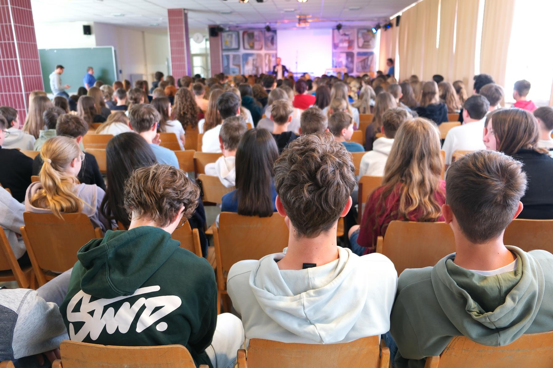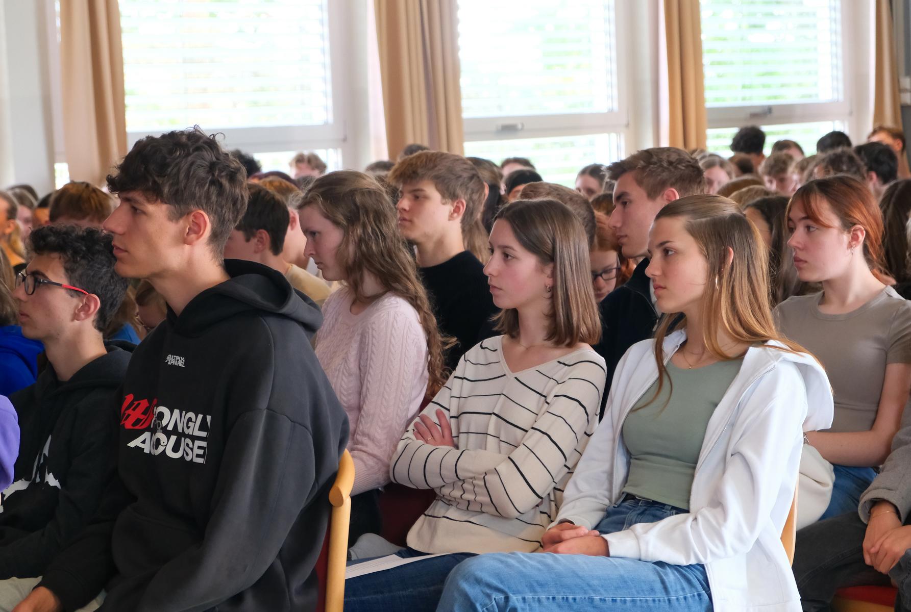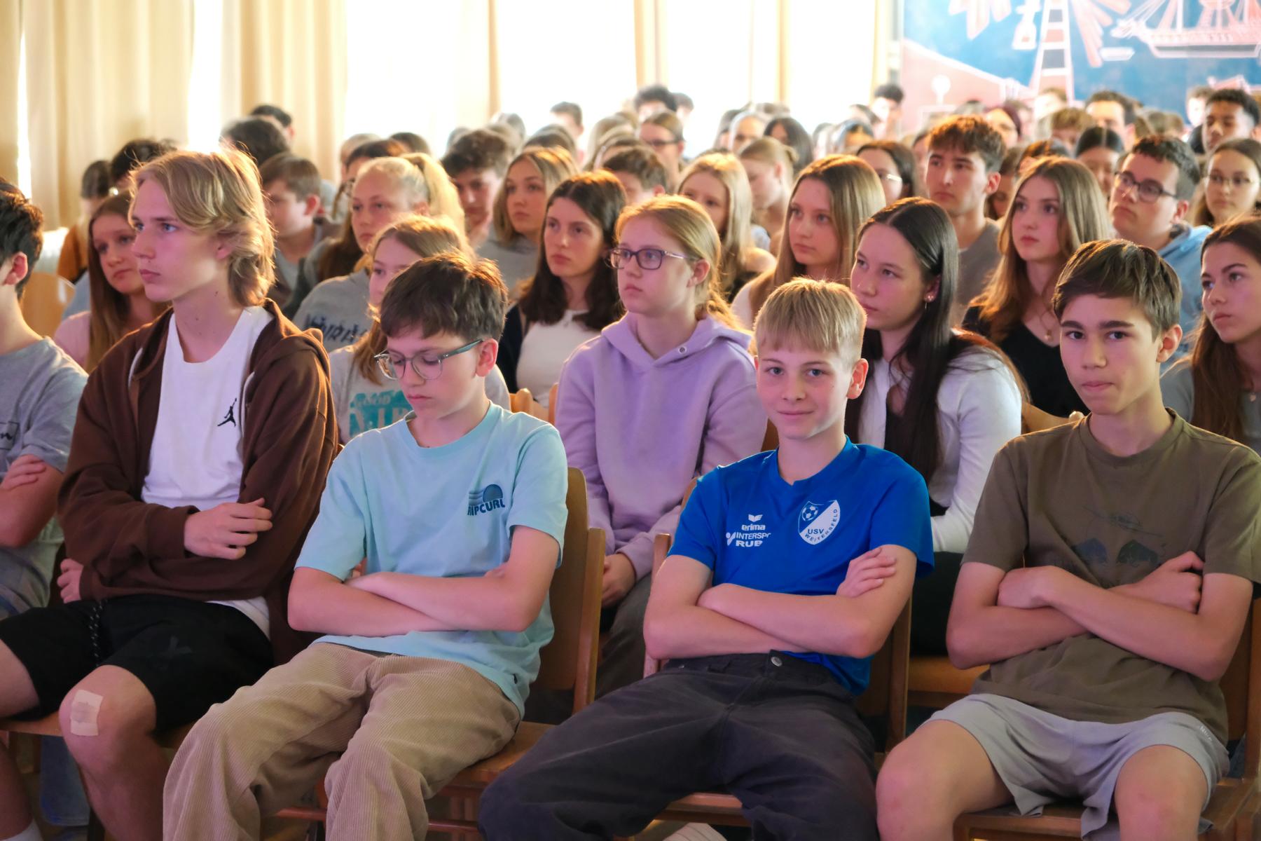 „Wenn man in einer Schule vor ein unbekanntes Publikum tritt, ist nie gewiss, wie groß das Interesse sein wird“, resümierte Tarek Leitner im Anschluss an die zweistündige Veranstaltung. Die beachtliche Anzahl an gestellten Fragen ließ an jenem unserer Jugendlichen aber keine Zweifel. So ist die von vielen Seiten immer wieder zitierte politische Bildung an unserer Schule keine hohle Phrase, sondern gelebte Auseinandersetzung mit der Demokratie.