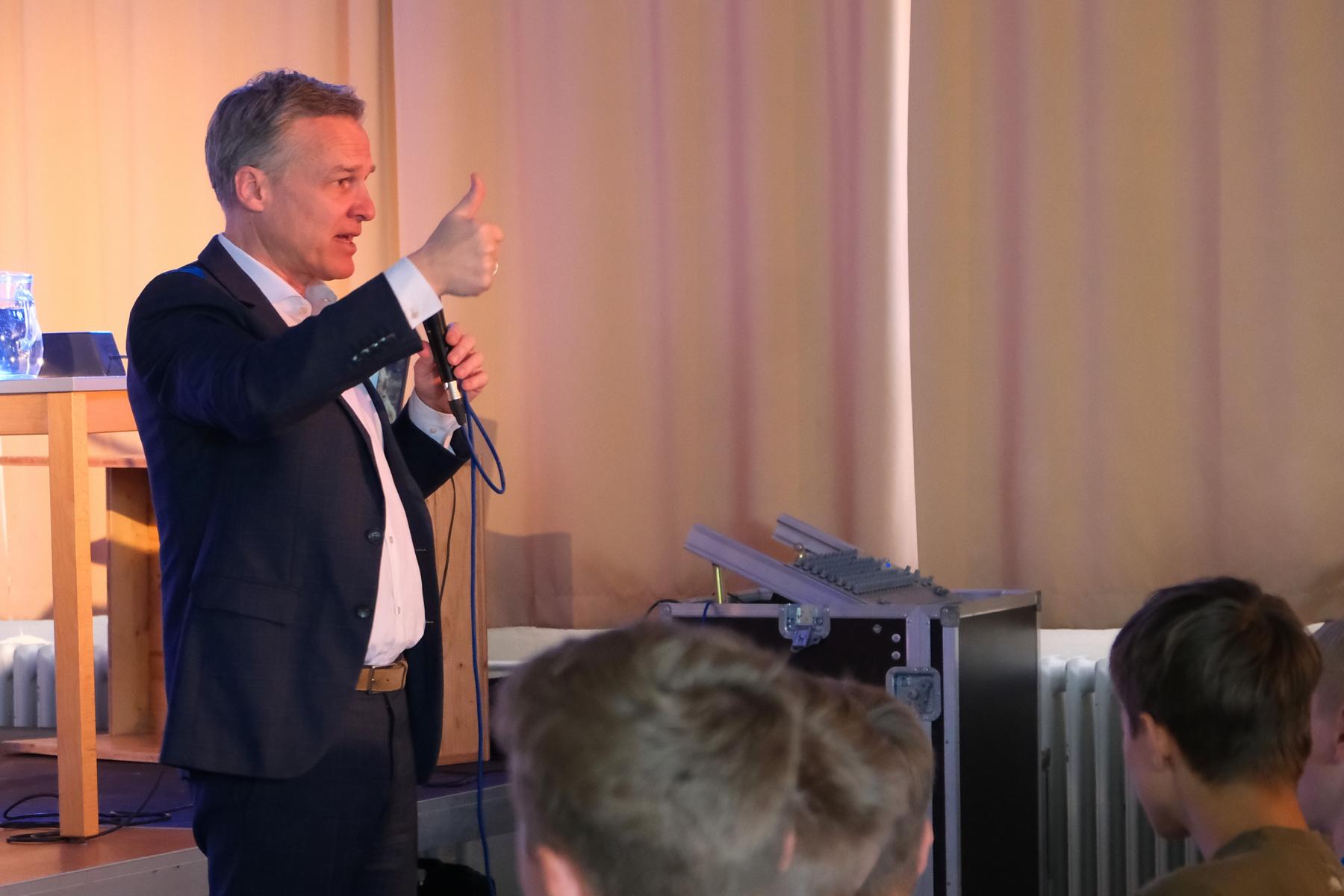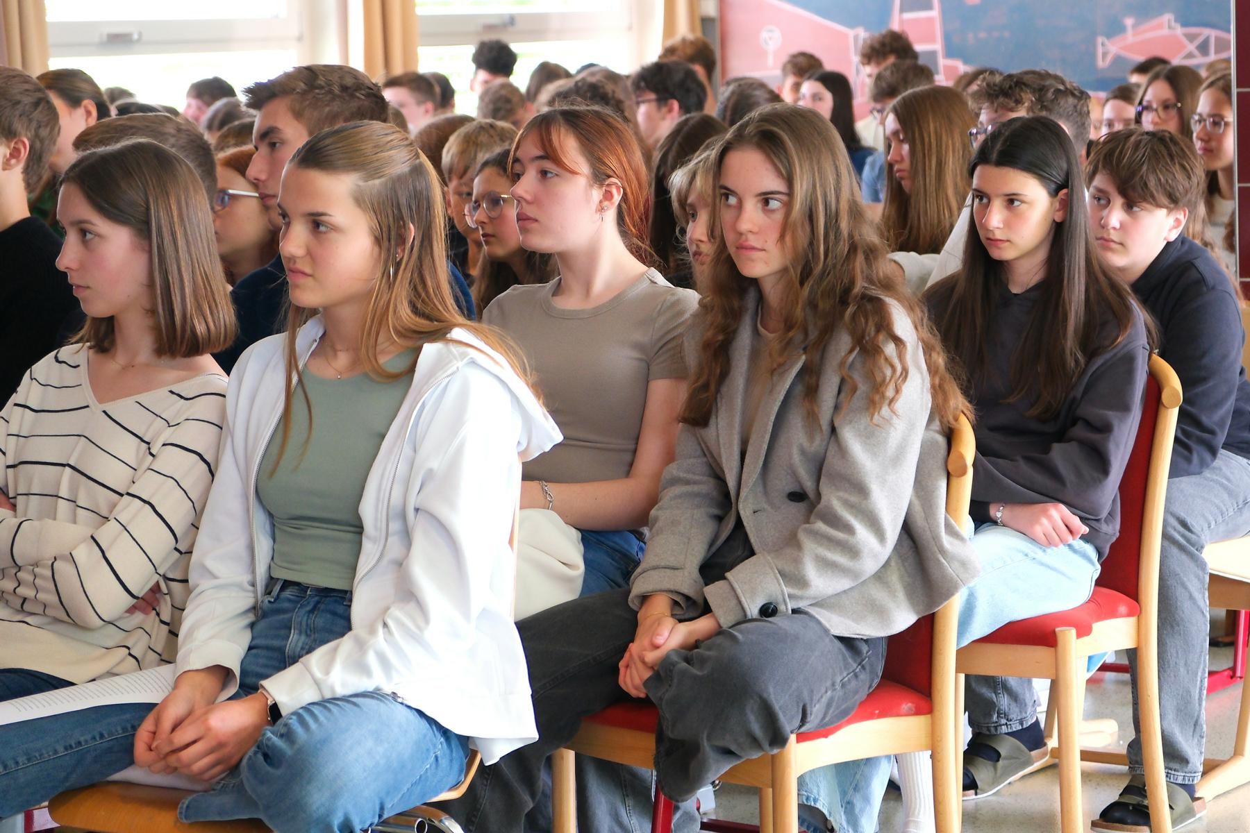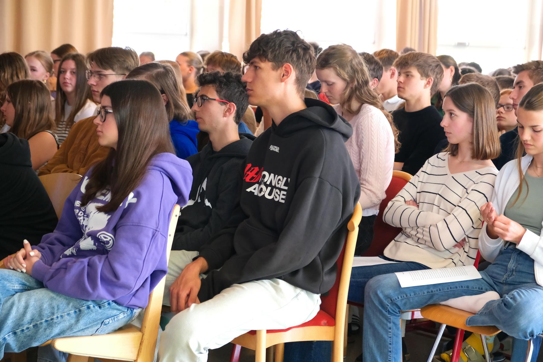 „Wenn man in einer Schule vor ein unbekanntes Publikum tritt, ist nie gewiss, wie groß das Interesse sein wird“, resümierte Tarek Leitner im Anschluss an die zweistündige Veranstaltung. Die beachtliche Anzahl an gestellten Fragen ließ an jenem unserer Jugendlichen aber keine Zweifel. So ist die von vielen Seiten immer wieder zitierte politische Bildung an unserer Schule keine hohle Phrase, sondern gelebte Auseinandersetzung mit der Demokratie.