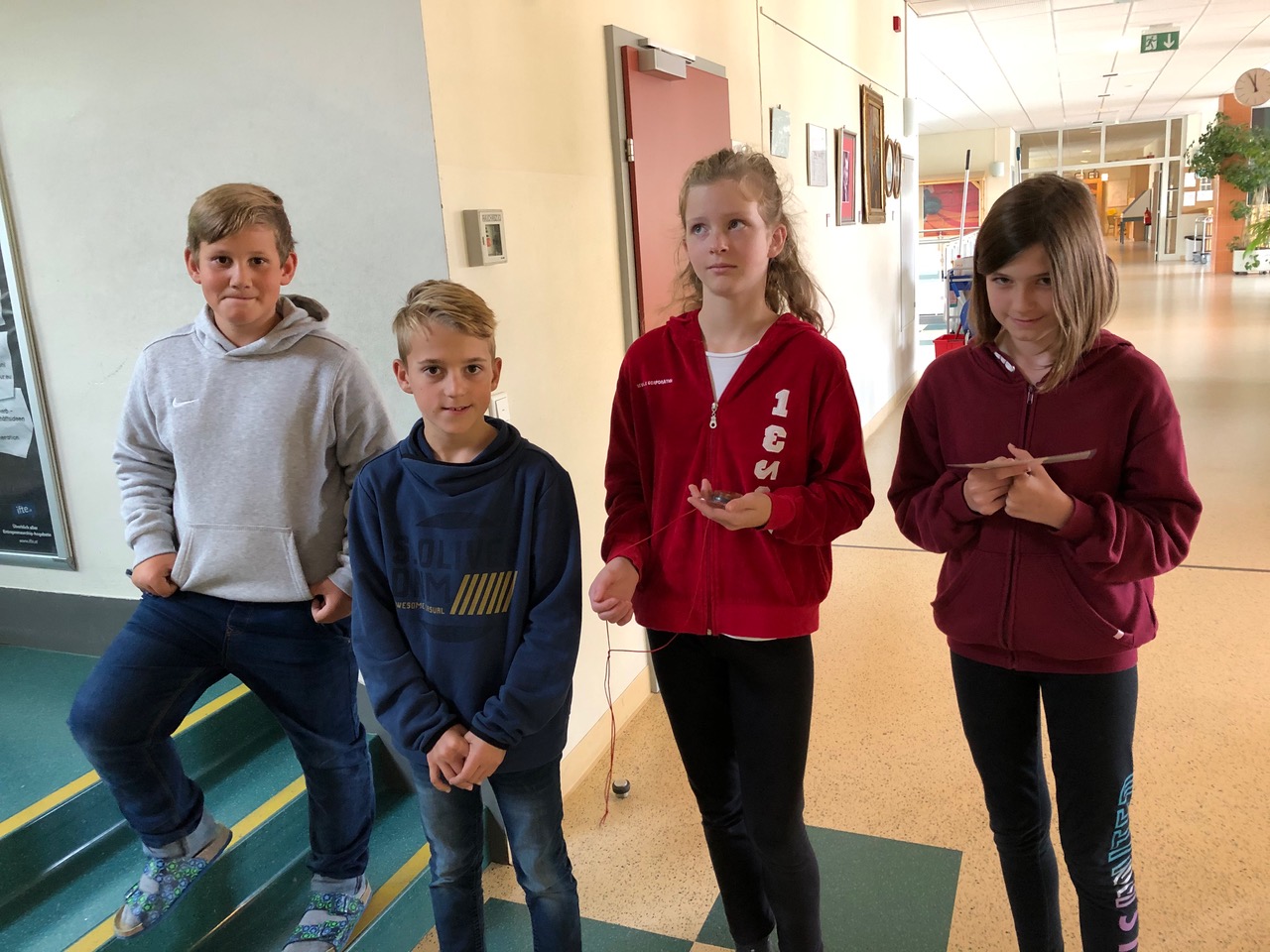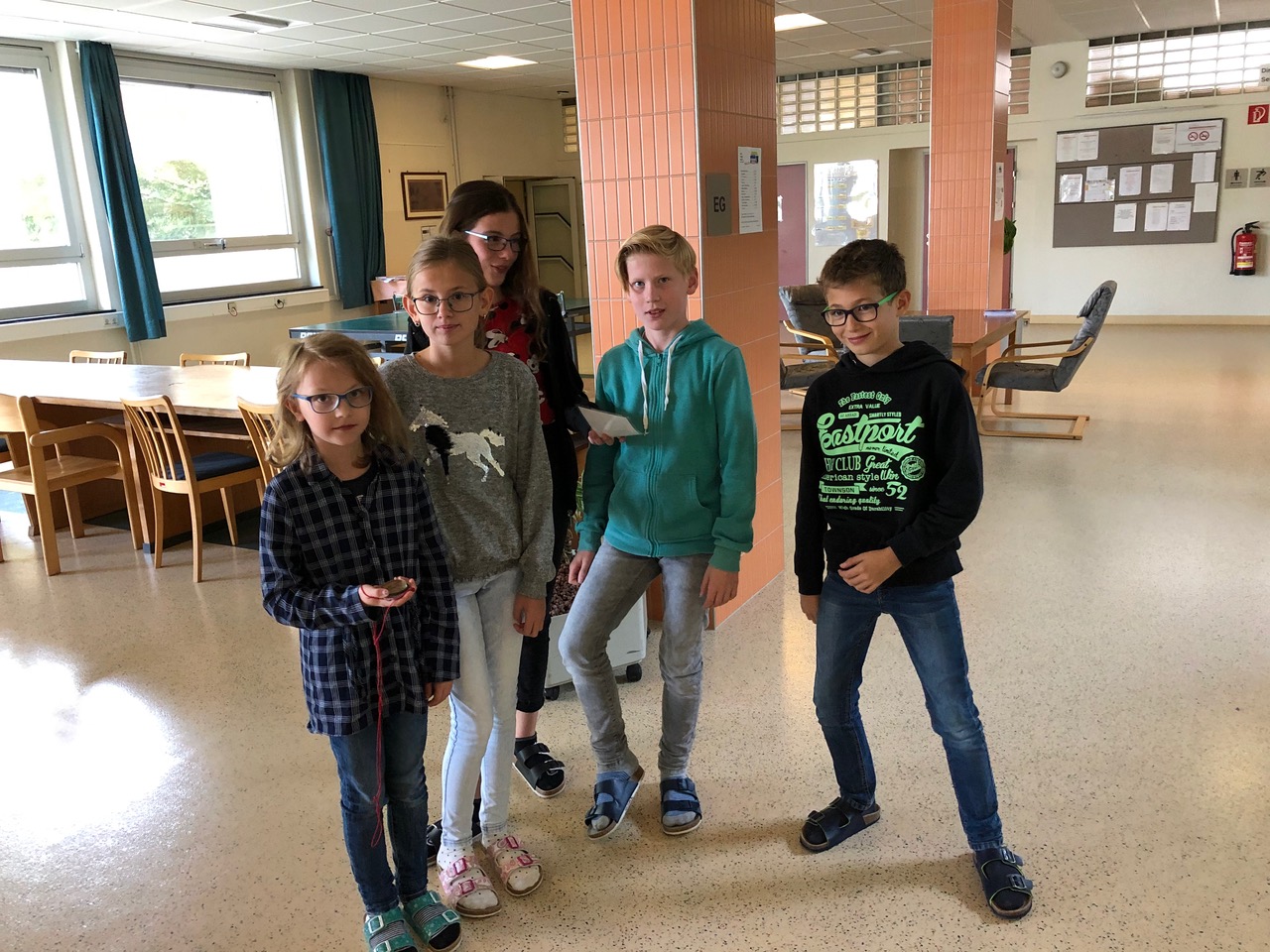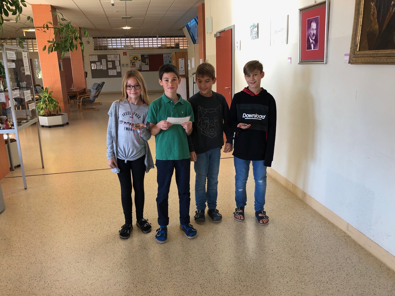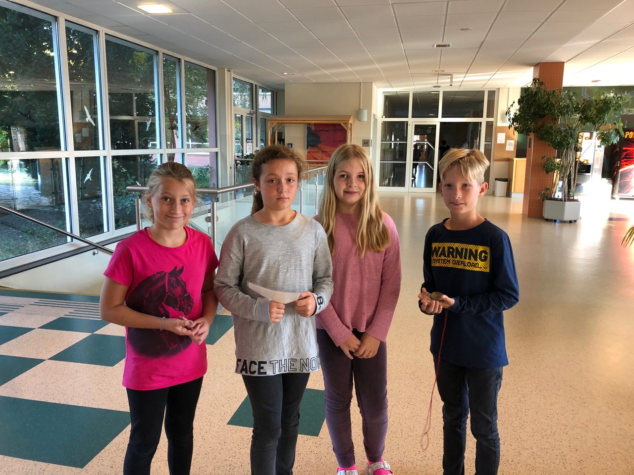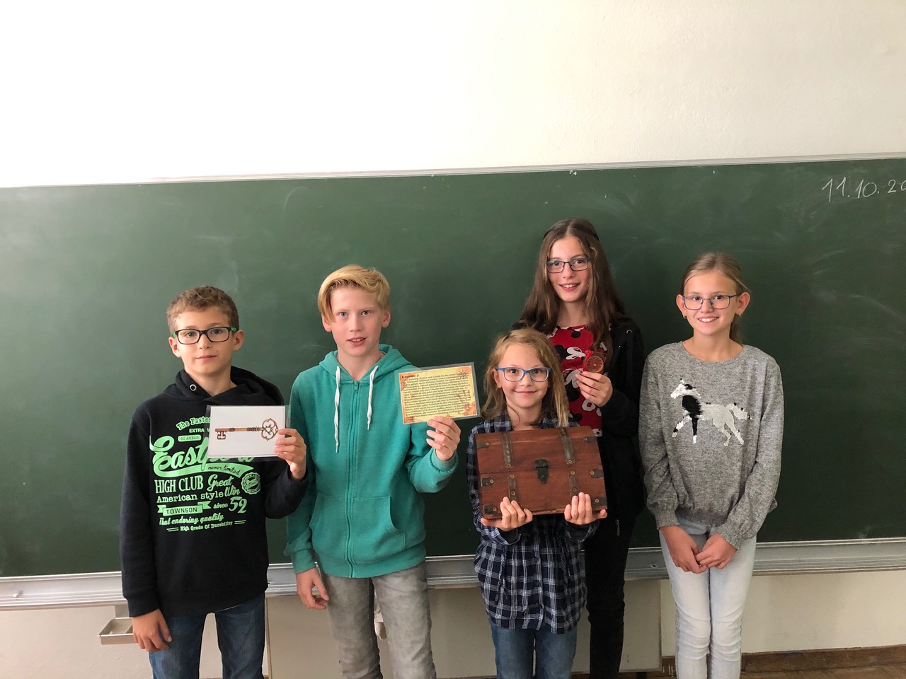 In der 1. Klasse lernen die Schülerinnen und Schüler im GWK-Unterricht über die Orientierung auf der Erde. Um die Theorie auch in der Praxis anzuwenden, nahmen die 1a und 1b an einer Kompassrallye durch das Schulgebäude teil. Mit Hilfe des Kompasses konnten die Angaben auf der Schatzkarte richtig interpretiert werden und schlussendlich wurden die Schlüssel zur gut gefüllten Schatzkiste entdeckt.