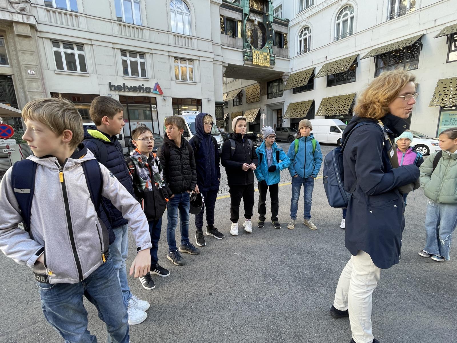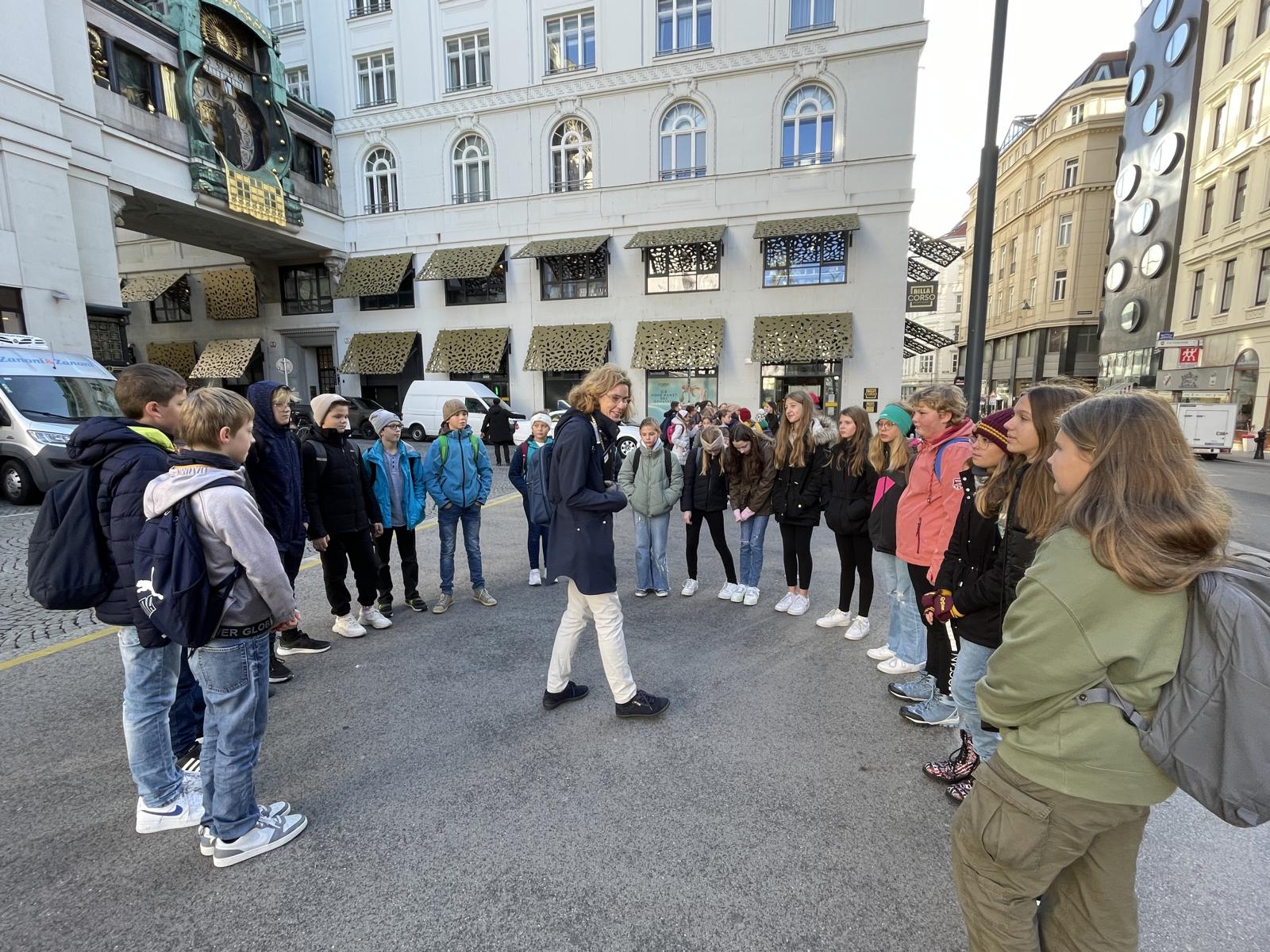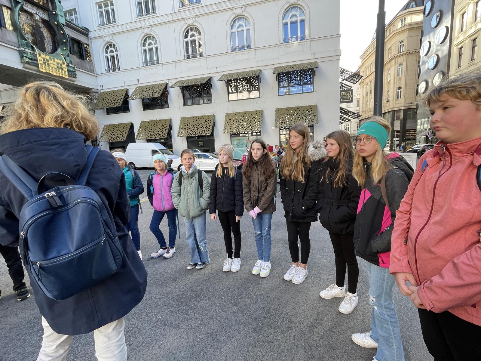Am Vormittag fand eine Stadtführung durch den ersten Bezirk statt. Viel erfuhren wir dabei über berühmte Sehenswürdigkeiten wie den Stephansdom, die Hofburg oder die Anker-Uhr. Der Weg führte uns auch zu interessanten Plätzen wie den Ausgrabungen am Michaelerplatz oder zur Spanischen Hofreitschule. Bestaunen konnten wir während der Führung ebenso die zahlreichen Geschäfte der Innenstadt.
