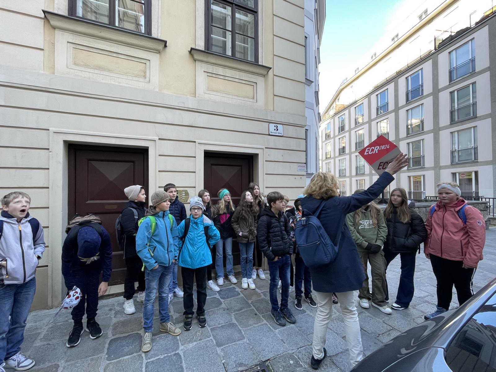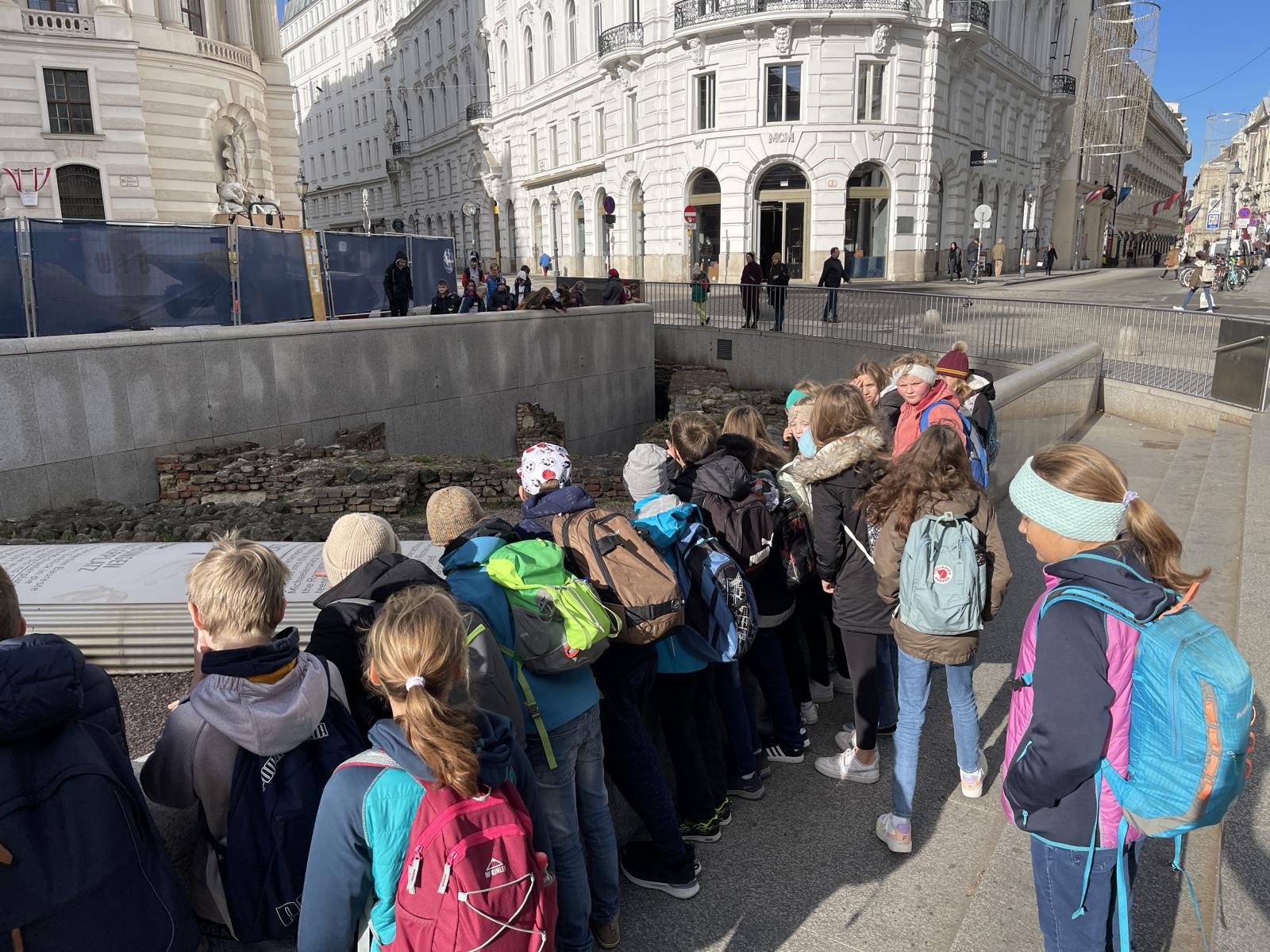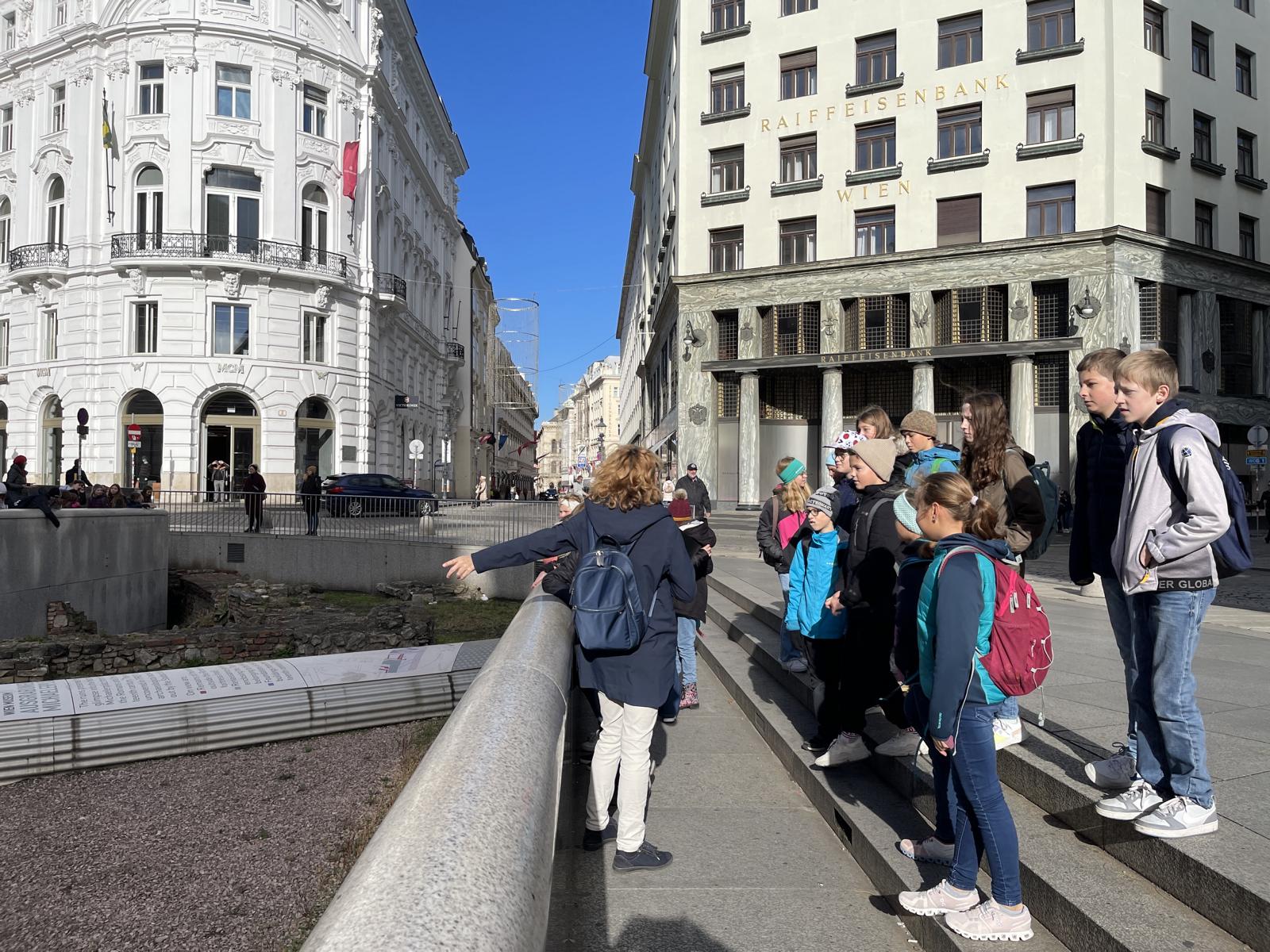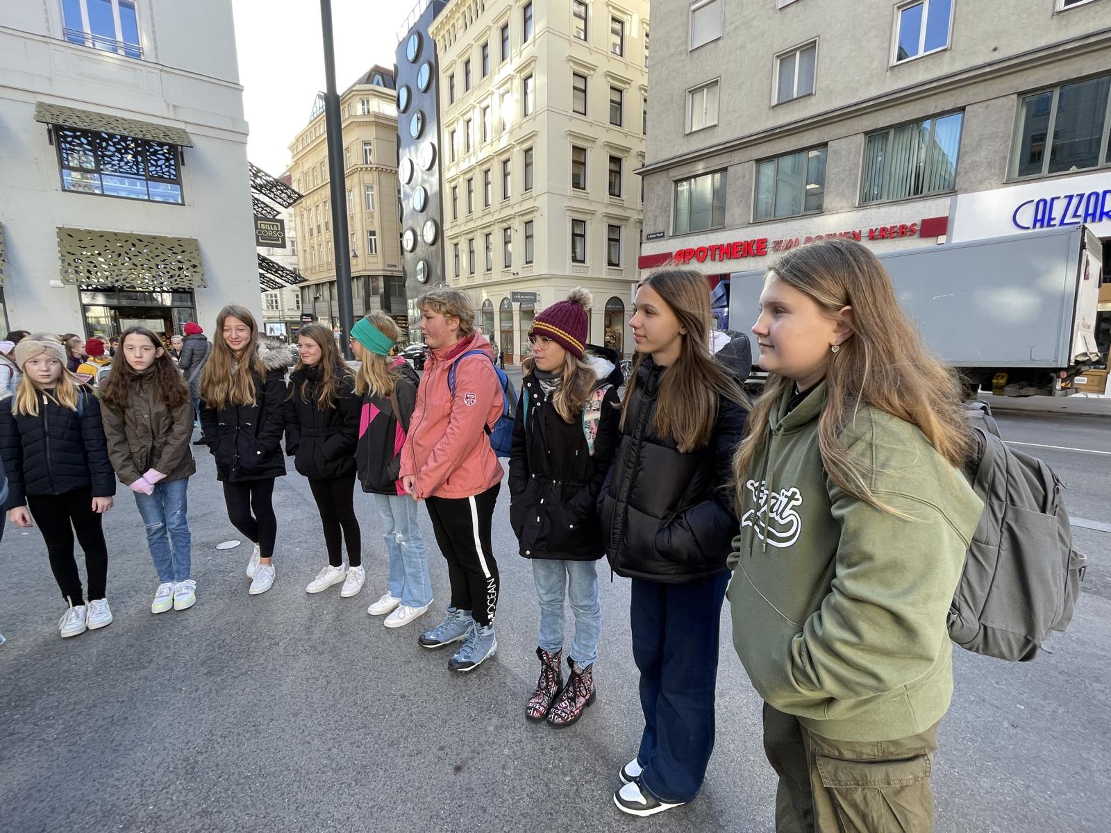 Am Vormittag fand eine Stadtführung durch den ersten Bezirk statt. Viel erfuhren wir dabei über berühmte Sehenswürdigkeiten wie den Stephansdom, die Hofburg oder die Anker-Uhr. Der Weg führte uns auch zu interessanten Plätzen wie den Ausgrabungen am Michaelerplatz oder zur Spanischen Hofreitschule. Bestaunen konnten wir während der Führung ebenso die zahlreichen Geschäfte der Innenstadt.