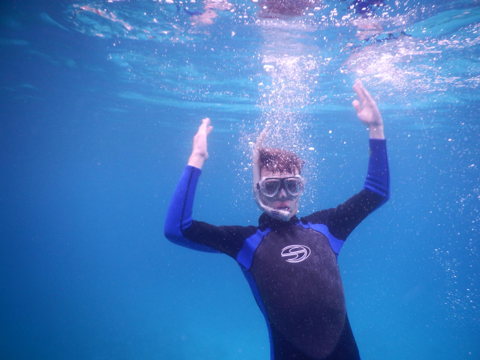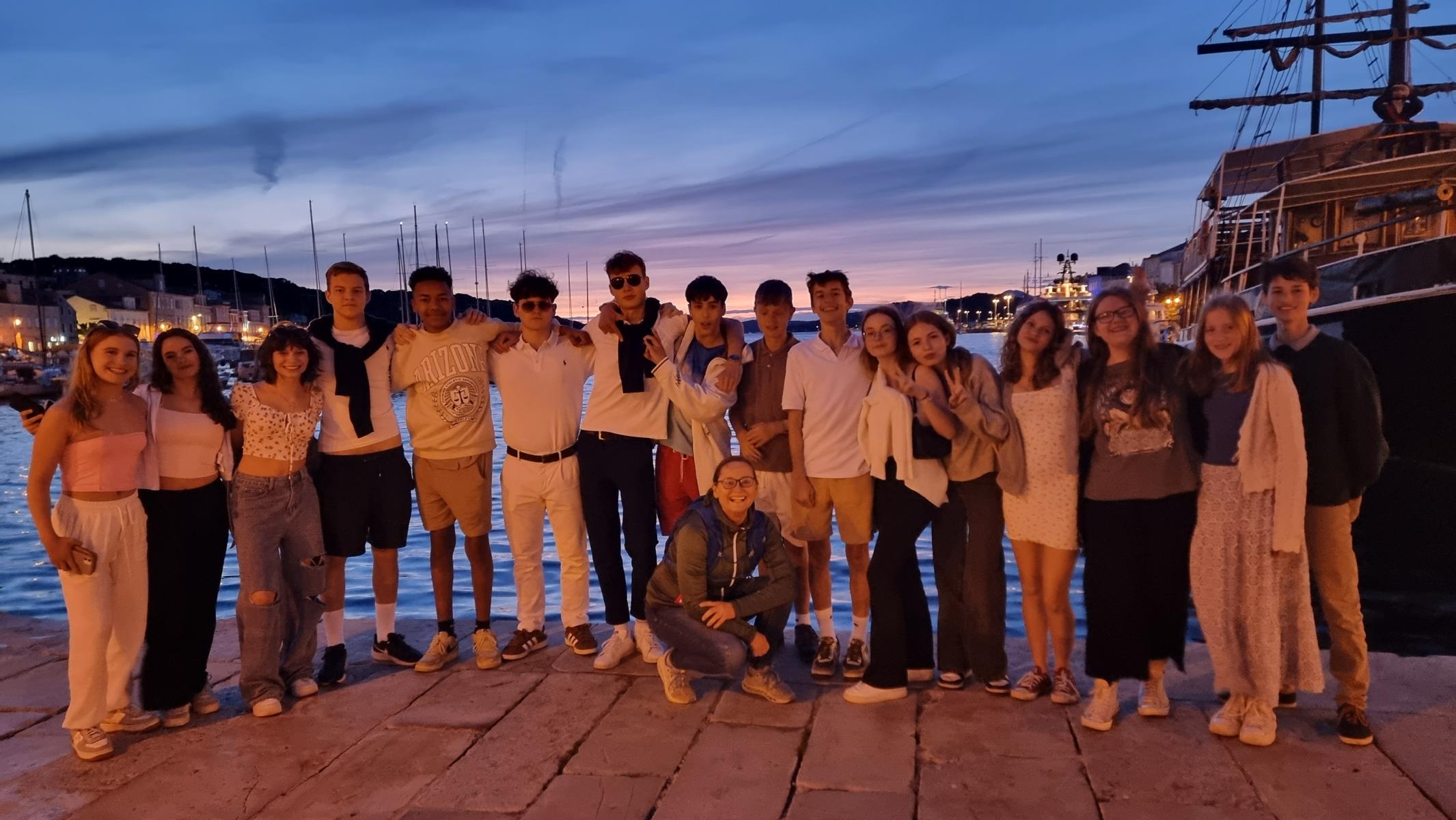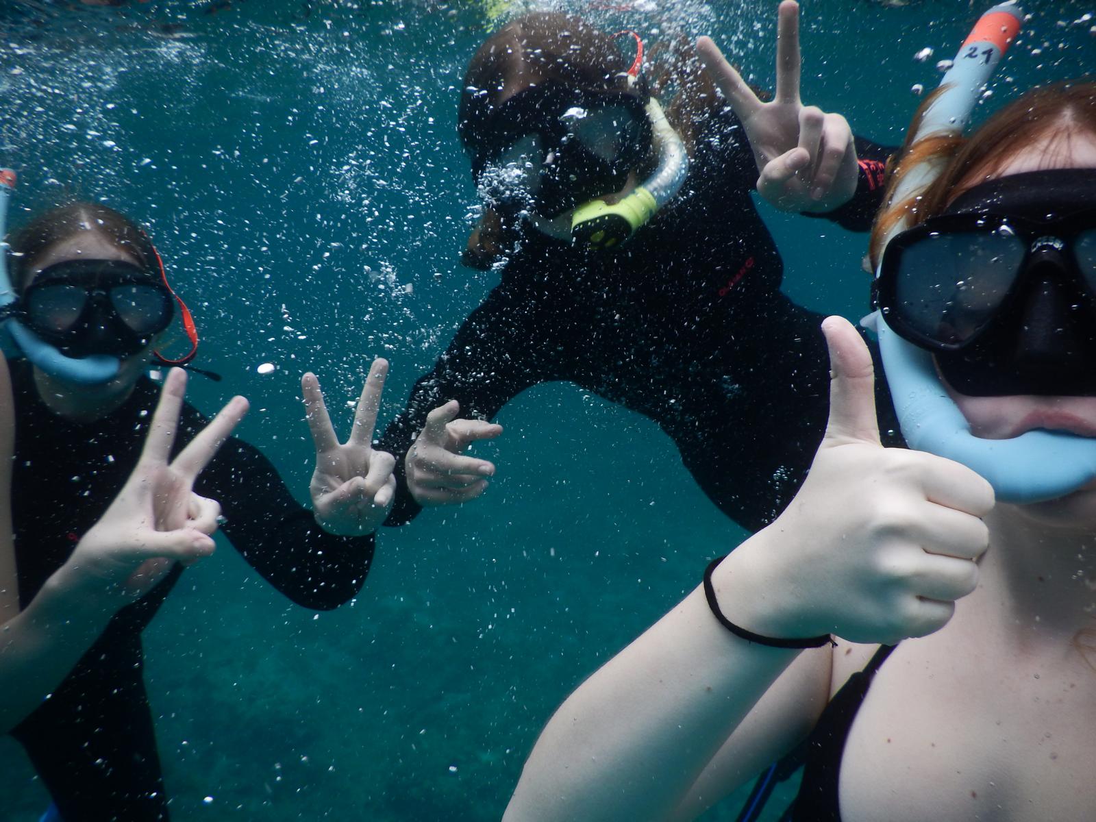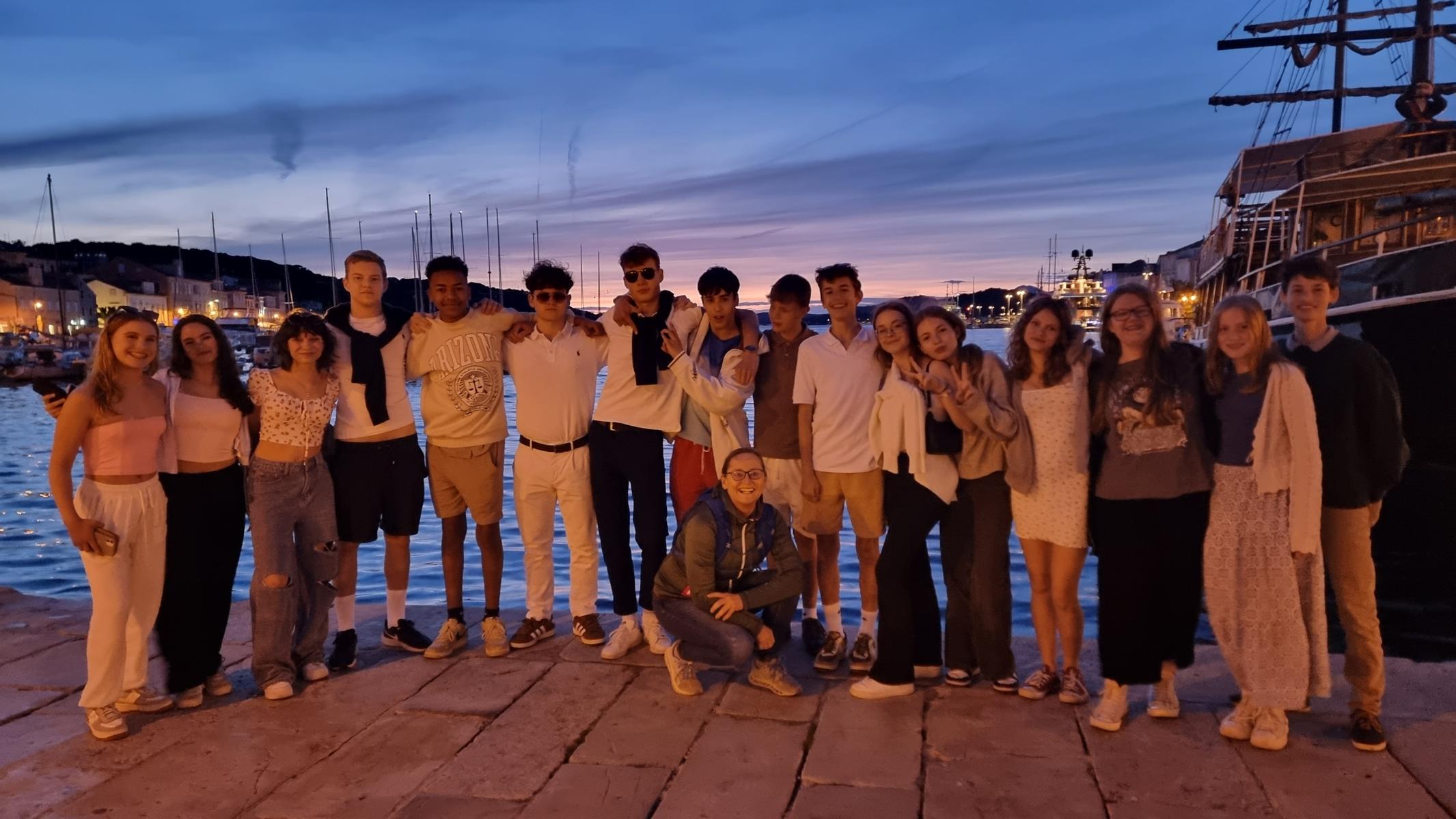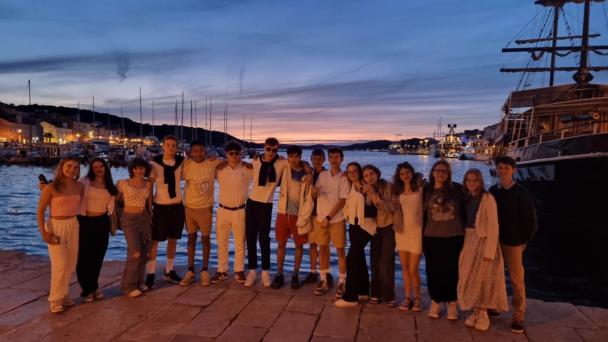 Am dritten Kurstag stand für uns Jugendlichen wie auch für die Lehrerinnen ein spannendes Erlebnis bevor, ein ganztägiger Bootsausflug. Der erste Stopp der Bootsfahrt war die sogenannte „Kroatische Karibik“, die diesen Namen trägt, da das Wasser dort so blau wie in der Karibik ist. Hier durften wir wieder Schnorcheln und sichteten viele Tiere wie Muscheln, Fische und Schnecken. Zurück an Bord, ging es weiter zu der „Blumeninsel“ Ilovik. Dort verbrachte unsere Reisegruppe die Mittagspause und genoss das schöne Wetter. Nach der Pause ging es weiter zu einer Grotte. Wir tasteten uns hier an den Wänden entlang und konnten etwa Schwämme und Nesseltiere entdecken. Anschließend hatten die ganz Mutigen noch die Möglichkeit, von den Wänden der Grotte zu springen.