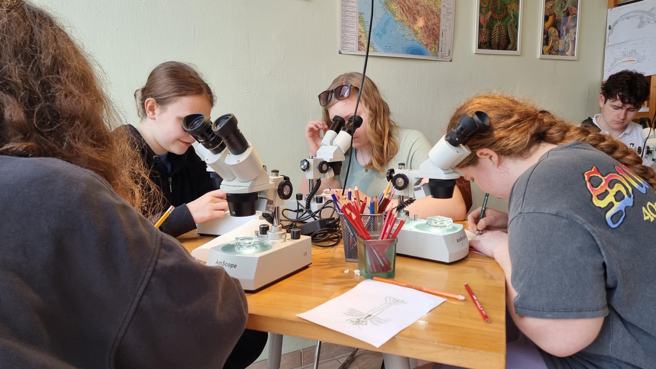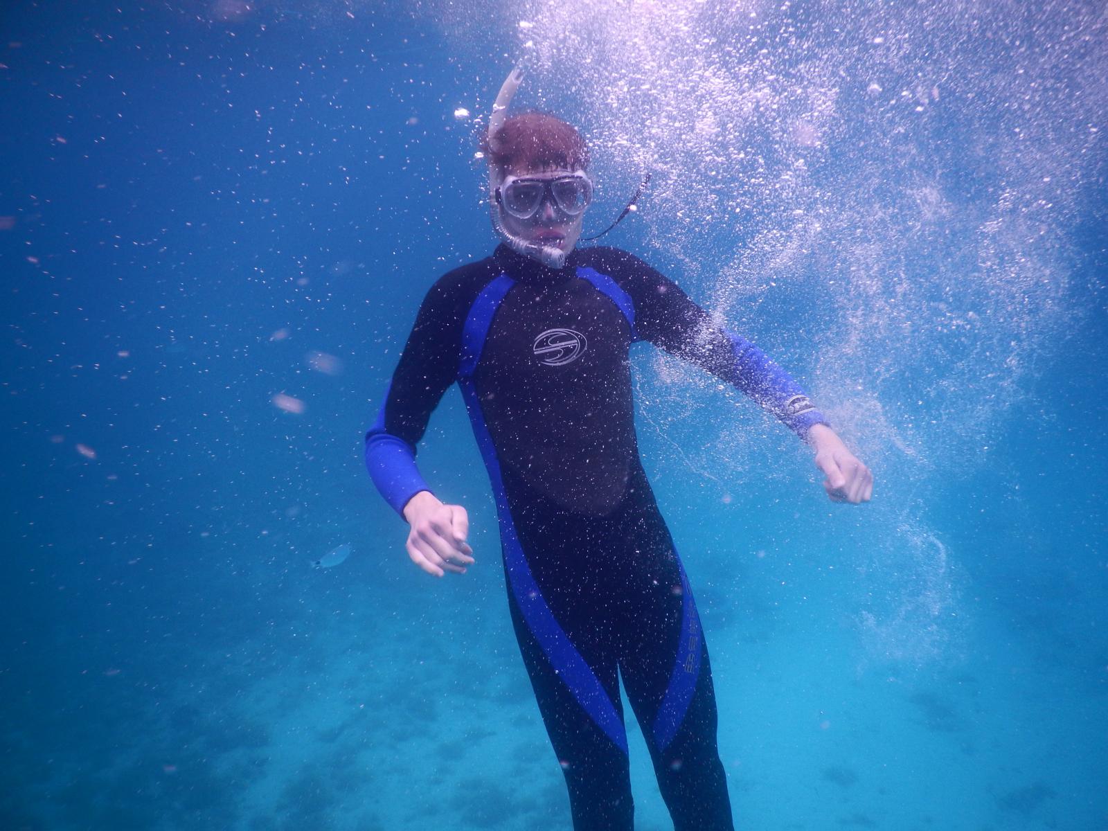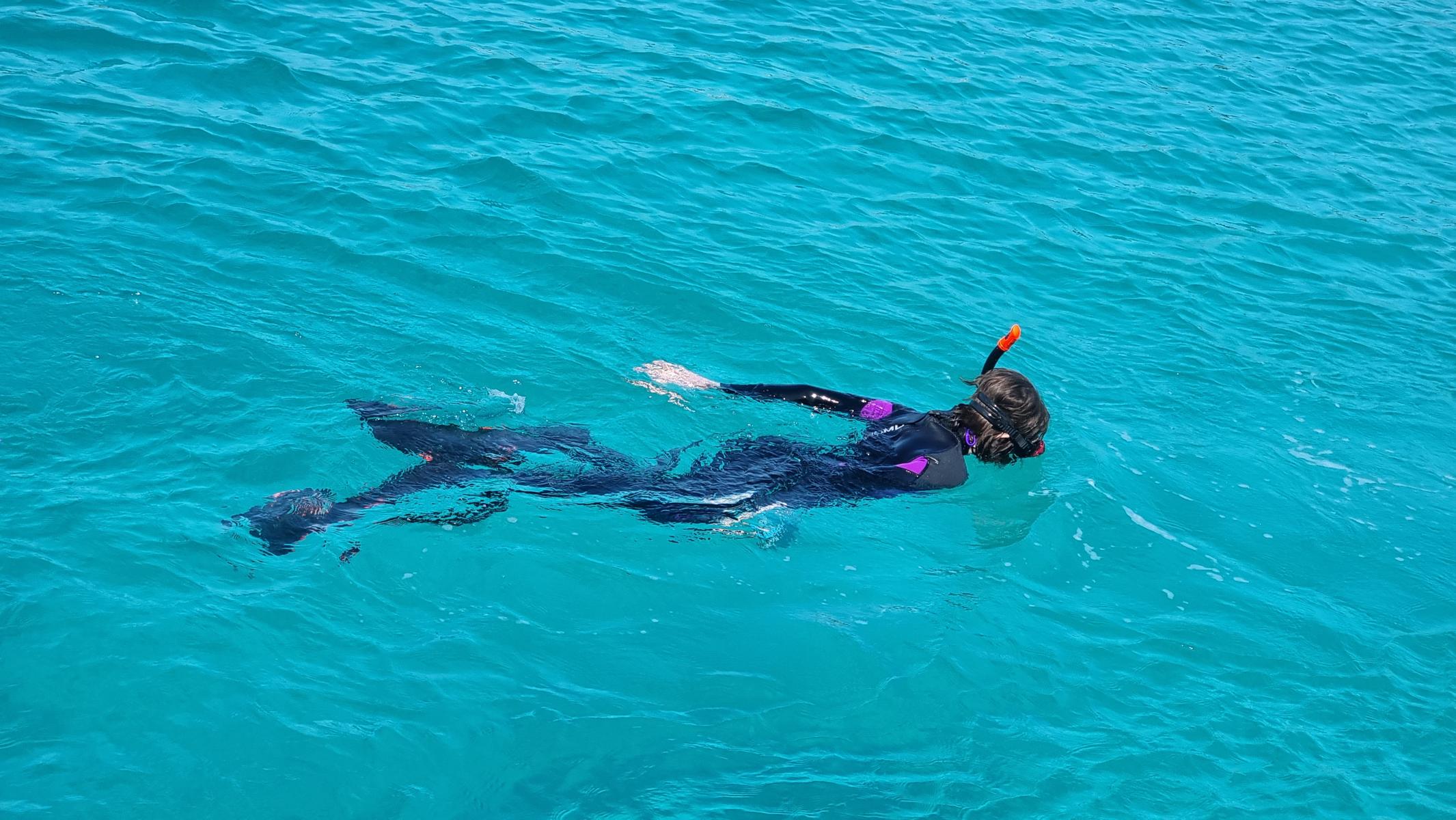 Der erste Kurstag startete vormittags mit einer Probensammlung an der Küste. Die Fundstücke wurden am Nachmittag mit Hilfe von Christian und Margit, den beiden Biolog:innen der Station, bestimmt. Darunter befanden sich Krebse, Garnelen, Schnecken und weitere marine Lebewesen. Mit dem Nachmittag bot sich für die vom Schnorcheln Begeisterten erstmals die Chance, ins Wasser zu tauchen. Obwohl die Temperatur des Wassers im Meer etwas frisch war, ließen wir uns dank Neoprenanzügen nicht abschrecken; einige trauten sich auch ohne diese ins kalte Wasser.