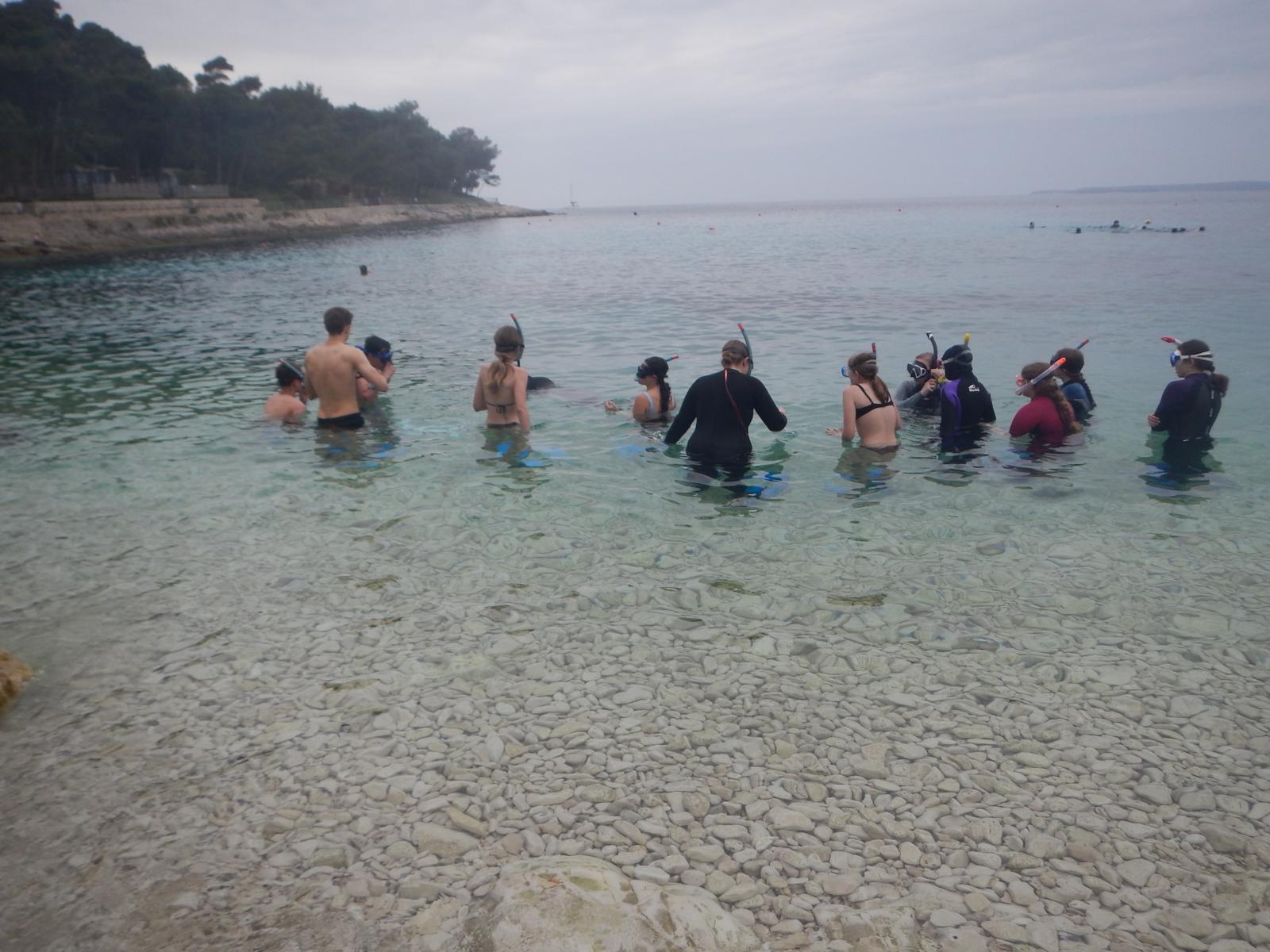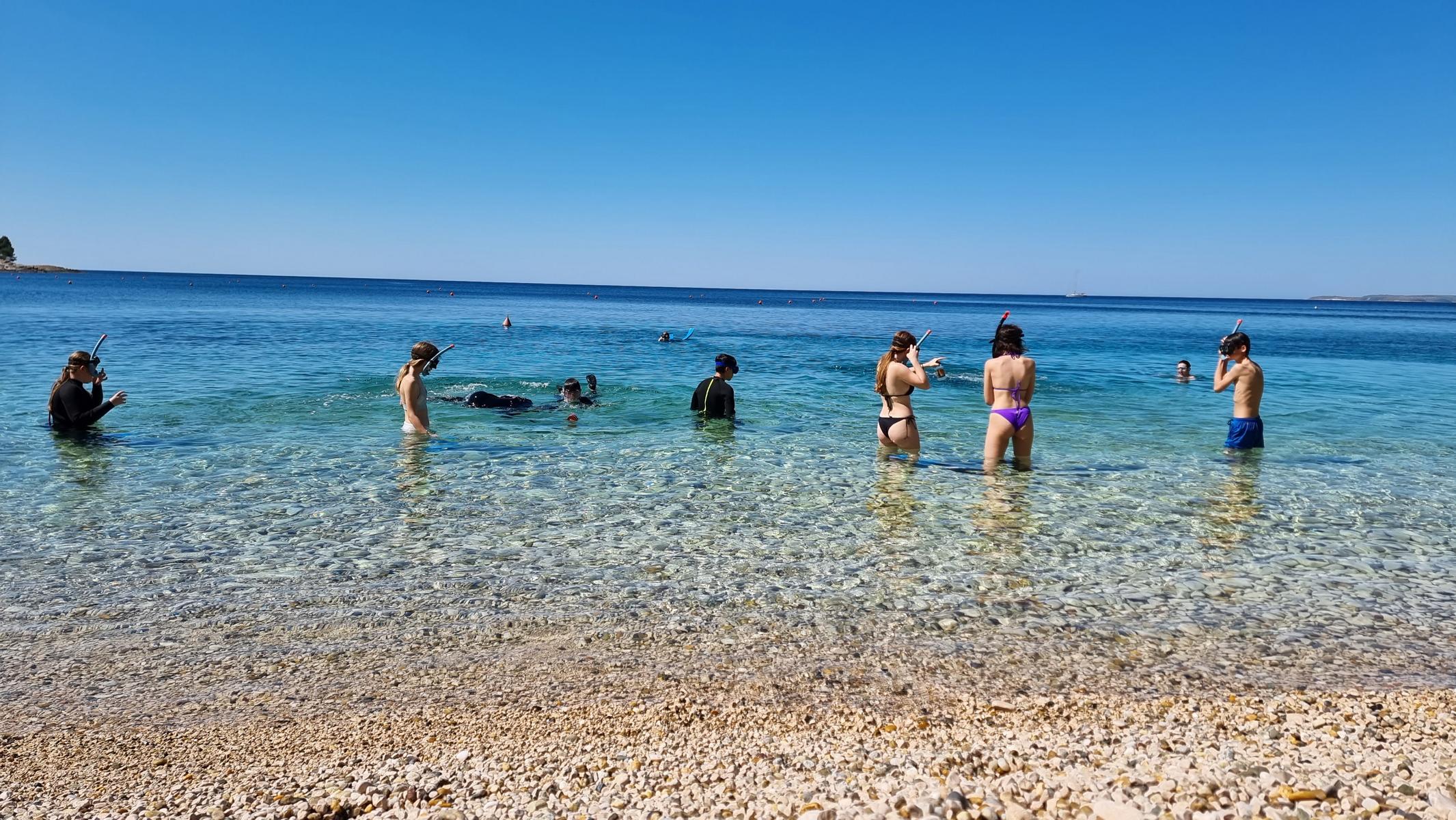 Der zweite Kurstag wurde mit Schnorcheln in der Nachbarsbucht gestartet, dort schauten wir uns sessilen Lebenswesen an, welche sich nicht beziehungsweise kaum bewegen können und am Boden oder an Gesteinen leben. Nachmittags gingen wir wieder Schnorcheln, dieses Mal an einer Seegraswiese. Anschließend ging es zurück zur Biostation, wo die Organismen der Seegraswiese mikroskopiert, bestimmt und gezeichnet wurden. Am Abend ging es für die gesamte Reisegruppe in die Stadt Malí Losinj, diese durften wir eigenständig in kleinen Gruppen erkunden.