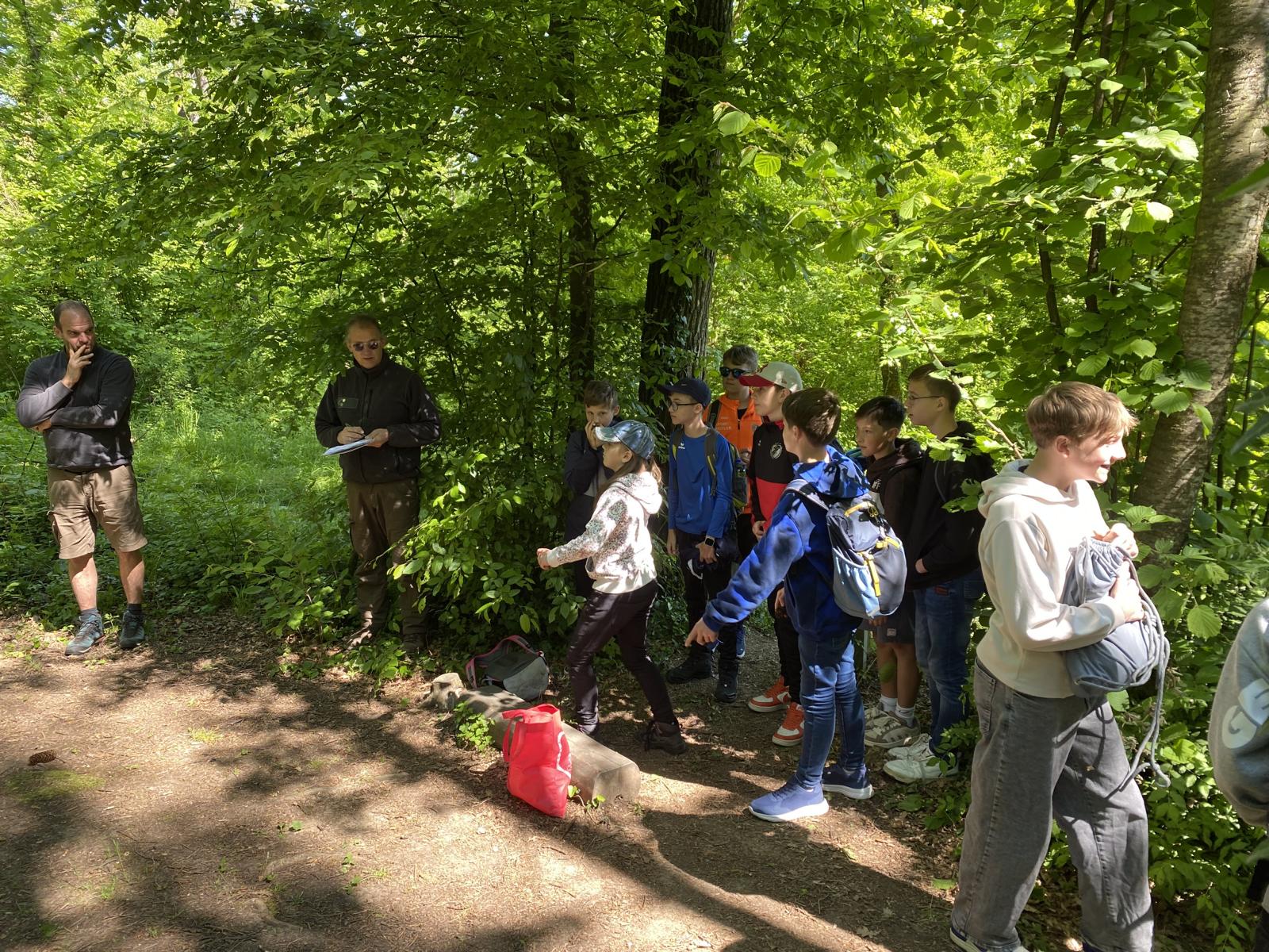 Im dortigen Stadtwald konnten die 2a, 2b, 2c und 2d-Klasse entlang des Hubertuswegs bei den von der Bezirksforstinspektion bestens vorbereiteten und betreuten 6 Stationen des Forstparcours ihre Geschicklichkeit und ihr Wissen über den Wald mit seinen Lebewesen unter Beweis stellen, und hatten an diesem Vormittag viel Spaß in ihrer Klassengemeinschaft.