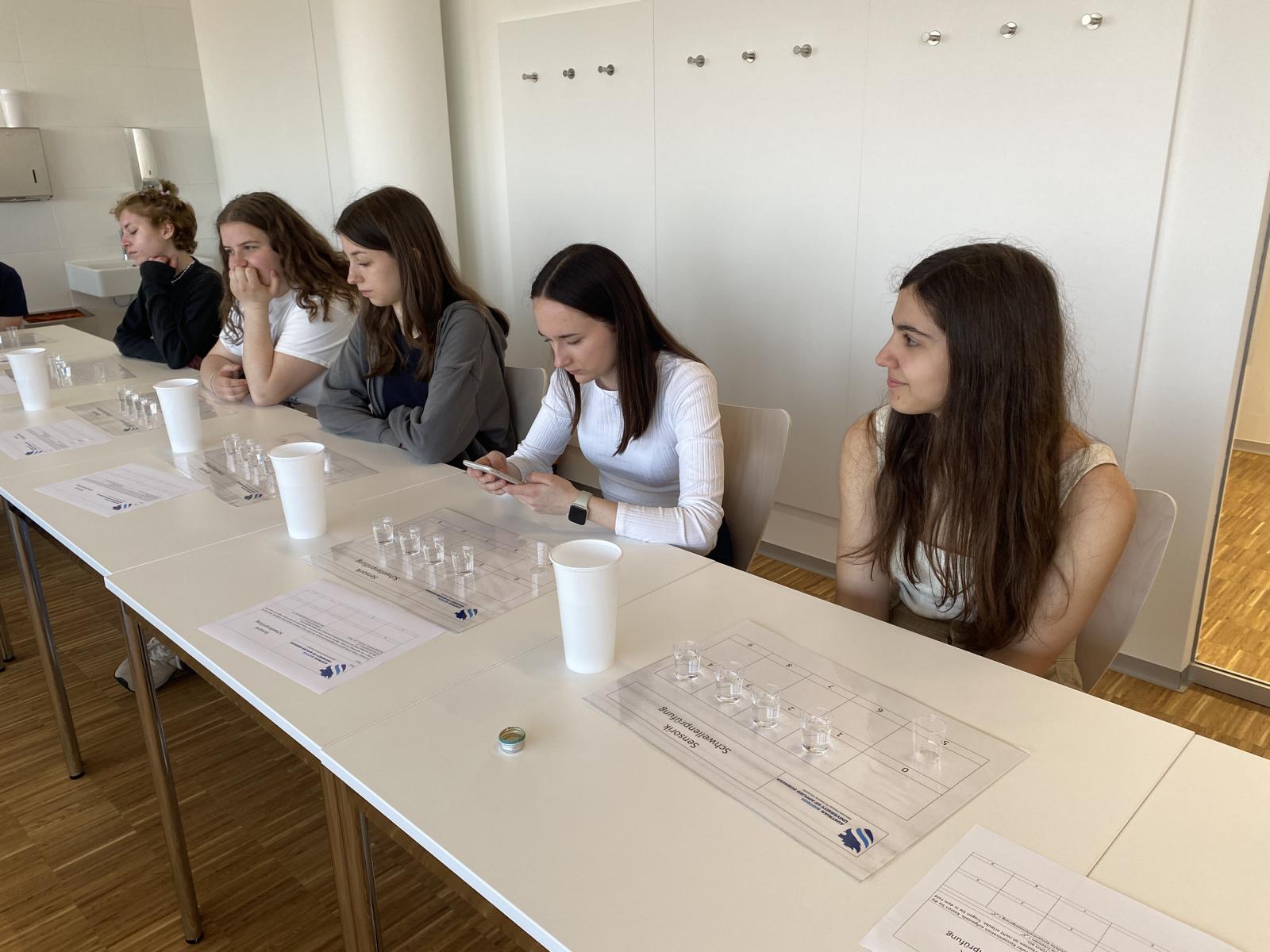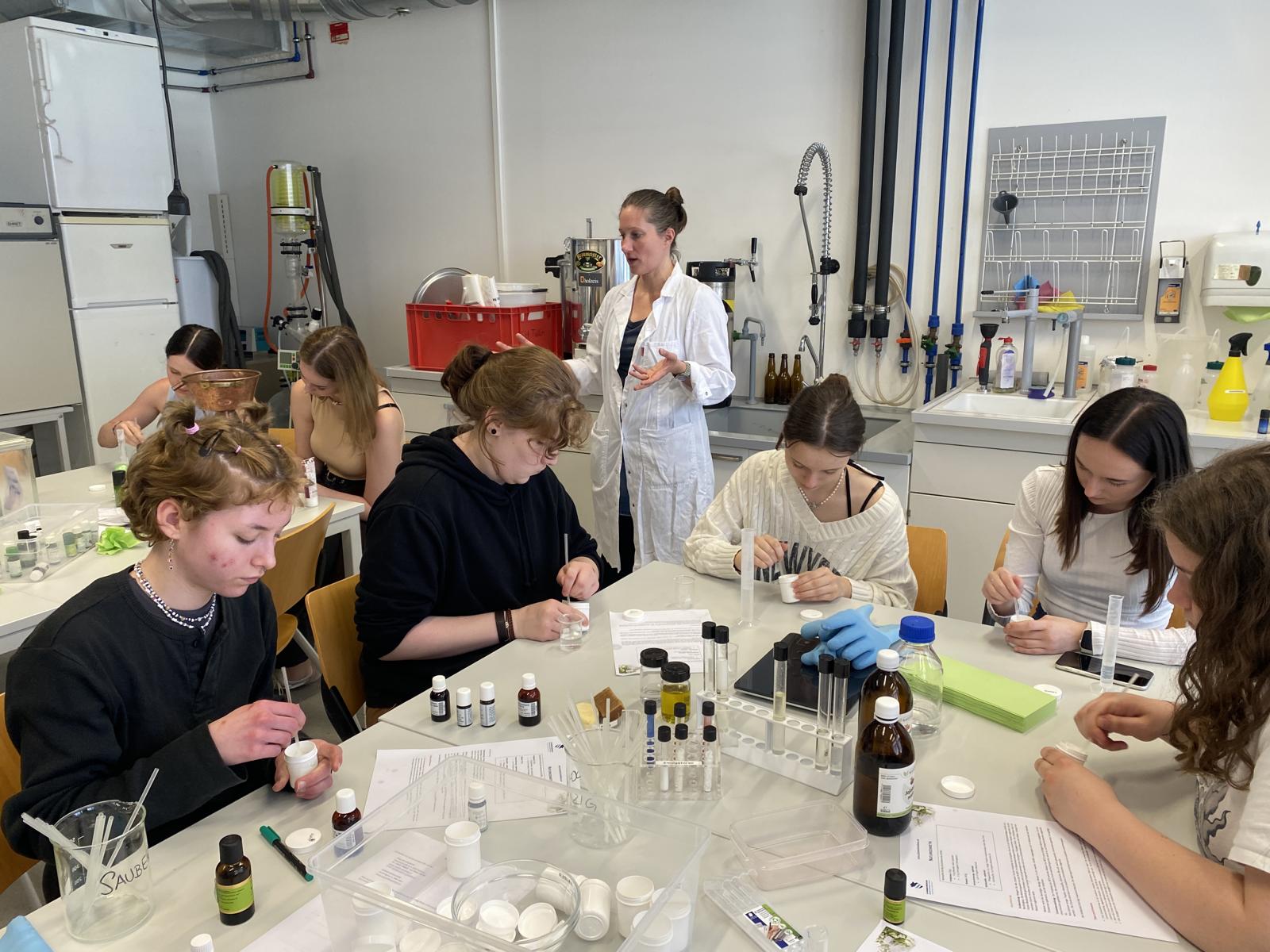 Am 22. Mai 2023 besuchten die 7. Klassen des Gymnasiums Horn im Rahmen der naturwissenschaftlichen Fächer die Fachhochschule Tulln. Dort wurde den Schüler:innen das Studium „Biotechnische Verfahren“ mit Hilfe von verschiedenen Workshops nähergebracht. Bei der ersten Station konnten die Jugendlichen in Bezug auf den Teilbereich „Lebensmittel-Sensorik“ ihren Geschmackssinn auf die Probe stellen. Einen Stock tiefer wurde die Zellfabrik besichtigt. Hierbei handelt es sich um ein Labor, in dem Mikroorganismen kultiviert werden. Abschließend durften sie in das Wahlfach „Naturkosmetik“ hineinschnuppern und eine eigene Hautcreme herstellen. Im Zuge dessen beschäftigten sich die Schüler:innen mit verschiedenen Herstellungsverfahren und Kriterien der Naturkosmetik. Abschließend erfuhren die Jugendlichen in einem Vortrag einiges Wissenswerte über den Studiengang und die Fachhochschule selbst.