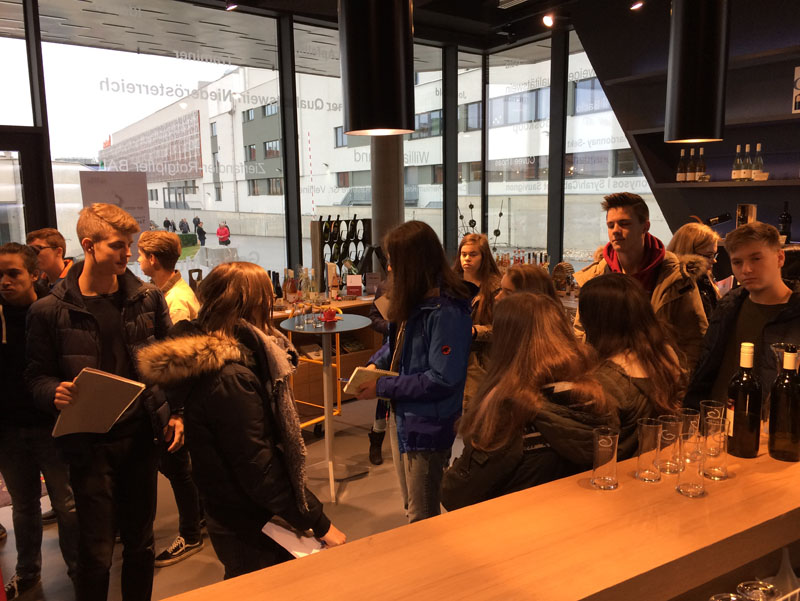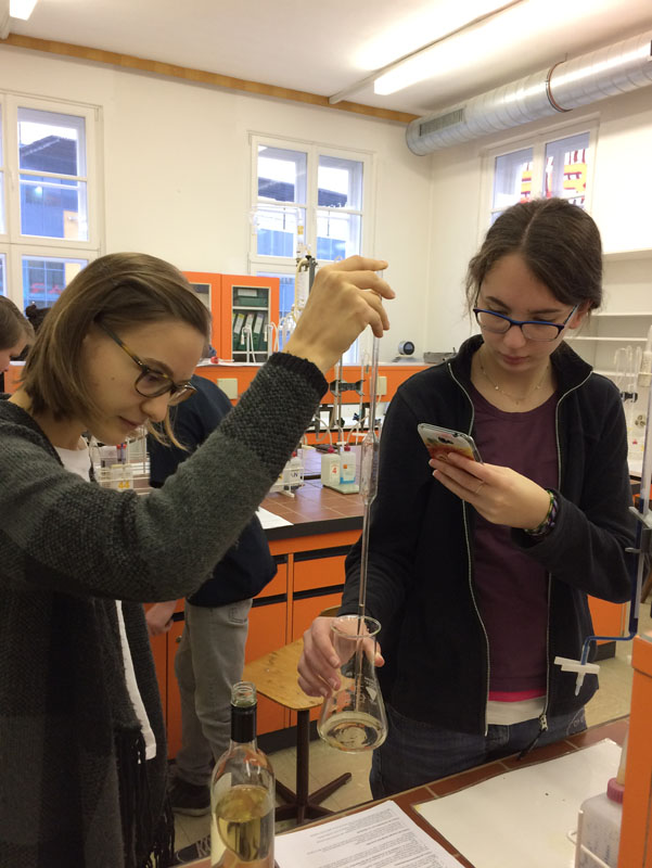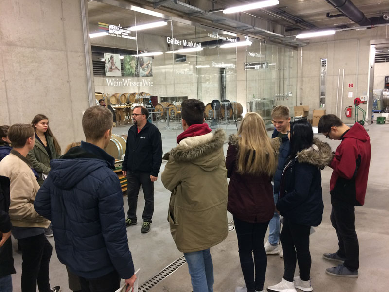 Im Rahmen des NAWI-Unterrichts besuchten die SchülerInnen unter Begleitung von Mag. Manuela Gabler und Mag. Eva Leister die Weinbauschule in Krems. Zuerst erfuhren die SchülerInnen die wichtigsten Schritte der Kellerarbeit. Danach wurden in 2 Gruppen die Inhaltsstoffe des Weins chemisch und sensorisch analysiert. Die nachfolgenden Fotos geben einen Eindruck der gemachten Erfahrungen. (6. – 7. 11.2017)