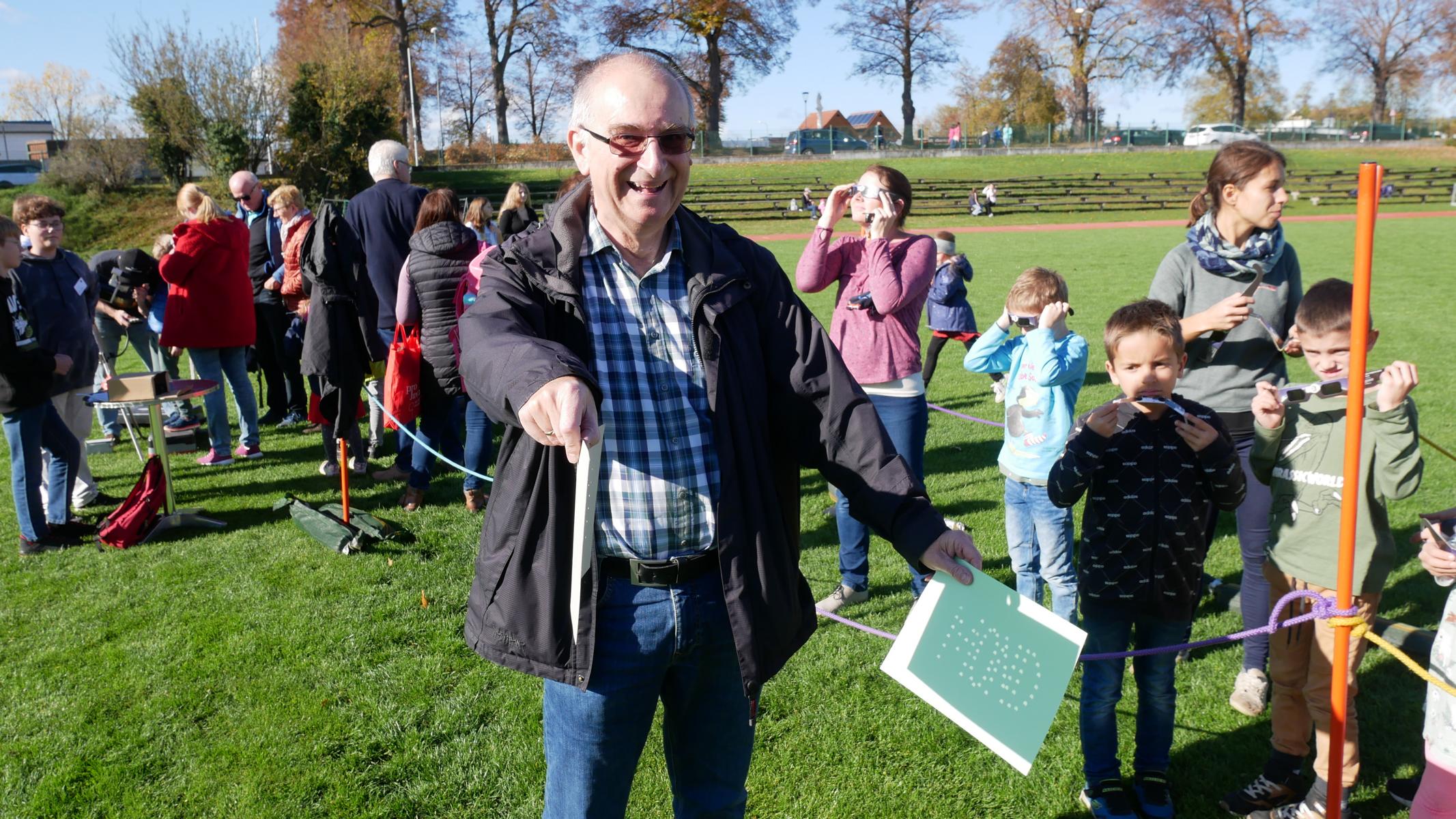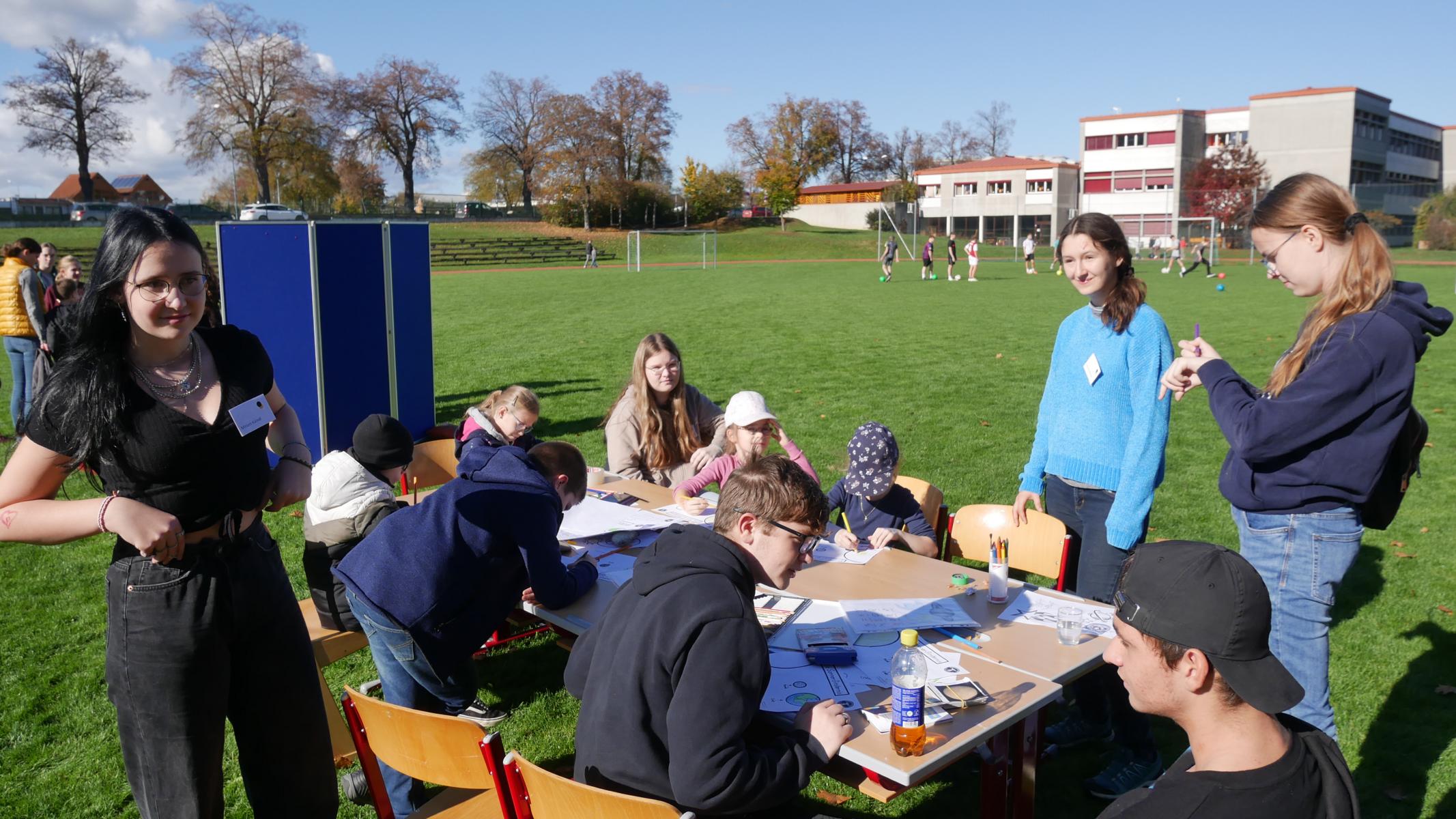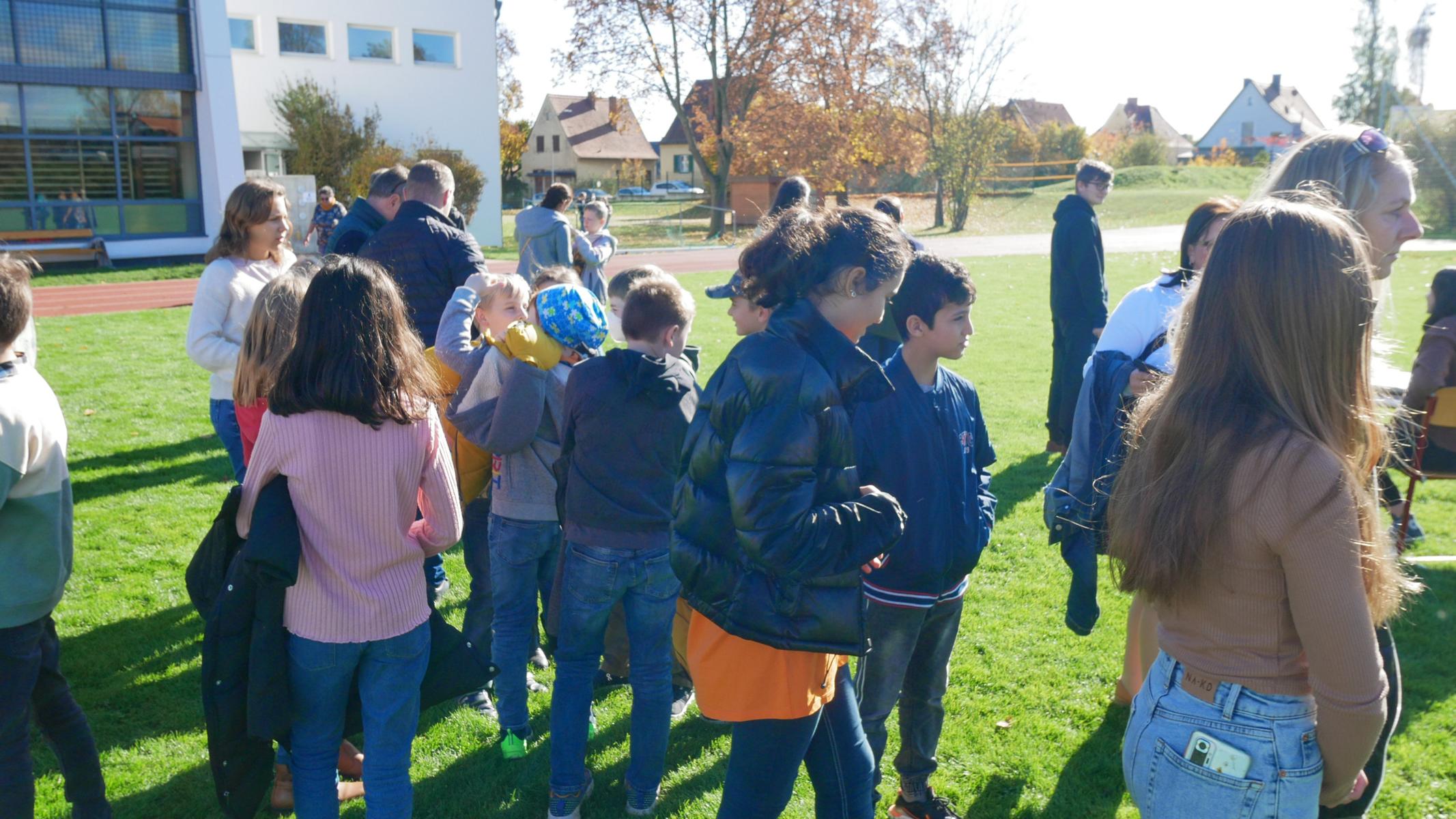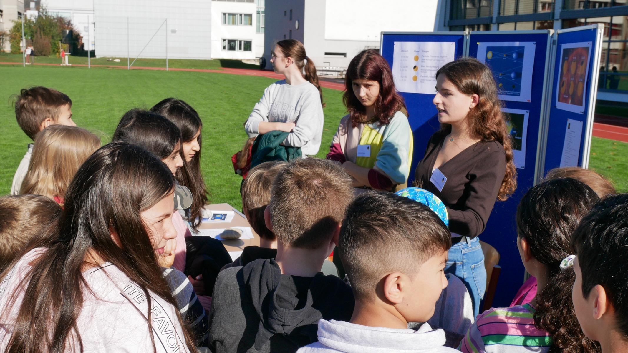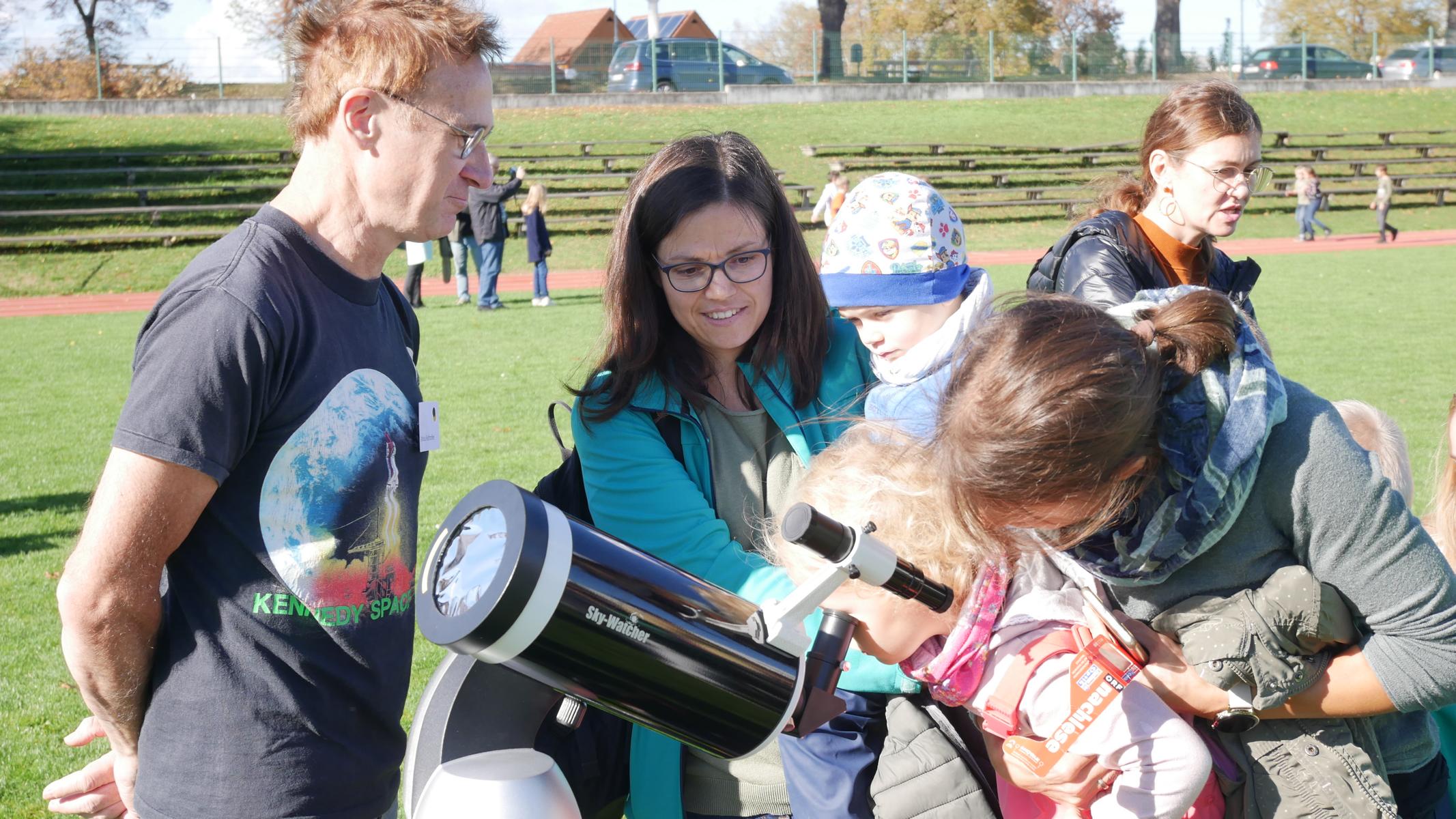 Die Sonnenfinsternisbeobachtung am BG Horn war ein voller Erfolg! 350 interessierte Besucher folgten bei perfektem Beobachtungswetter der Einladung des Gymnasiums, wobei zwei Drittel davon Kinder waren. Obwohl an diesem Tag das Gymnasium schulfrei hatte, meldeten sich 15 Schüler*innen und einige Lehrer*innen freiwillig, die Beobachtung mit Physiklehrerin Manuela Kopper zu organisieren.