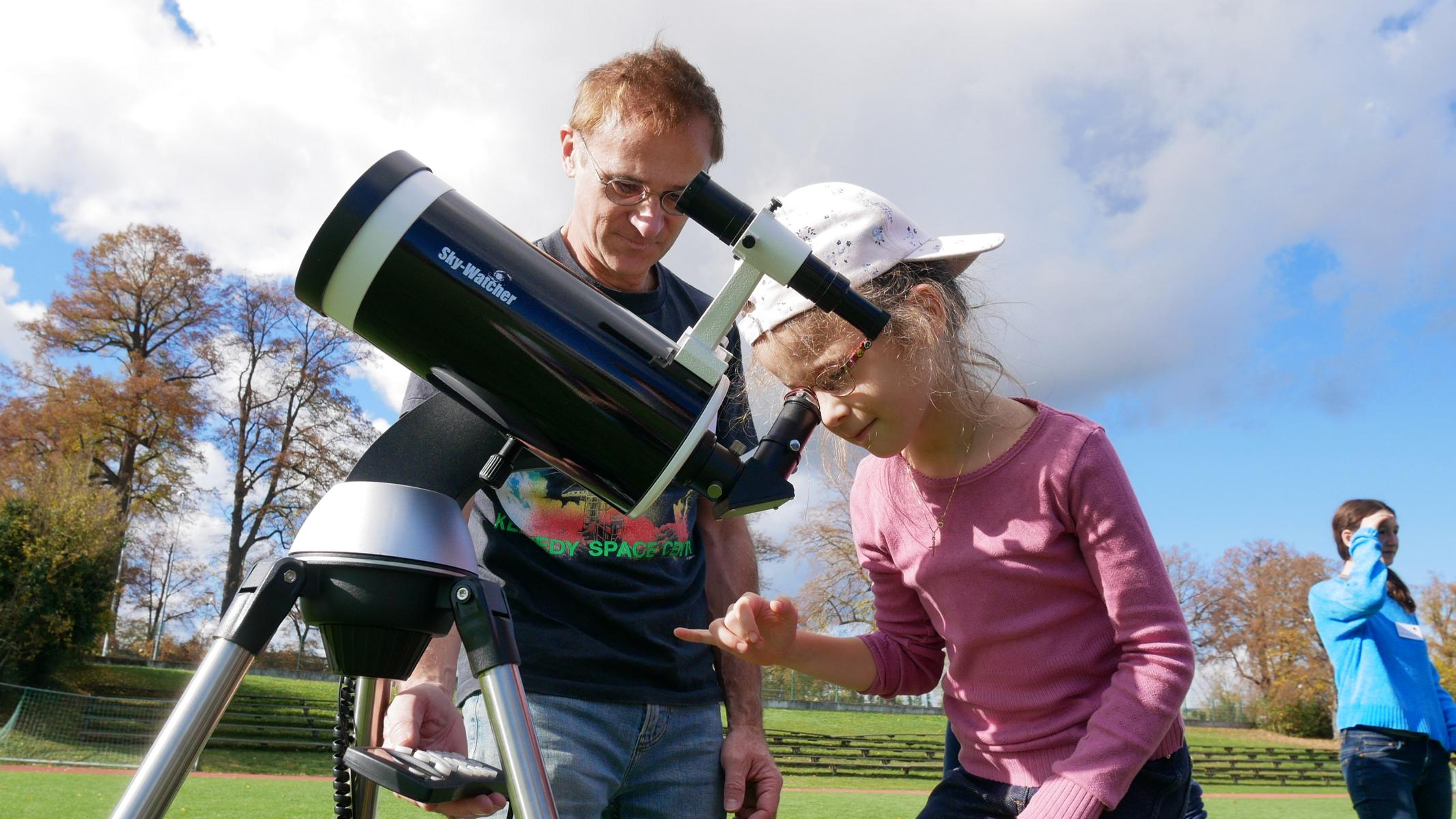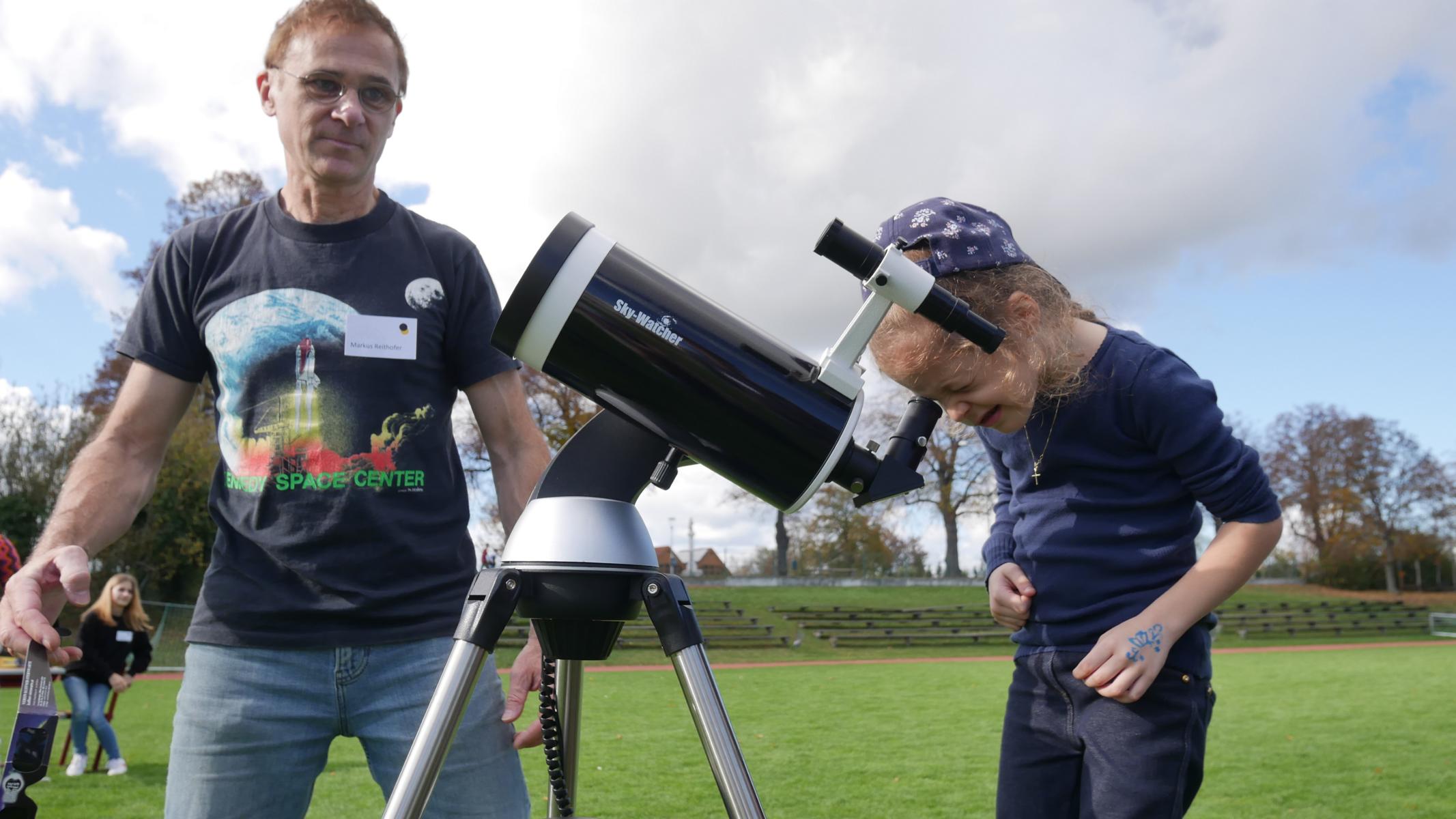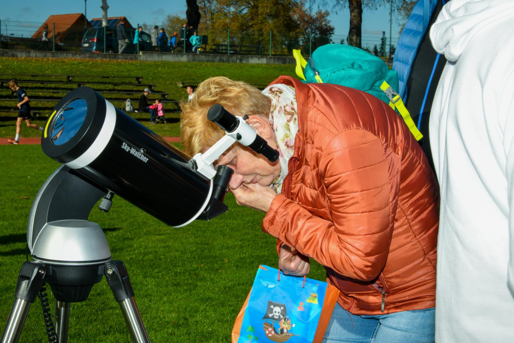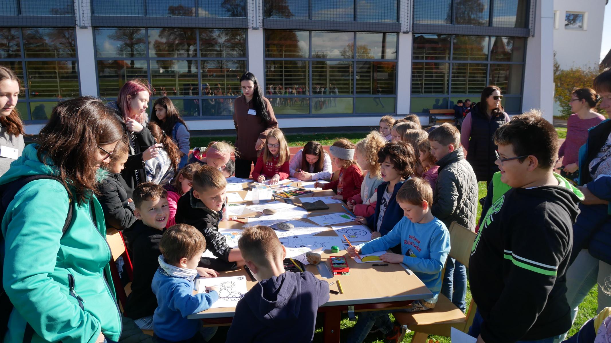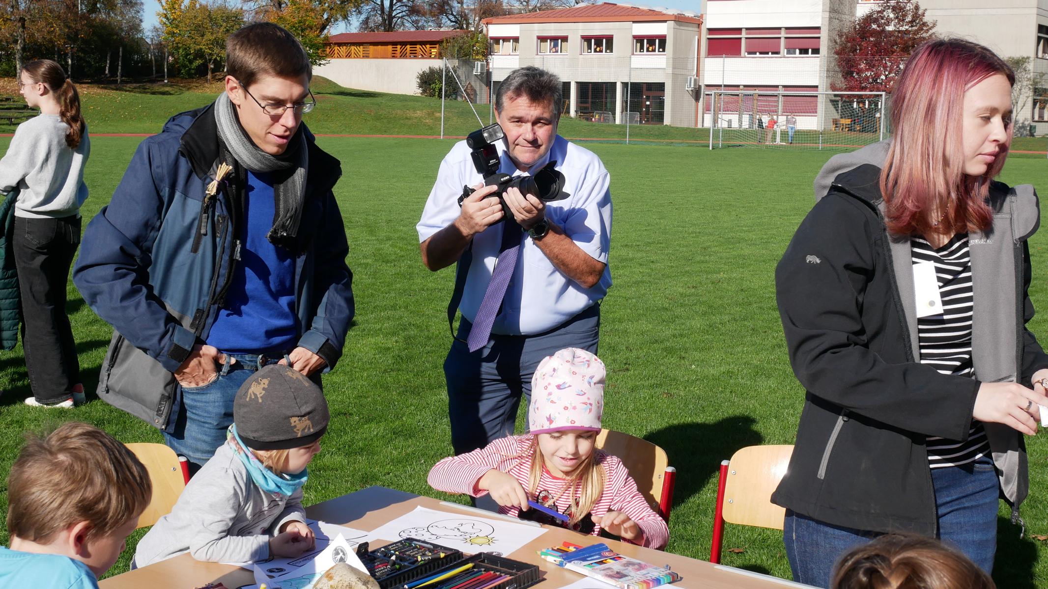 Die Sonnenfinsternisbeobachtung am BG Horn war ein voller Erfolg! 350 interessierte Besucher folgten bei perfektem Beobachtungswetter der Einladung des Gymnasiums, wobei zwei Drittel davon Kinder waren. Obwohl an diesem Tag das Gymnasium schulfrei hatte, meldeten sich 15 Schüler*innen und einige Lehrer*innen freiwillig, die Beobachtung mit Physiklehrerin Manuela Kopper zu organisieren.