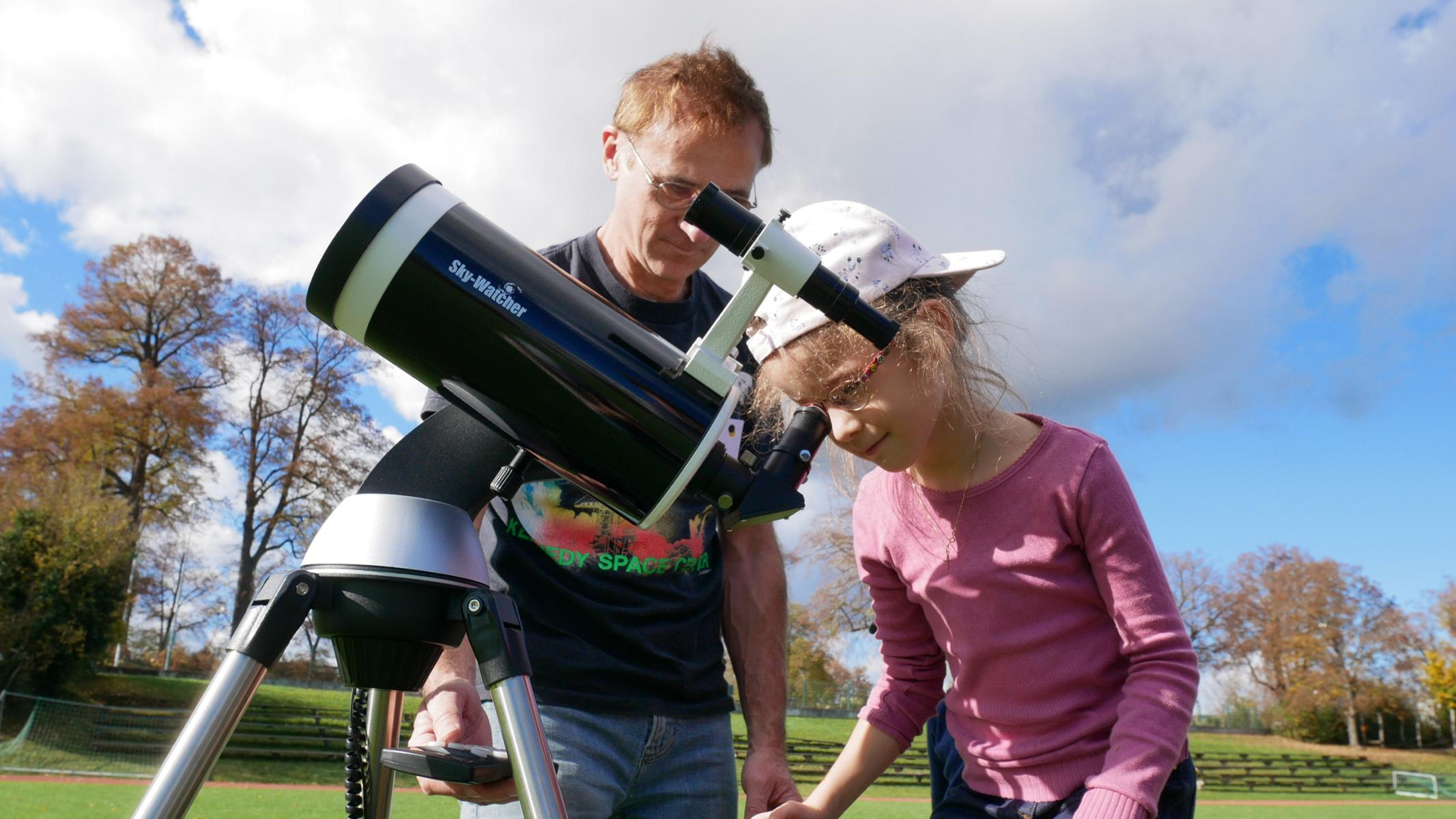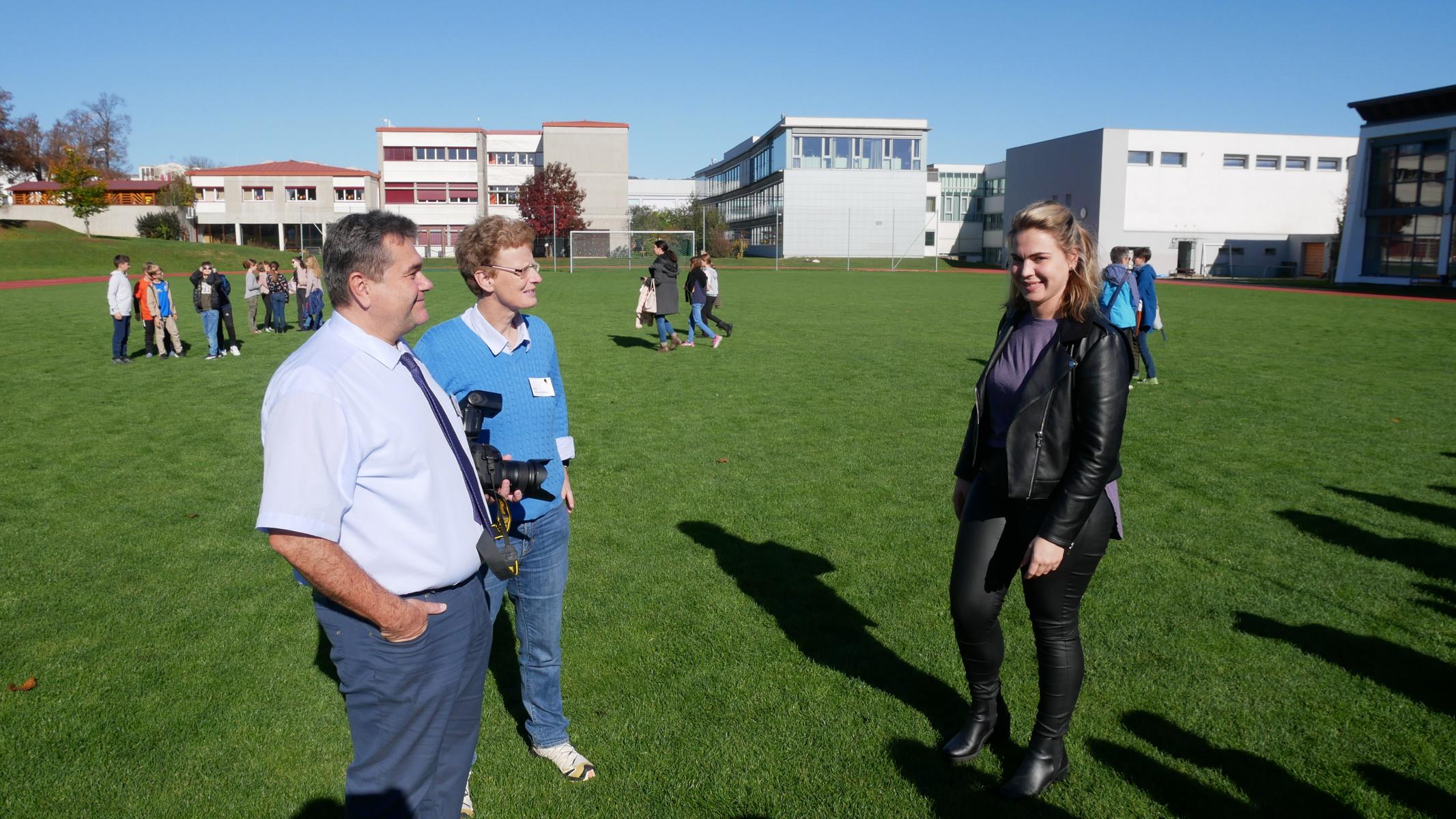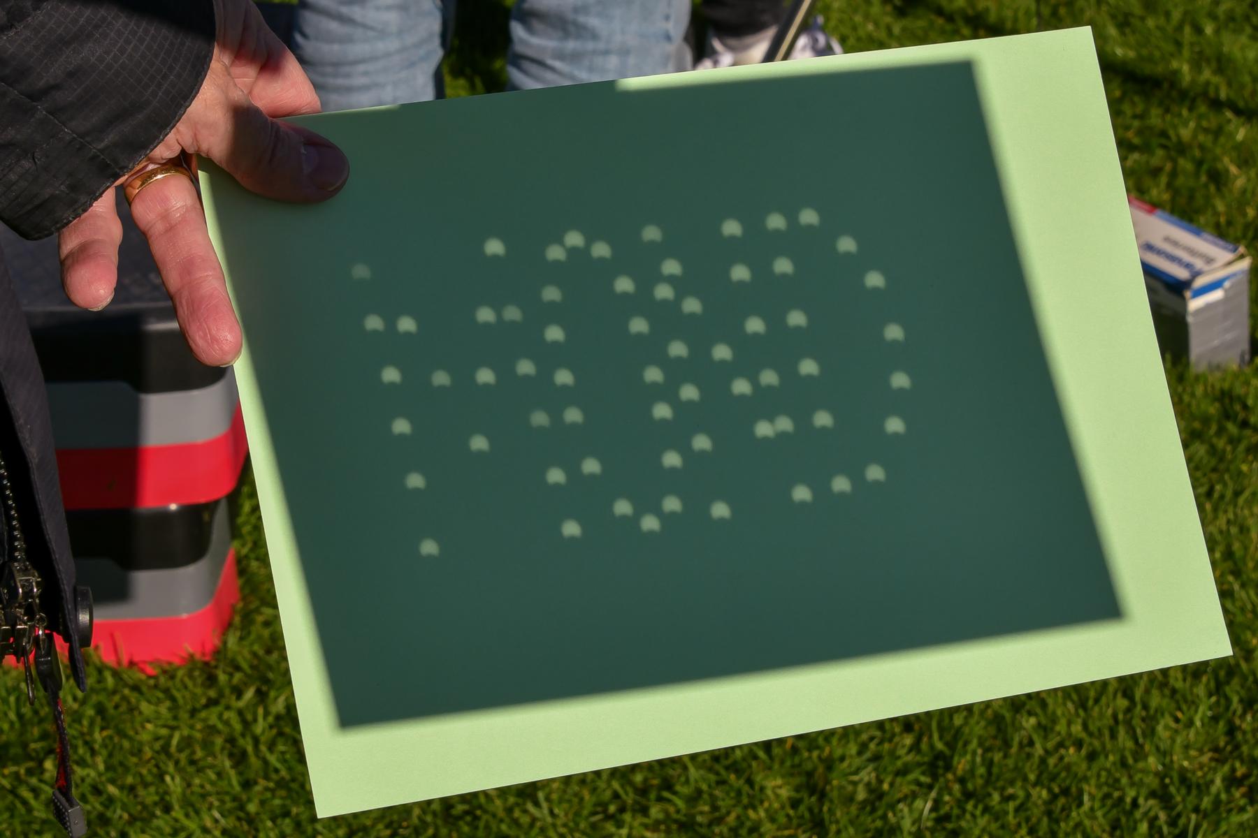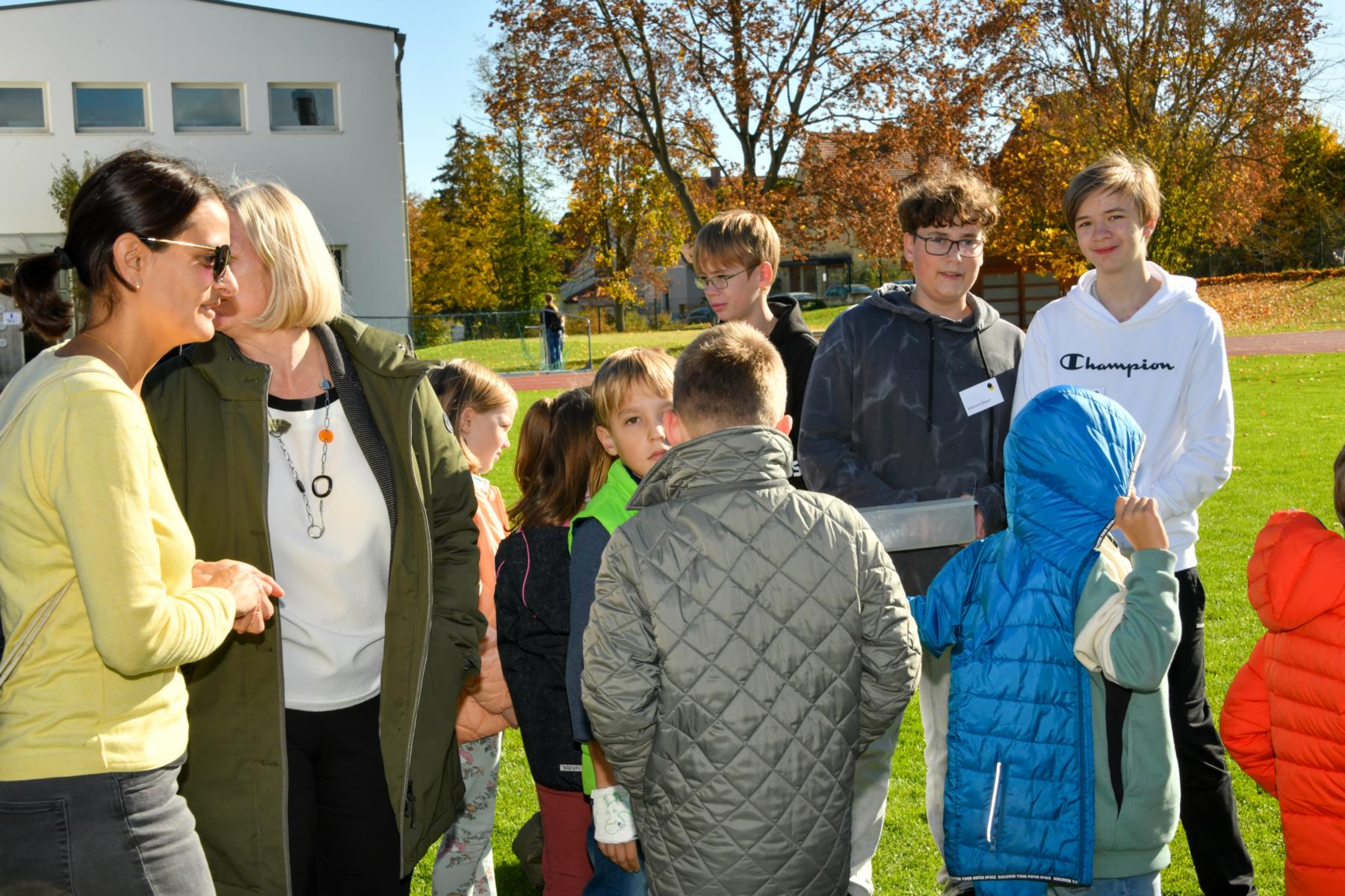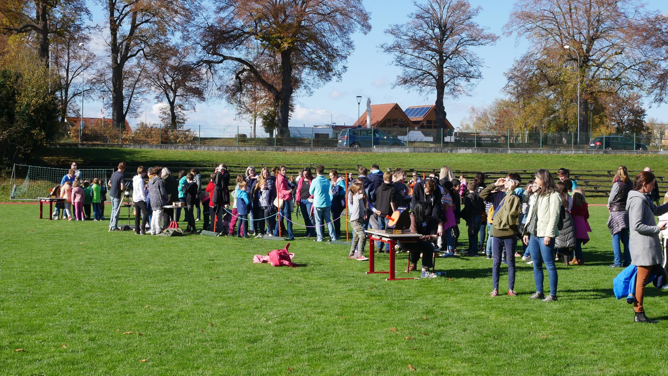 Die Sonnenfinsternisbeobachtung am BG Horn war ein voller Erfolg! 350 interessierte Besucher folgten bei perfektem Beobachtungswetter der Einladung des Gymnasiums, wobei zwei Drittel davon Kinder waren. Obwohl an diesem Tag das Gymnasium schulfrei hatte, meldeten sich 15 Schüler*innen und einige Lehrer*innen freiwillig, die Beobachtung mit Physiklehrerin Manuela Kopper zu organisieren.