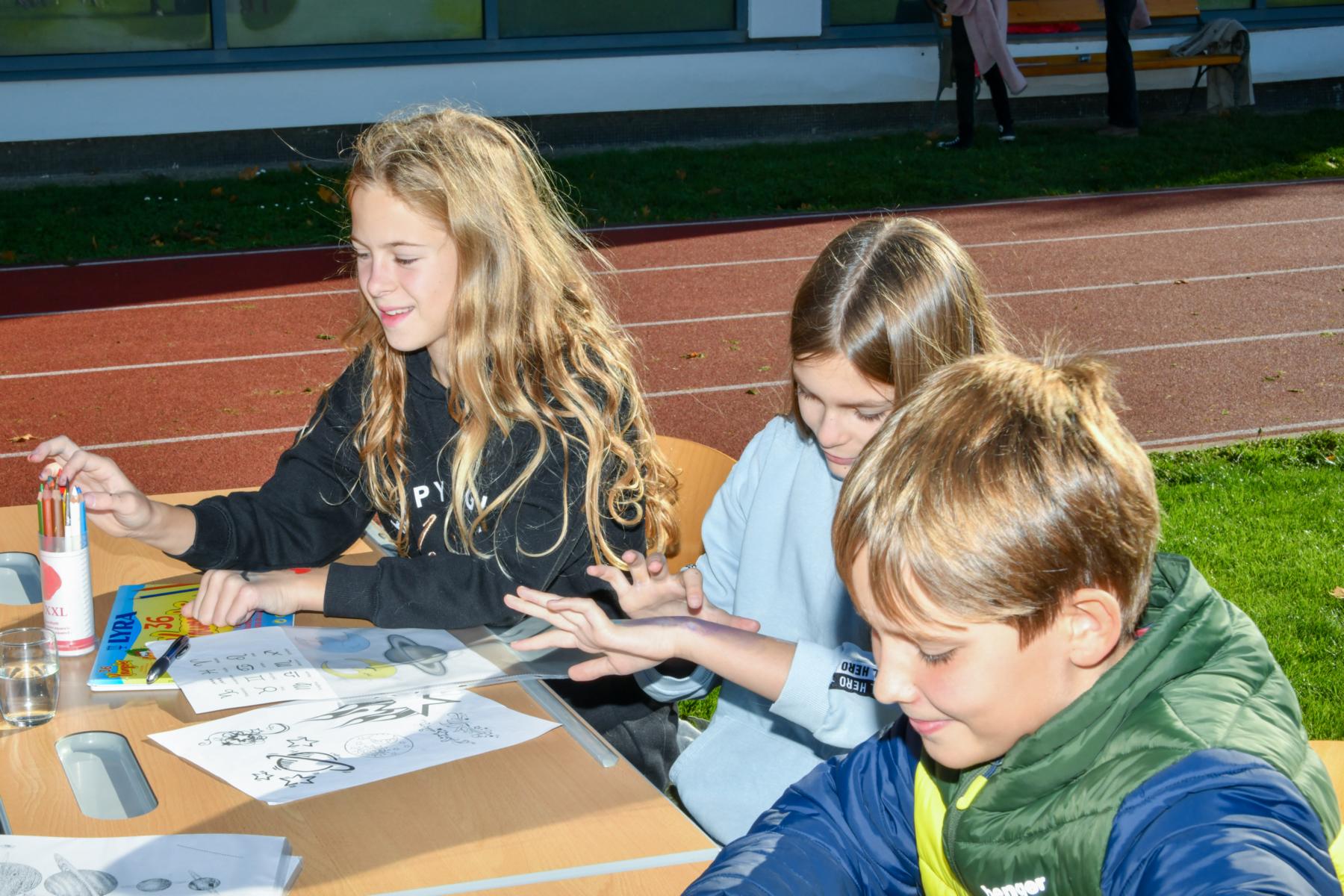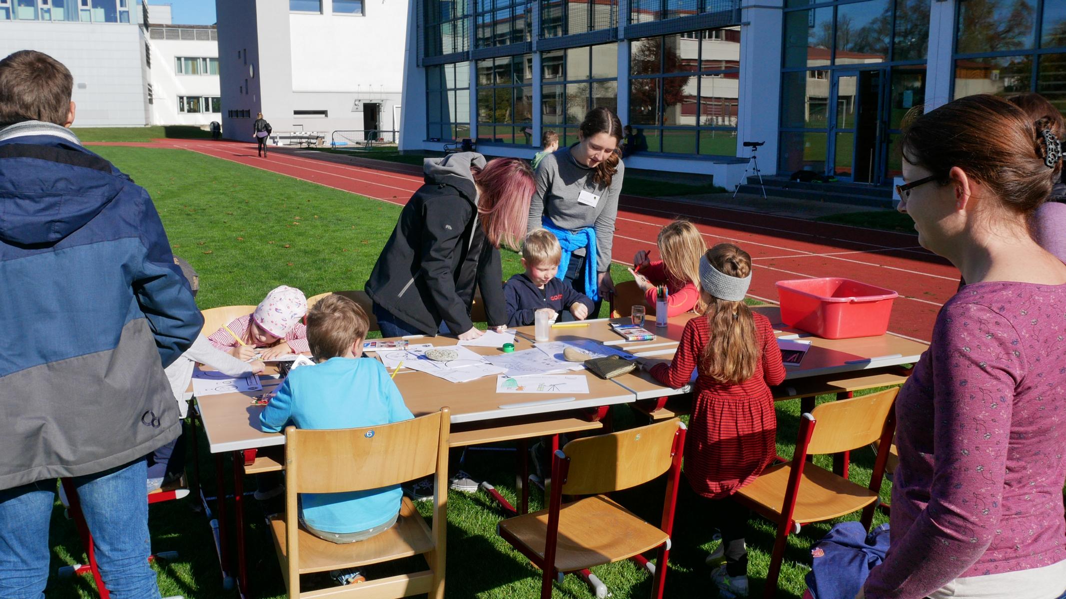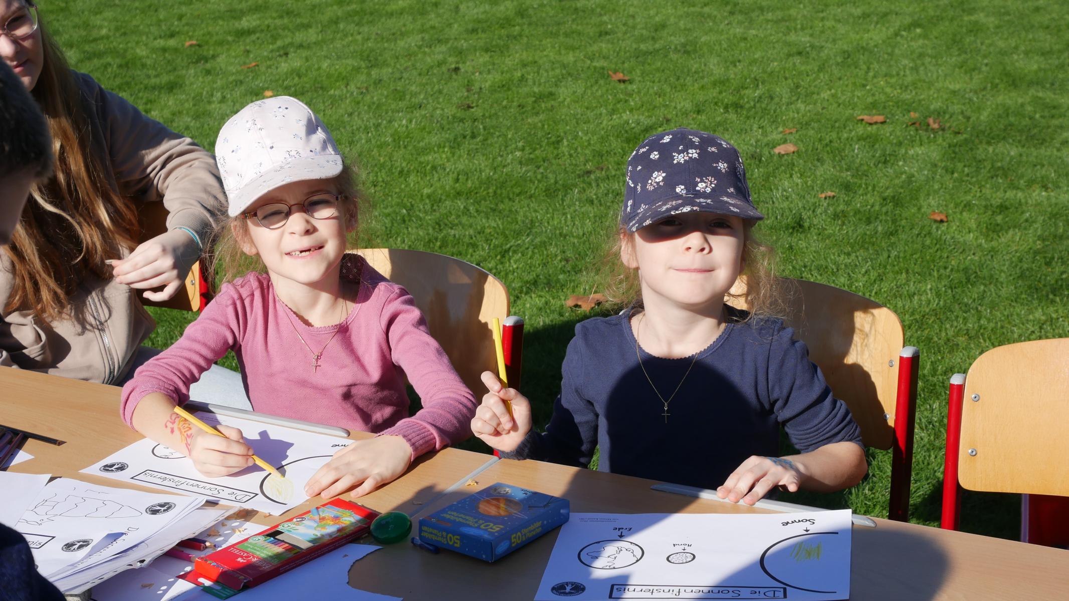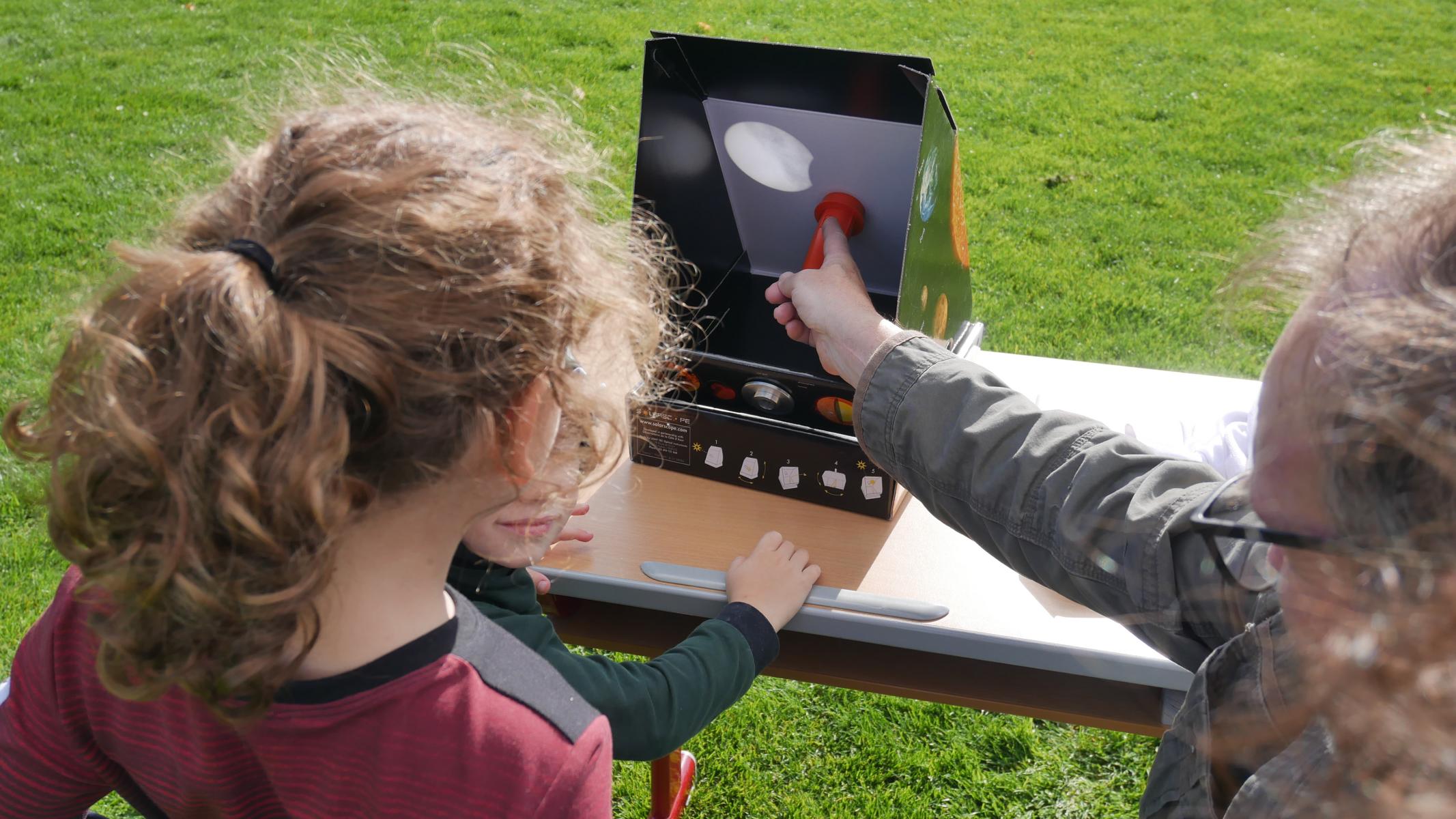 Beobachtet wurde mit dem Schulteleskop des Gymnasiums, zwei Solarscopes und vielen Sonnenfinsternisbrillen, die immer wieder eingesammelt und an die nächsten Besucher ausgeteilt wurden. Außerdem gabs einen „Erklärtisch“, an dem Schülerinnen anhand eines Modells erklärten, wie eine Sonnenfinsternis zustande kommt. Vor allem für die Jüngsten war der Maltisch ein Highlight, bei denen sie geschminkt wurden und von zwei Schülerinnen des BG Horn entworfene Ausmalbilder bemalen durften.