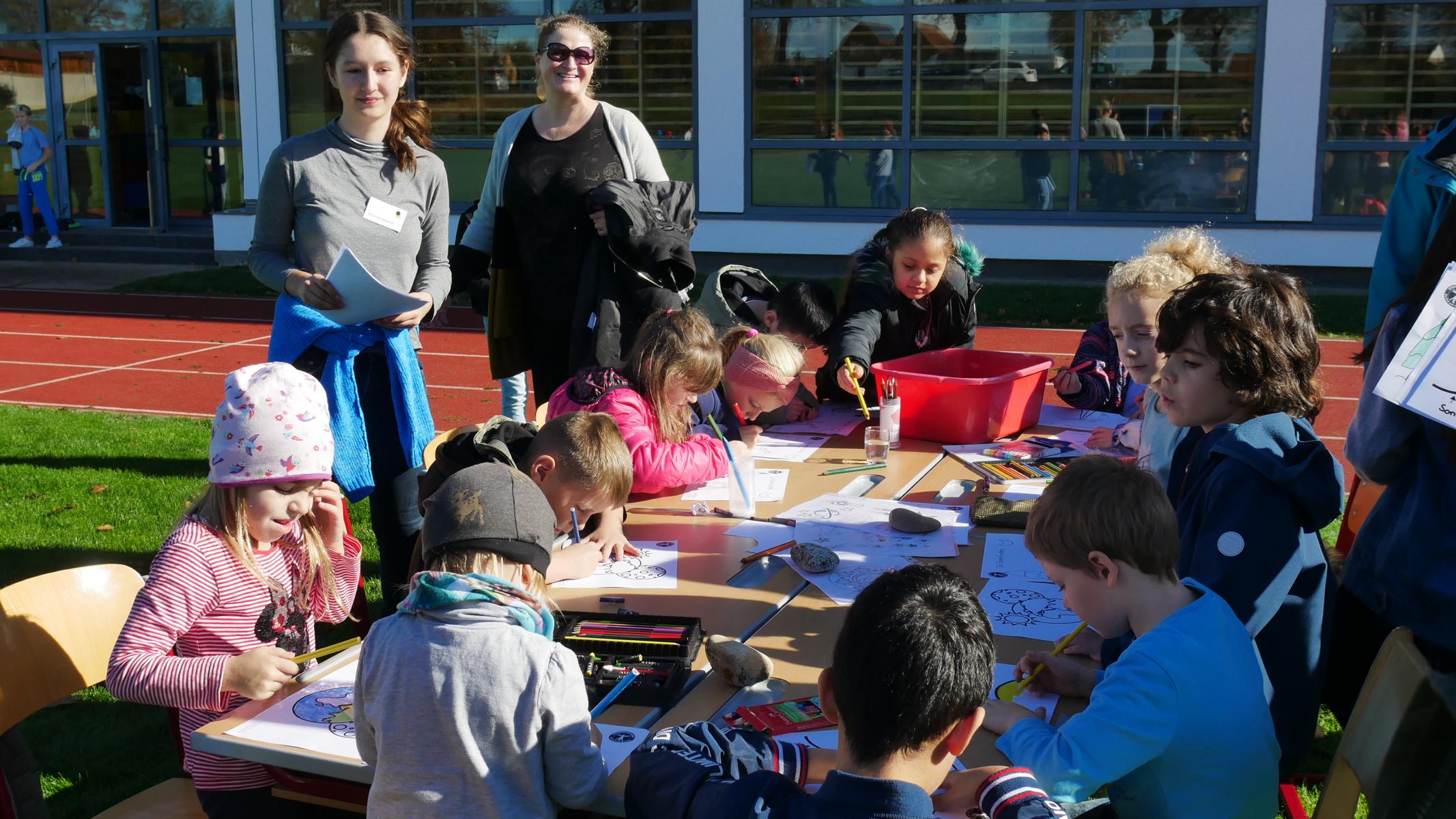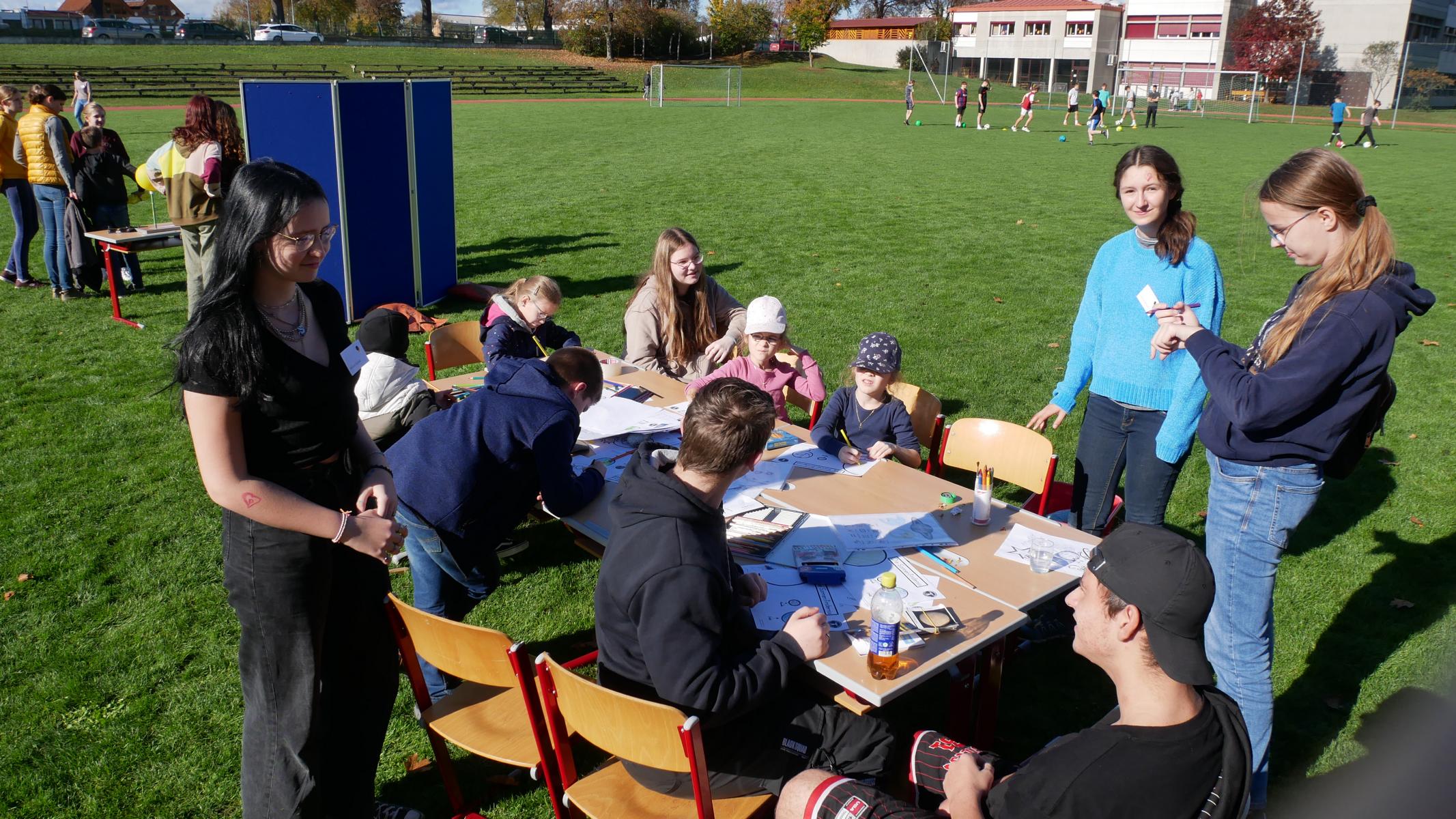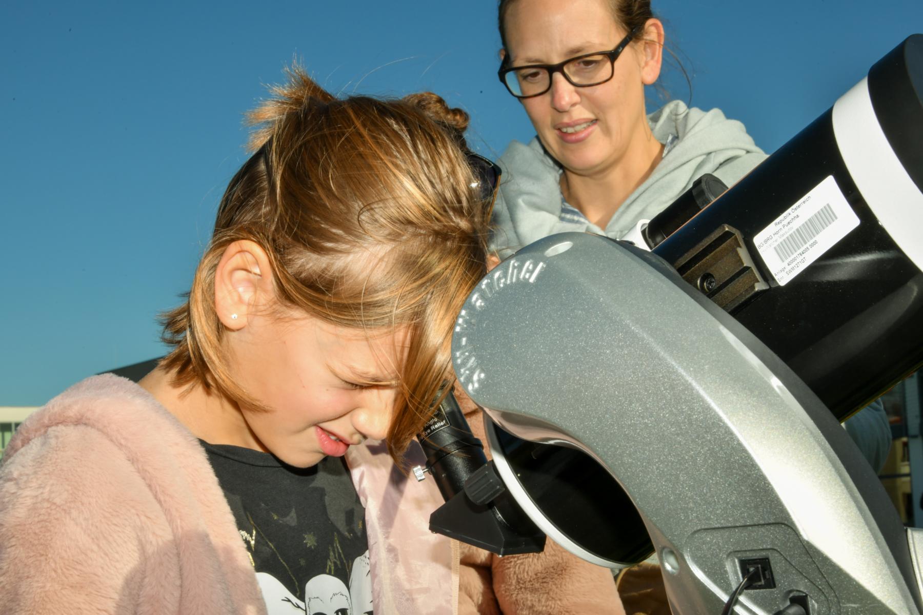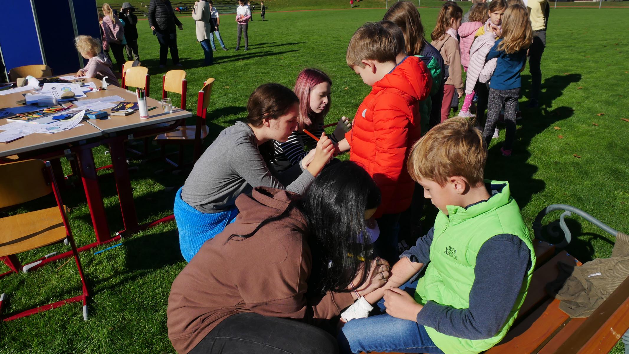 Beobachtet wurde mit dem Schulteleskop des Gymnasiums, zwei Solarscopes und vielen Sonnenfinsternisbrillen, die immer wieder eingesammelt und an die nächsten Besucher ausgeteilt wurden. Außerdem gabs einen „Erklärtisch“, an dem Schülerinnen anhand eines Modells erklärten, wie eine Sonnenfinsternis zustande kommt. Vor allem für die Jüngsten war der Maltisch ein Highlight, bei denen sie geschminkt wurden und von zwei Schülerinnen des BG Horn entworfene Ausmalbilder bemalen durften.