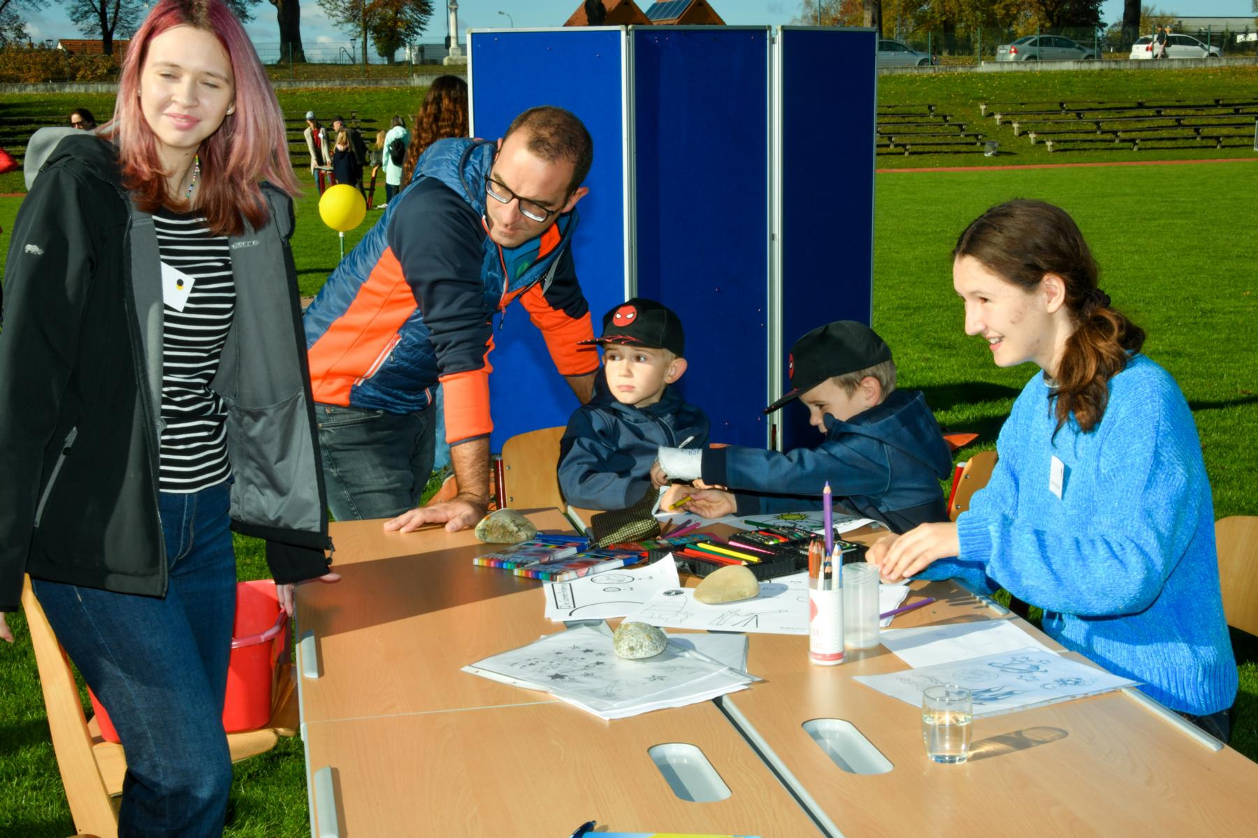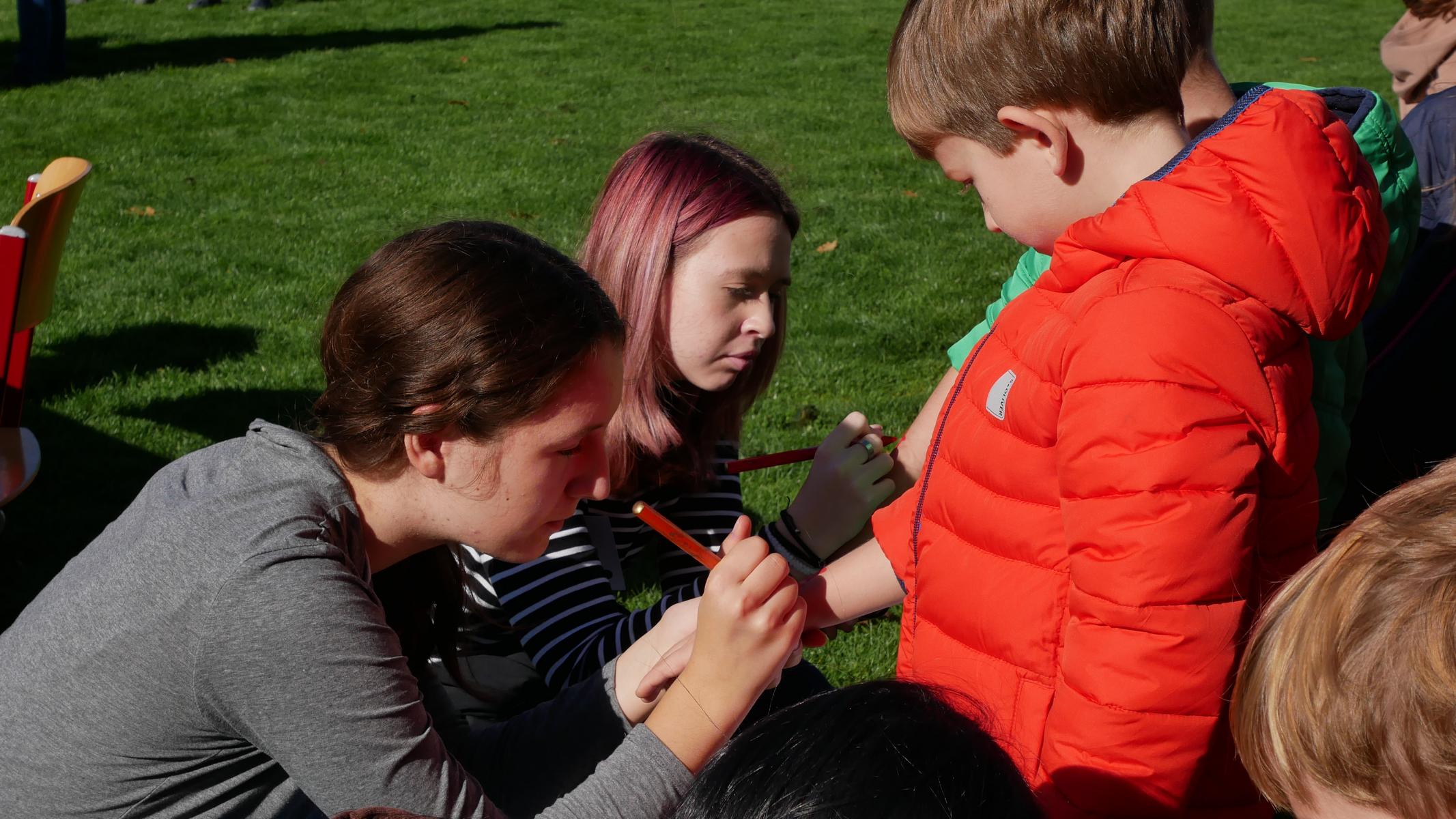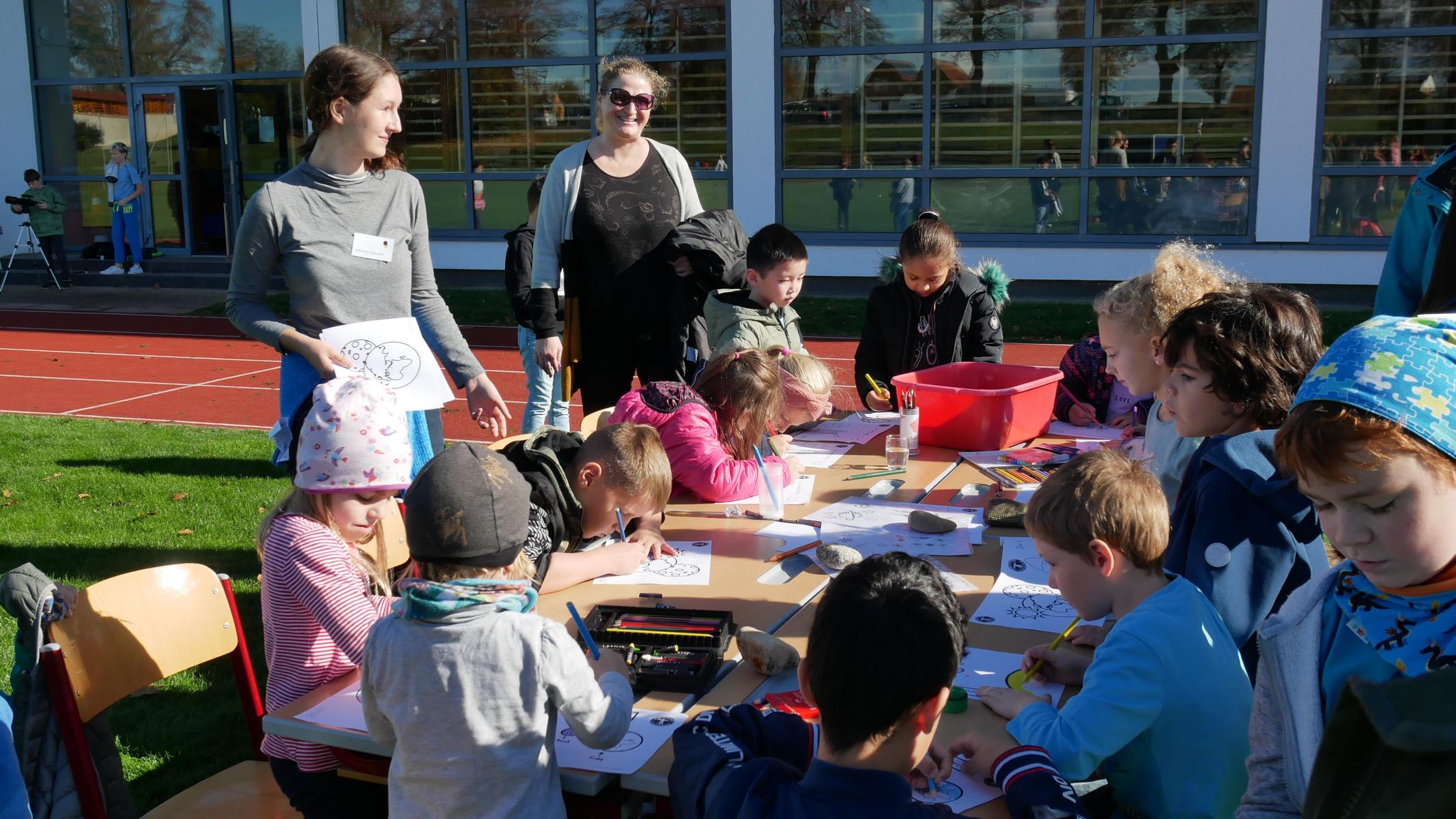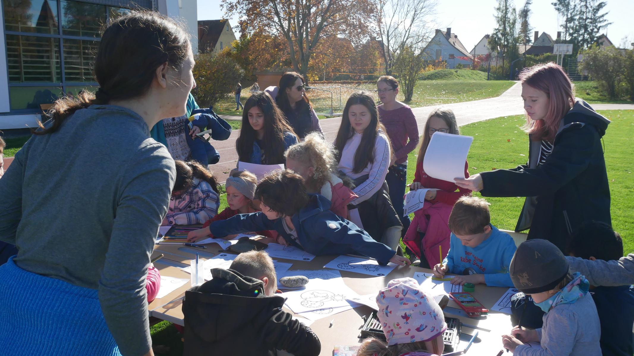 Beobachtet wurde mit dem Schulteleskop des Gymnasiums, zwei Solarscopes und vielen Sonnenfinsternisbrillen, die immer wieder eingesammelt und an die nächsten Besucher ausgeteilt wurden. Außerdem gabs einen „Erklärtisch“, an dem Schülerinnen anhand eines Modells erklärten, wie eine Sonnenfinsternis zustande kommt. Vor allem für die Jüngsten war der Maltisch ein Highlight, bei denen sie geschminkt wurden und von zwei Schülerinnen des BG Horn entworfene Ausmalbilder bemalen durften.