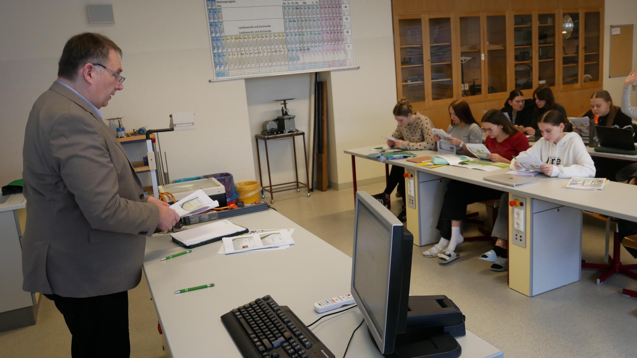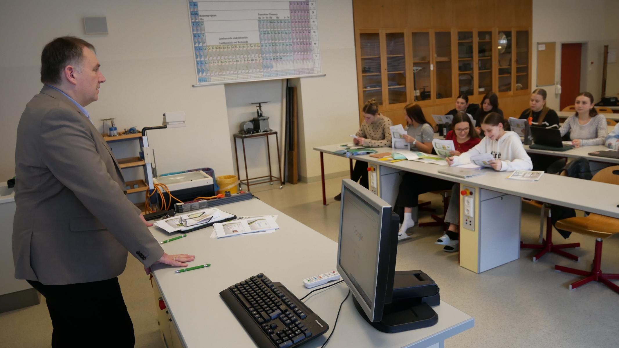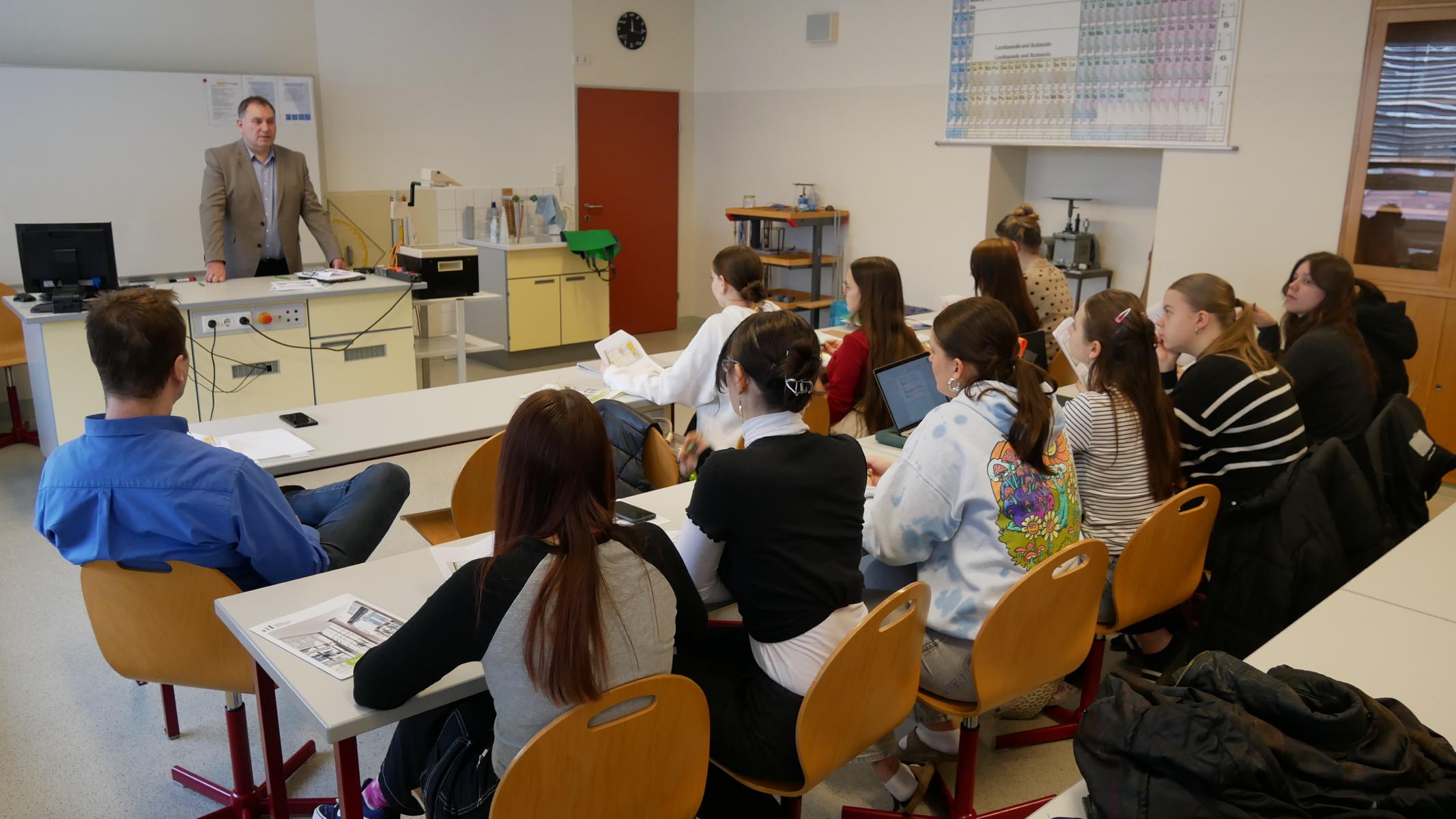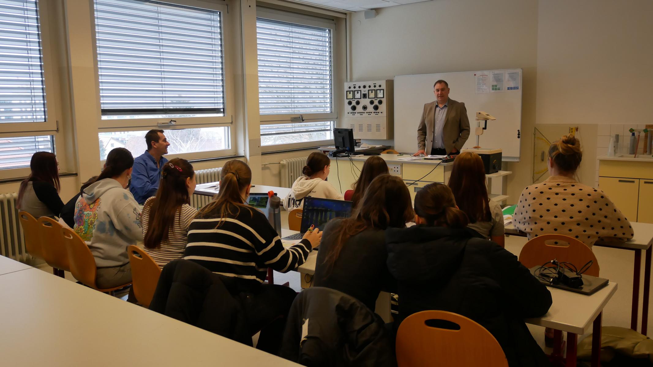 Am 1.3.2024 konnte sich im BG Horn die Klasse 7 A in Physik von Herrn Werner Schäfer, Prokurist der Firma “ees energy environment solutions GmbH”, beraten lassen. Interessiert folgten die Schülerinnen dem Vortrag über Energieverbrauch und Einsparungsmöglichkeiten einer Schule bzw. eines privaten Hauses. Bezogen auf unser Projekt wurden außerdem spezielle Möglichkeiten zur Speicherung des von einer PV-Anlage erzeugten Stromes erörtert. Besonders hervorzuheben ist, dass uns die Firma ees ein Balkonkraftwerk in Aussicht gestellt hat! – Vielen Dank an die Firma und an Herrn Werner Schäfer!