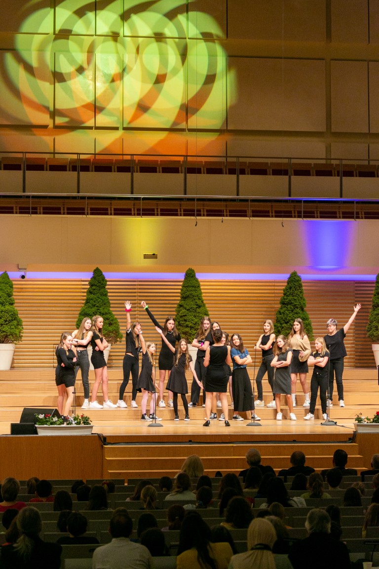 Nach einer erfolgreichen öffentlichen Generalprobe in der Schule ging es am Folgetag mit dem Bus nach Grafenegg. Die Schüler*innen waren sehr aufgeregt, meisterten ihren Auftritt auf der großen Bühne aber überaus souverän. Es war eine beeindruckende Erfahrung in diesem großen Saal zu singen und auch andere Chöre zu hören. Nach dem Auftritt fuhren wir wieder gemeinsam nach Hause und wurden sehr lange auf die Folter gespannt – wir mussten drei Wochen auf das Ergebnis warten. Mitte Mai war er dann endlich da, der Brief, der uns das Ergebnis übermittelte: Die „DeciBelles“ erreichten einen „Sehr guten Erfolg“ und der „Chornetto“ konnte mit einem „Ausgezeichneten Erfolg“ abschneiden! Wir freuen uns sehr über diese Ergebnisse und dass sich die monatelange Probenarbeit ausgezahlt hat, welche uns alle sehr zusammen geschweißt hat!