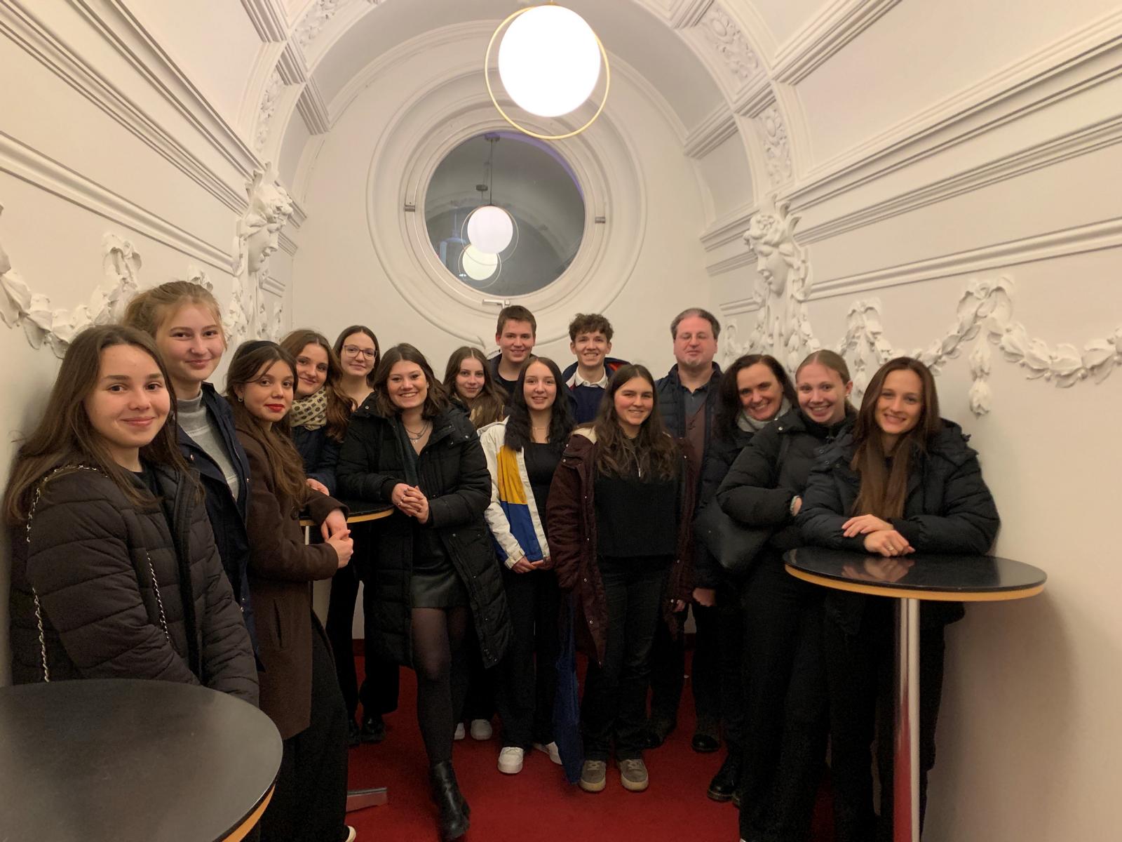Am 25. Jänner 2024 ging es für die Musikgruppe der beiden siebten Klassen gemeinsam mit Frau Professor Rösslhuber und Herrn Professor Waldherr nach Wien. Dort durften wir uns in der Volksoper die Operette „Lass uns die Welt vergessen – Volksoper 1938“ anschauen.