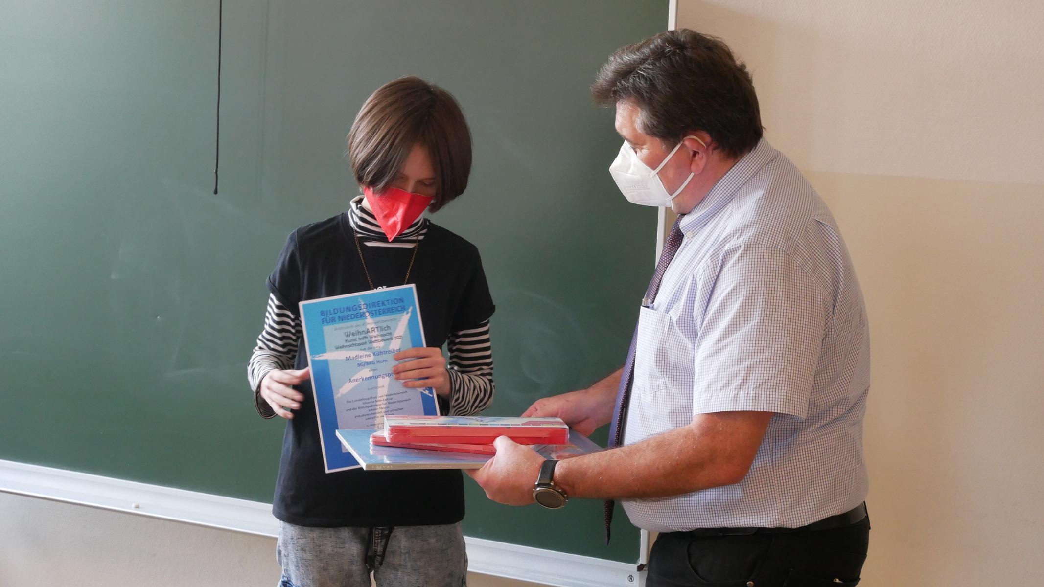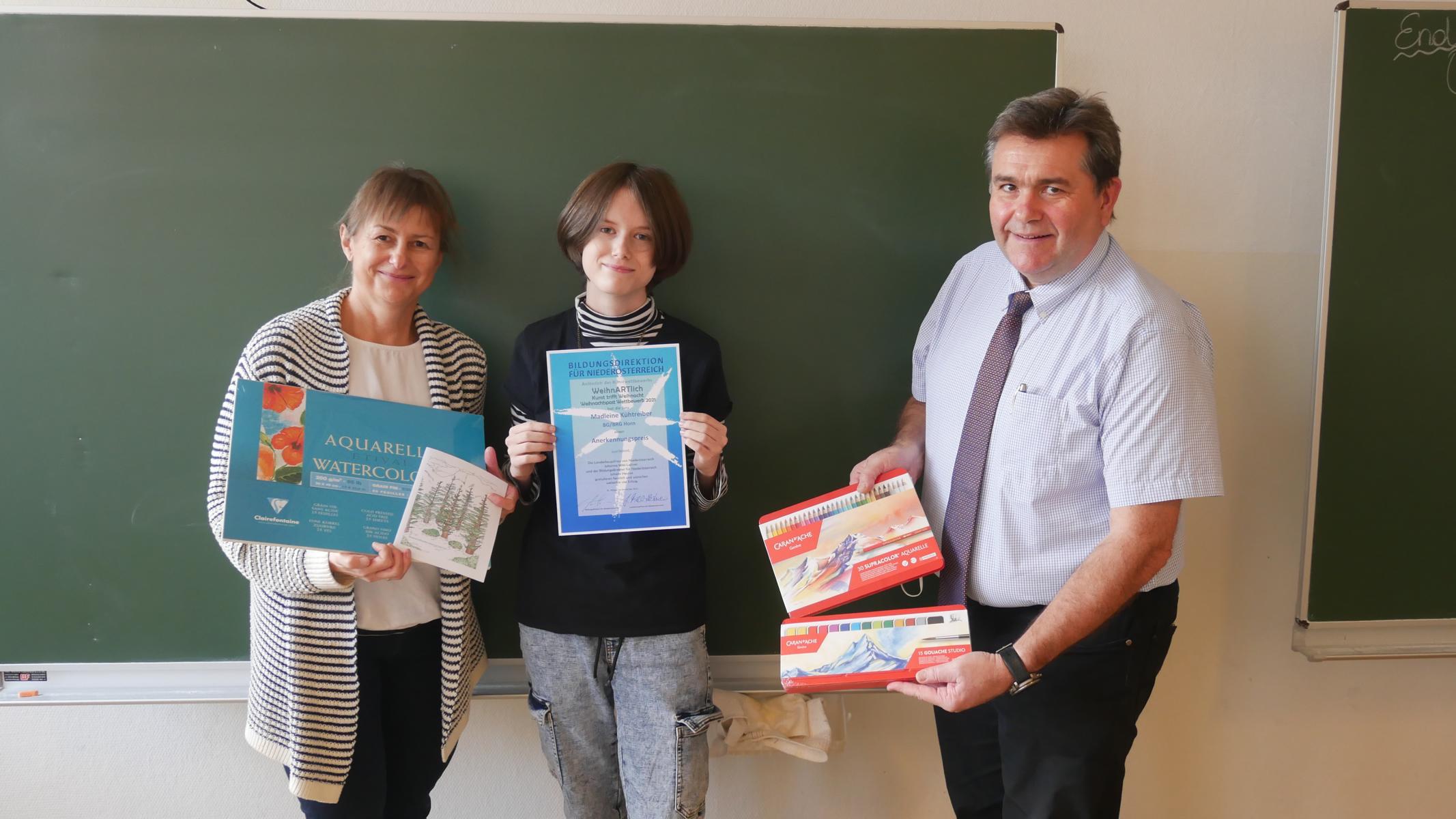 Auch heuer nahmen einige Klassen des Gymnasiums Horn am Weihnachtskartenwettbewerb der Landeshauptfrau Johanna Mikl-Leitner teil. Dabei wurden viele kreative Ideen in Bildnerischer Erziehung umgesetzt und das mit Erfolg. Madleine Kühtreiber aus der 4d bekam einen Anerkennungspreis für ihre besonders gelungene Zeichnung. Die Preisverleihung konnte situationsbedingt leider nur online stattfinden, welche trotzdem feierlich gestaltet wurde. Wir sind sehr stolz auf Madleine und wünschen ihr viel Freude mit ihrem Geschenk, nämlich wertvolle Malutensilien.