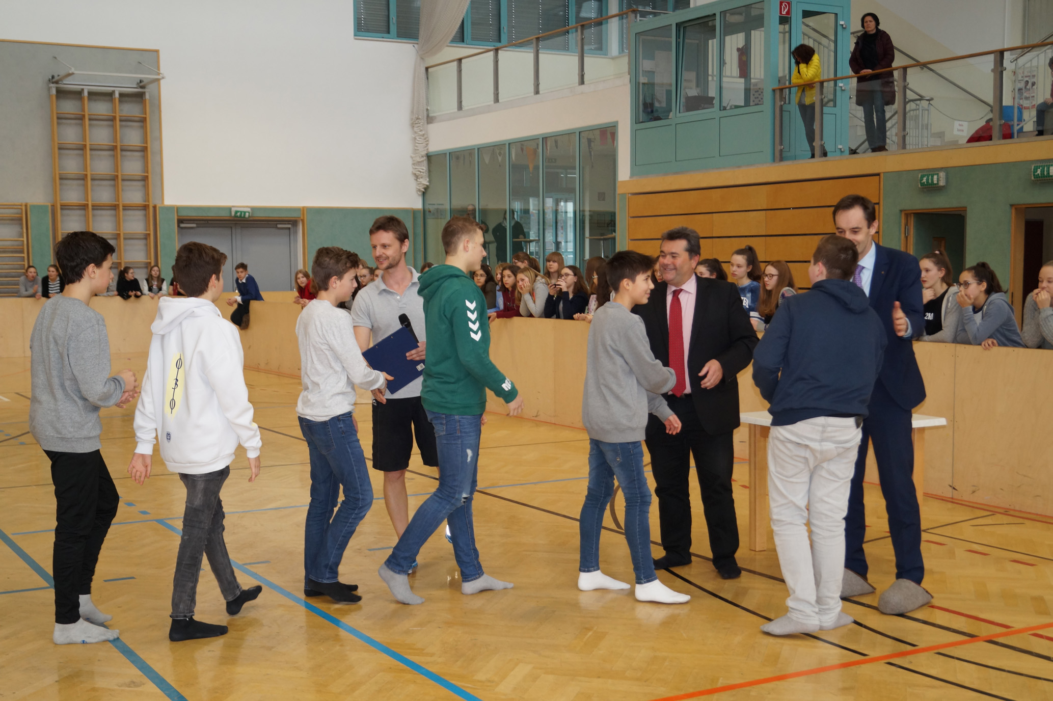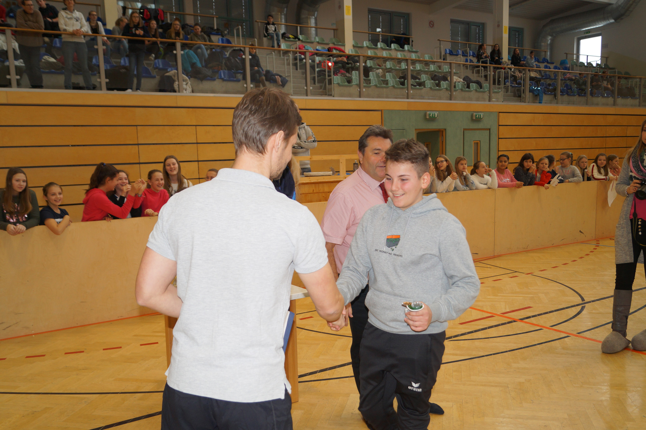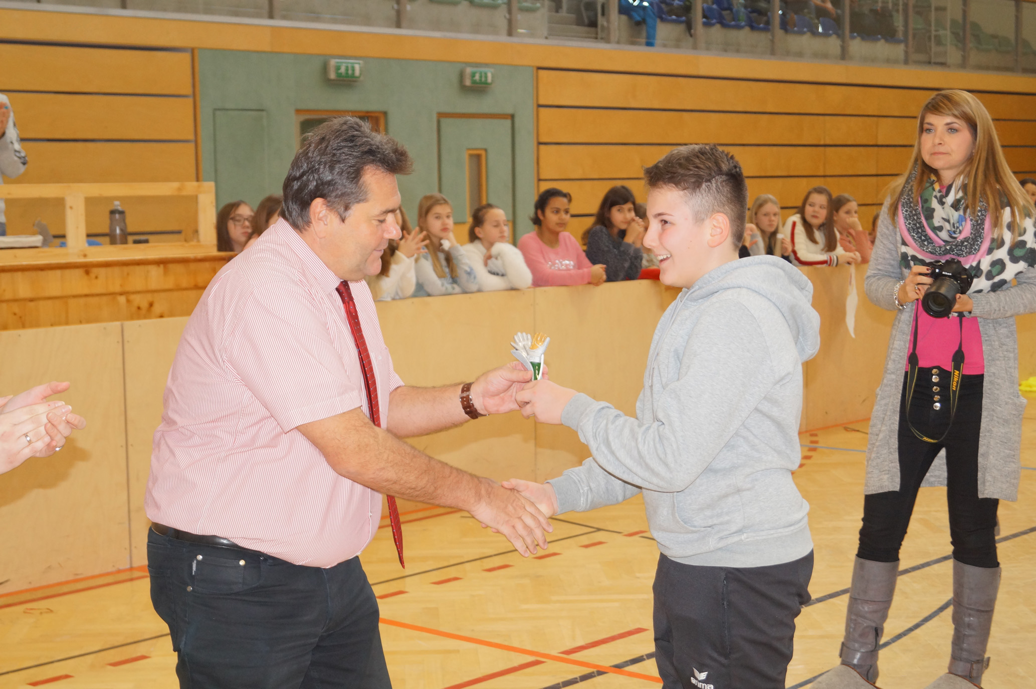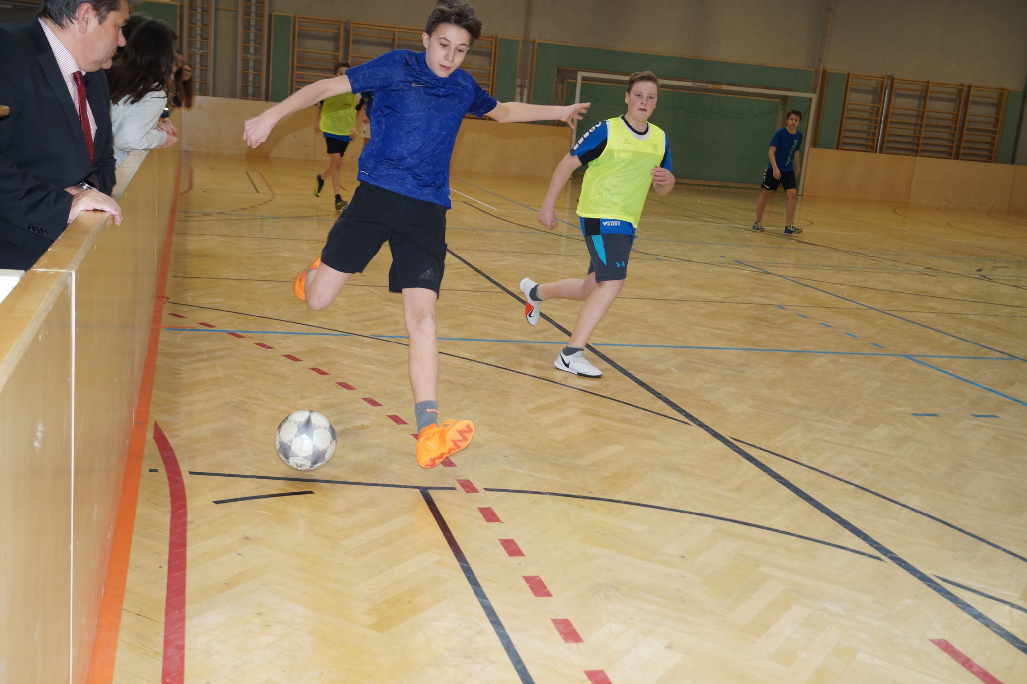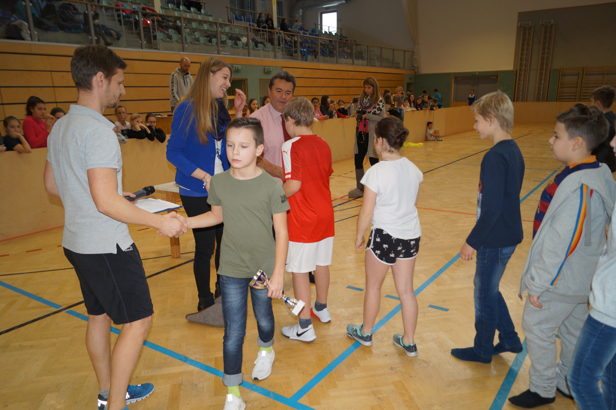 Jede Unterstufenklasse war von Organisator Mag. Herbert Schöchtner eingeladen eine Mannschaft für das Turnier aufzustellen, und das haben auch alle Klassen mit großem Eifer getan. So spielten 148 Schülerinnen und Schüler des BG Horn um den Sieg. Die Moderation übernahm Mag. Mathias Gabler und Mag. Christoph Führer war Schiedsrichter. Nach dem Prinzip „jeder gegen jeden“ spielte jede Klasse einmal gegen jede andere Mannschaft derselben Schulstufe. Für jede Schulstufe wurden vier Pokale vergeben, die von der Sparkasse gesponsert wurden, also gab es auch für alle Platzierungen einen Pokal. Bei den ersten Klassen durfte die 1a jenen für den 1. Platz mit in die Klasse nehmen, bei den zweiten Klassen die 2b. Bester Spieler wurde Thierry Tazemeta (2b) und Kimmi Schönweiß (2d) wurde zum besten Tormann gekürt. Weiters durften sich die 3a und die 4bc als erstplatzierte Sieger feiern. Thomas Popp (3a) nahm sich mit 10 Treffern den Pokal für den Torschützenkönig mit nachhause.