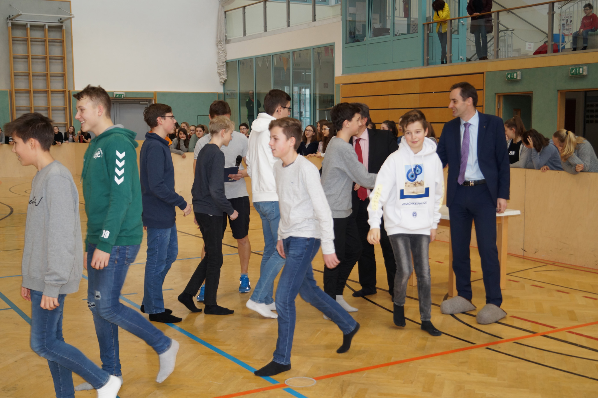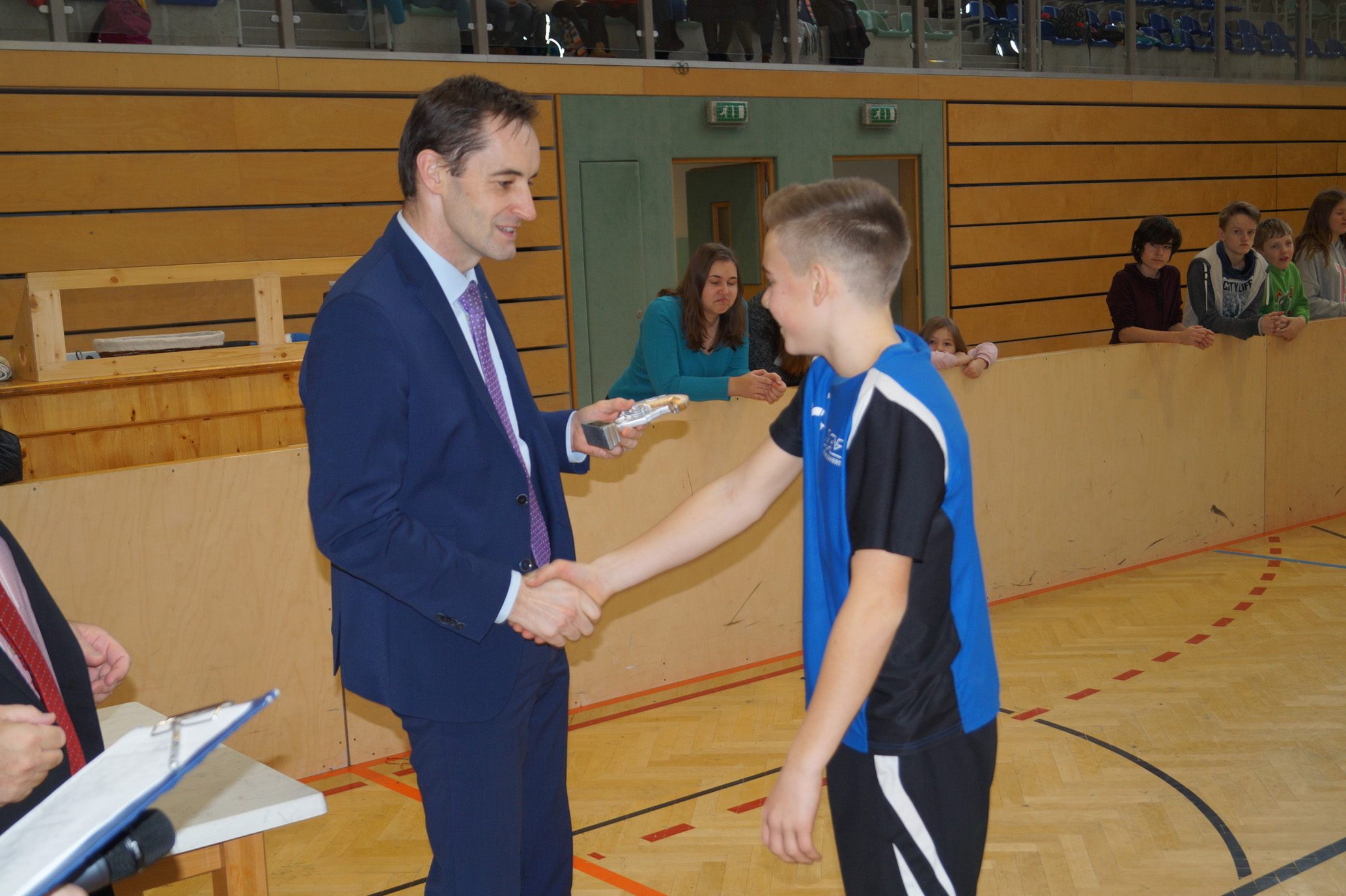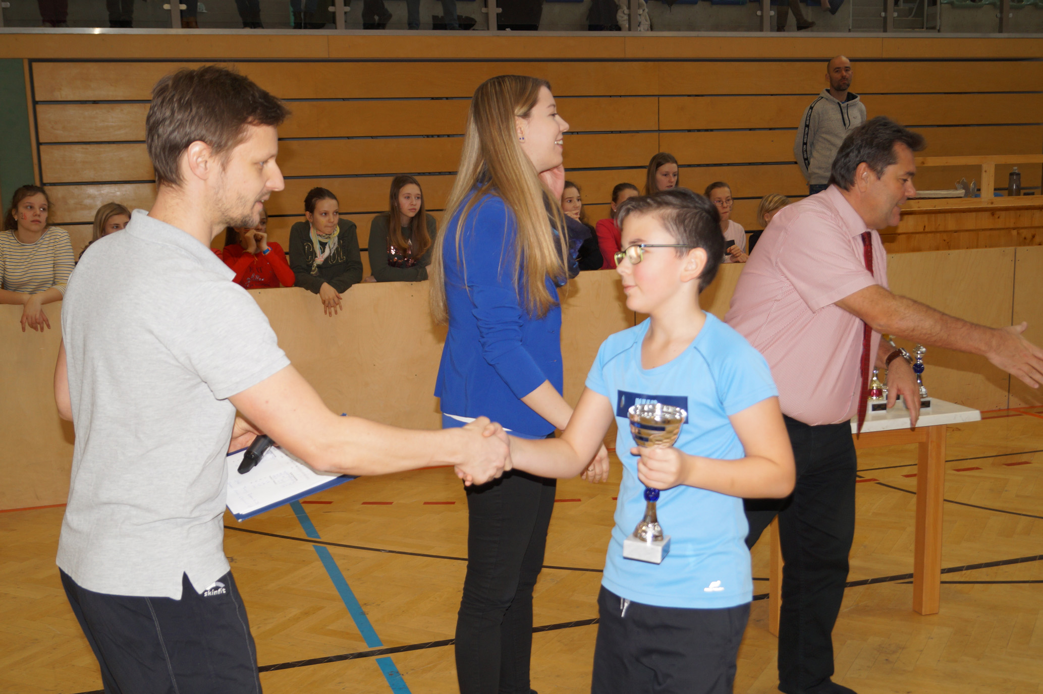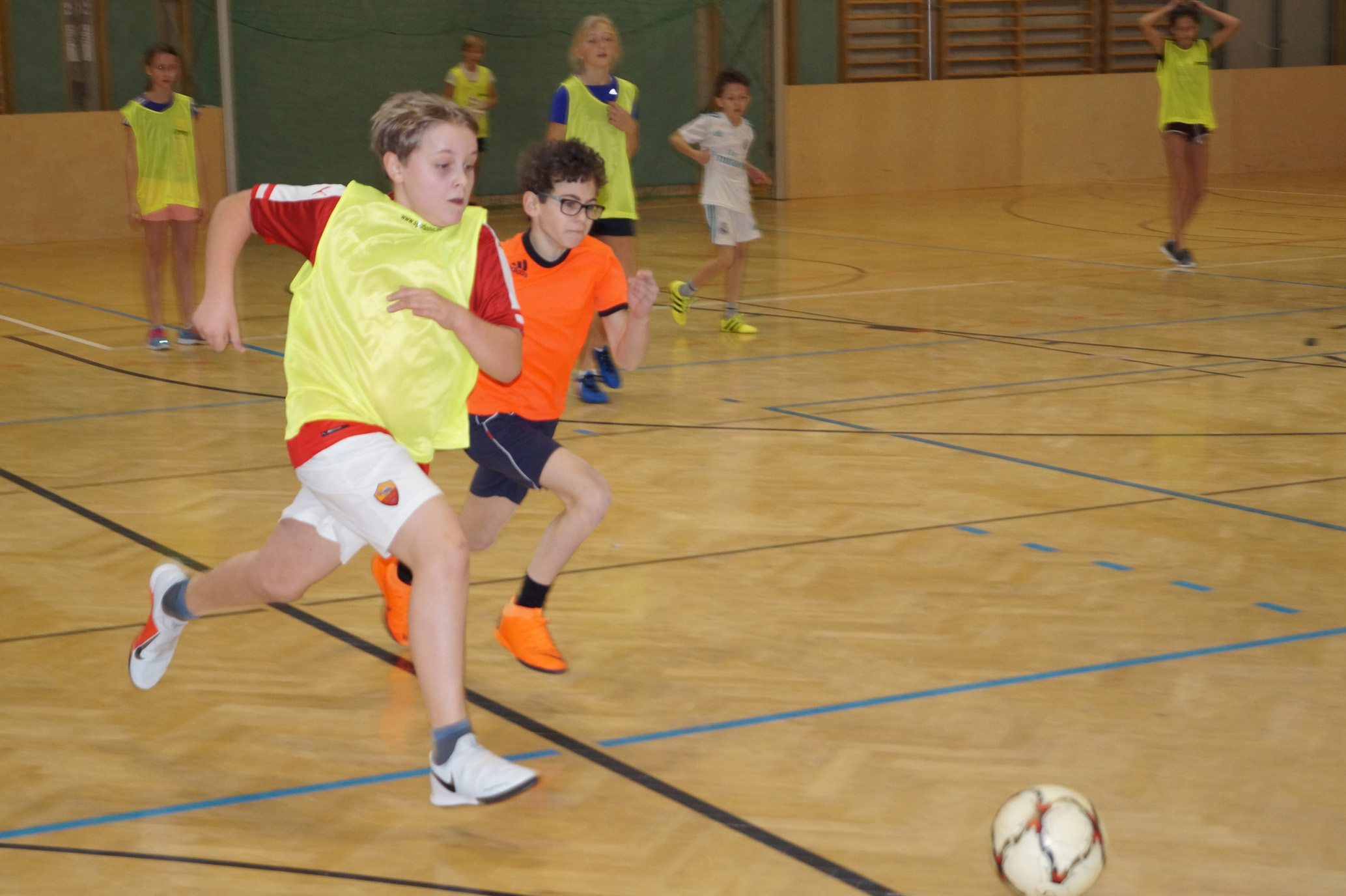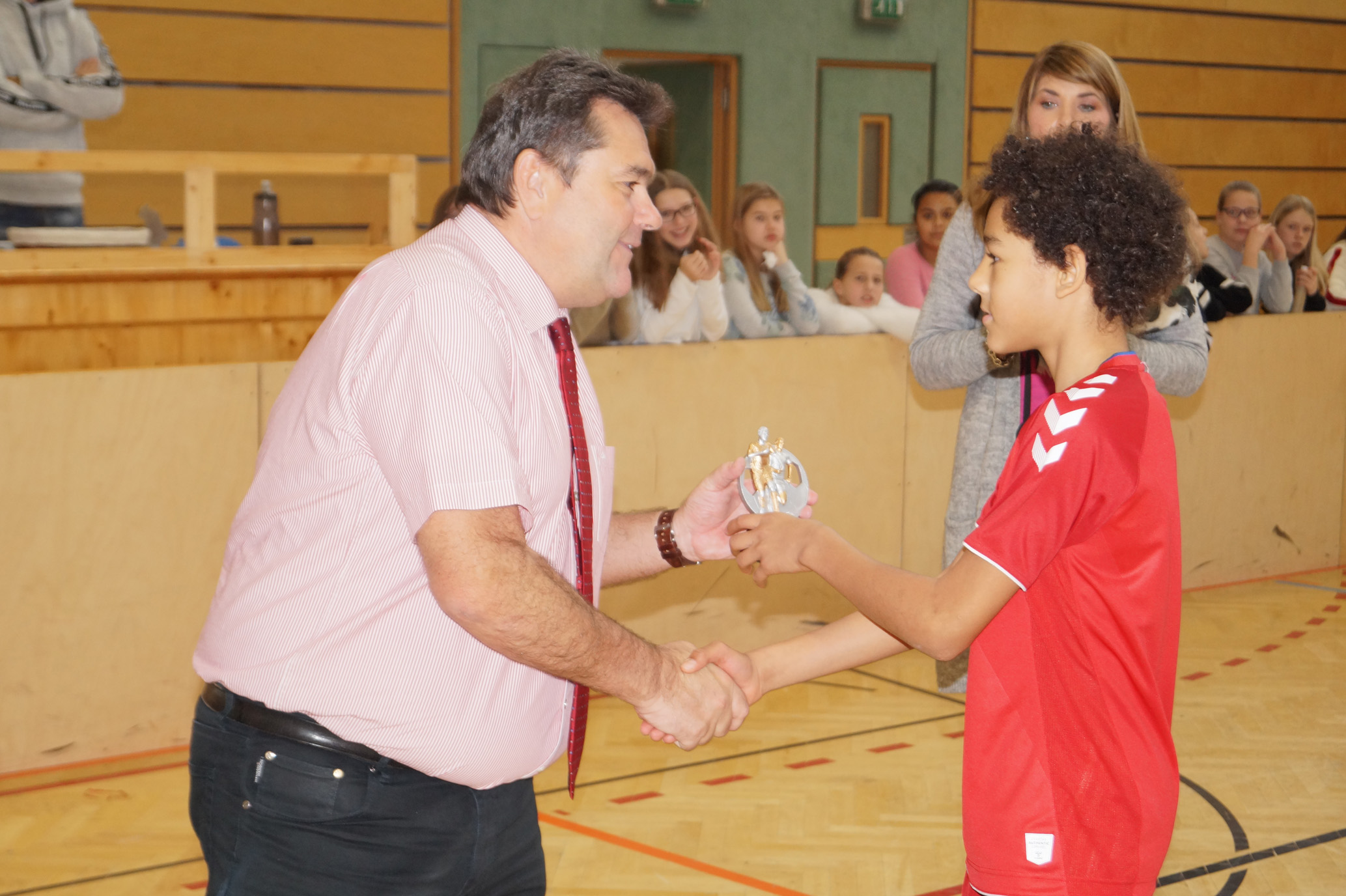 Jede Unterstufenklasse war von Organisator Mag. Herbert Schöchtner eingeladen eine Mannschaft für das Turnier aufzustellen, und das haben auch alle Klassen mit großem Eifer getan. So spielten 148 Schülerinnen und Schüler des BG Horn um den Sieg. Die Moderation übernahm Mag. Mathias Gabler und Mag. Christoph Führer war Schiedsrichter. Nach dem Prinzip „jeder gegen jeden“ spielte jede Klasse einmal gegen jede andere Mannschaft derselben Schulstufe. Für jede Schulstufe wurden vier Pokale vergeben, die von der Sparkasse gesponsert wurden, also gab es auch für alle Platzierungen einen Pokal. Bei den ersten Klassen durfte die 1a jenen für den 1. Platz mit in die Klasse nehmen, bei den zweiten Klassen die 2b. Bester Spieler wurde Thierry Tazemeta (2b) und Kimmi Schönweiß (2d) wurde zum besten Tormann gekürt. Weiters durften sich die 3a und die 4bc als erstplatzierte Sieger feiern. Thomas Popp (3a) nahm sich mit 10 Treffern den Pokal für den Torschützenkönig mit nachhause.