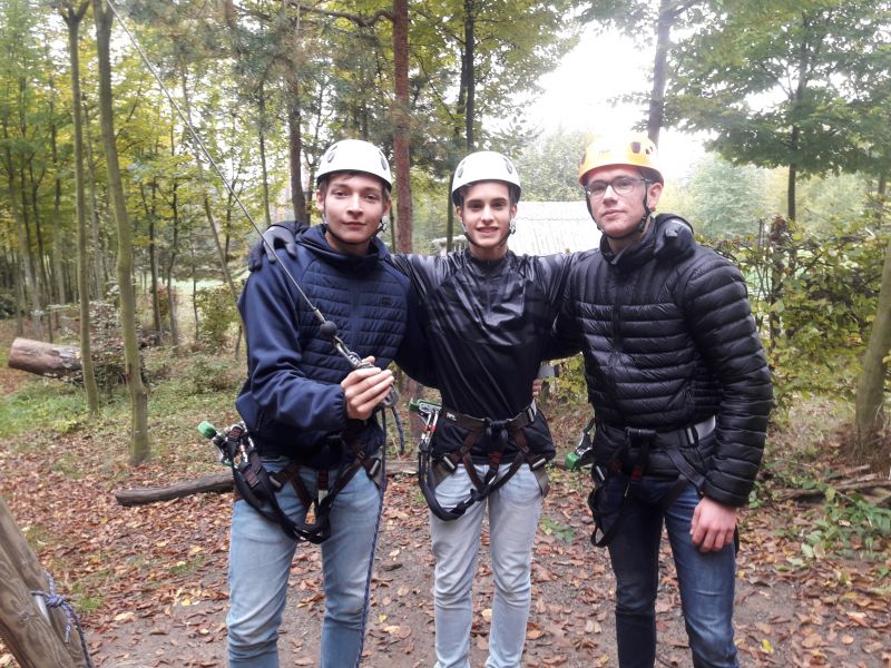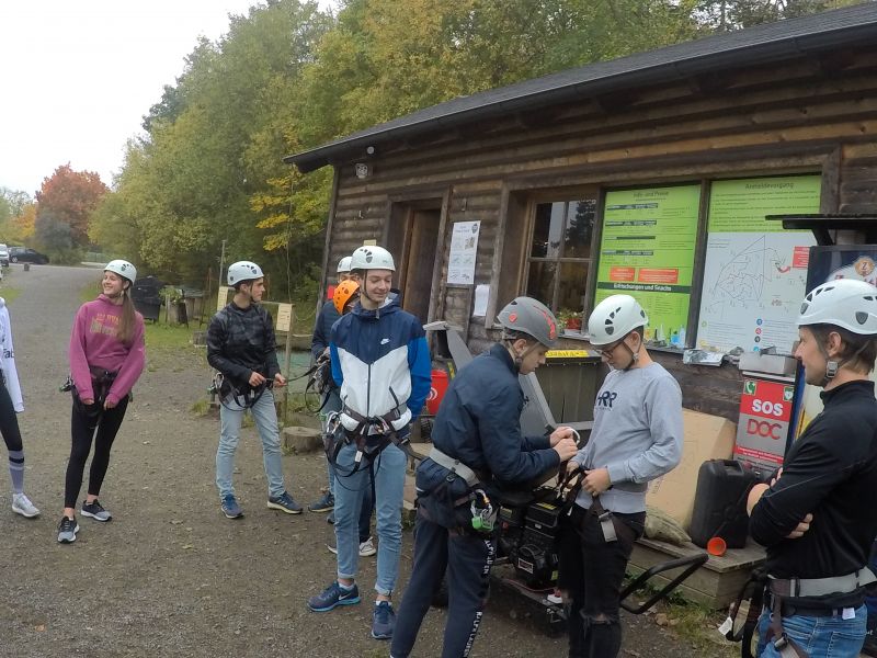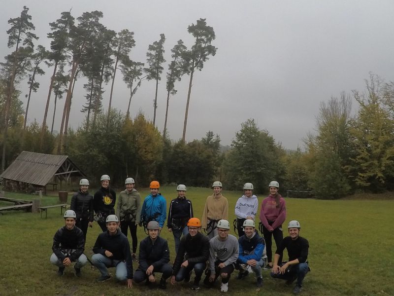 Am 22. Oktober besuchte das Wahlpflichtfach Sport den Hochseilklettergarten in Rosenburg. Gleich zu Beginn unserer Exkursion legten wir die Ausrüstung (Gurt und Helm) an. Nach der Gurtkontrolle durch die anwesenden Trainer, gingen wir zur Bodeneinschulung. Hier bekamen wir genaue Instruktionen zum richtigen Verhalten im Klettergarten. Nach der Absolvierung eines Probeparcours konnten wir nun selbstständig die einzelnen Routen erkunden. Dabei reichte die Spannweite von der einfachen Einsteigertour bis hin zur spektakulären „Himmelsleiter“, die uns direkt in die 12 m hohen Wipfel der mächtigen Fichten führte und dabei einen Blick auf das atemberaubende Panorama des Kamptals freigab. In diesen lichten Höhen war der Startpunkt einer spektakulären Flying Fox (Stahlseilrutsche) zu finden. Sie begann in den Kronen der Bäume und ging über mehrere Umlenkpunkte bis zum Waldboden. Etwas Schwindelfreiheit und Abenteuerlust vorausgesetzt, bildete sie das Highlight des Klettergartens.